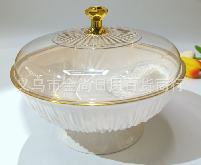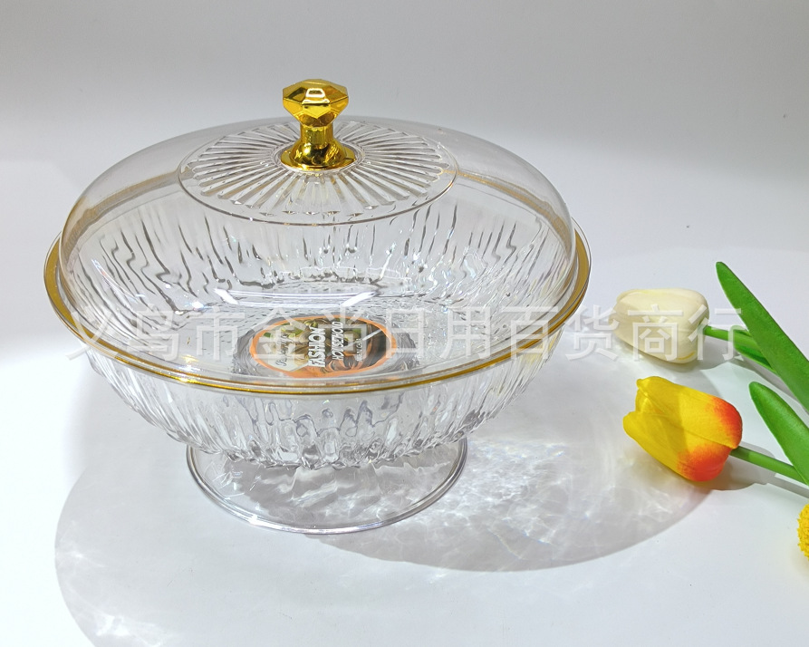 新款塑料水果盘金边带盖带脚食品级透明蛋糕盒家用零食水果收纳盘