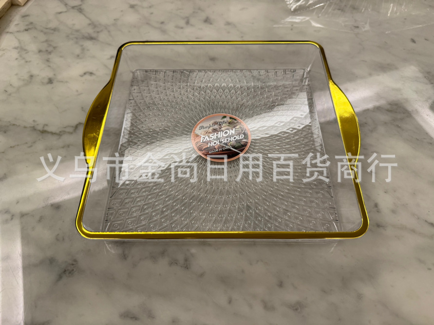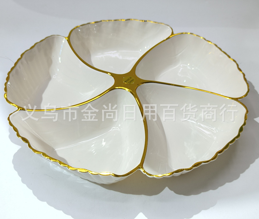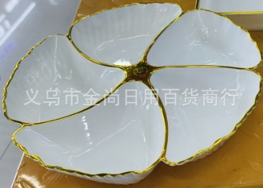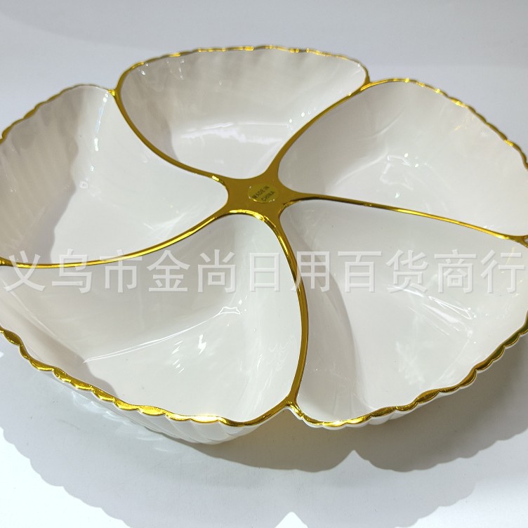 欧式金边塑料分格盘小吃盘轻奢甜品高级感盘子摆盘果盘水果盘
