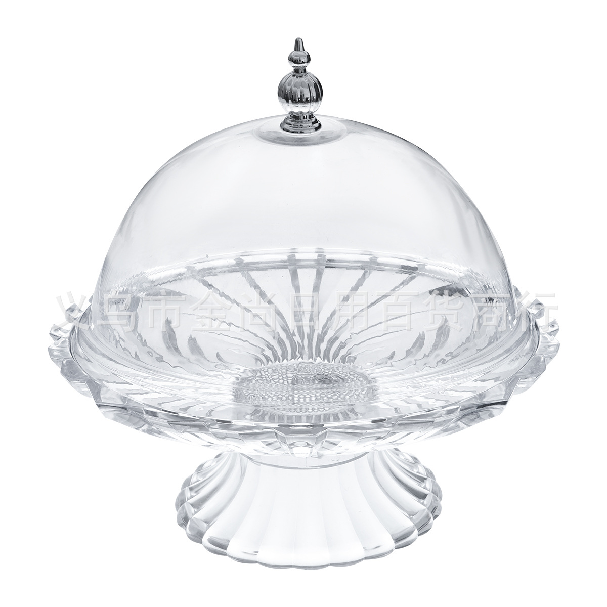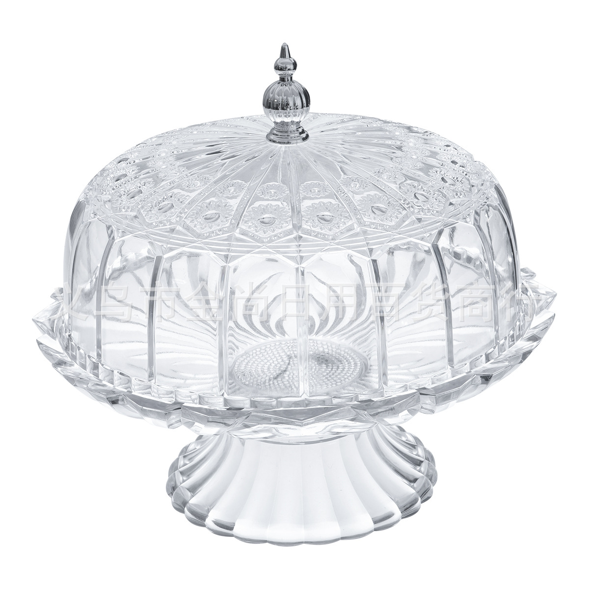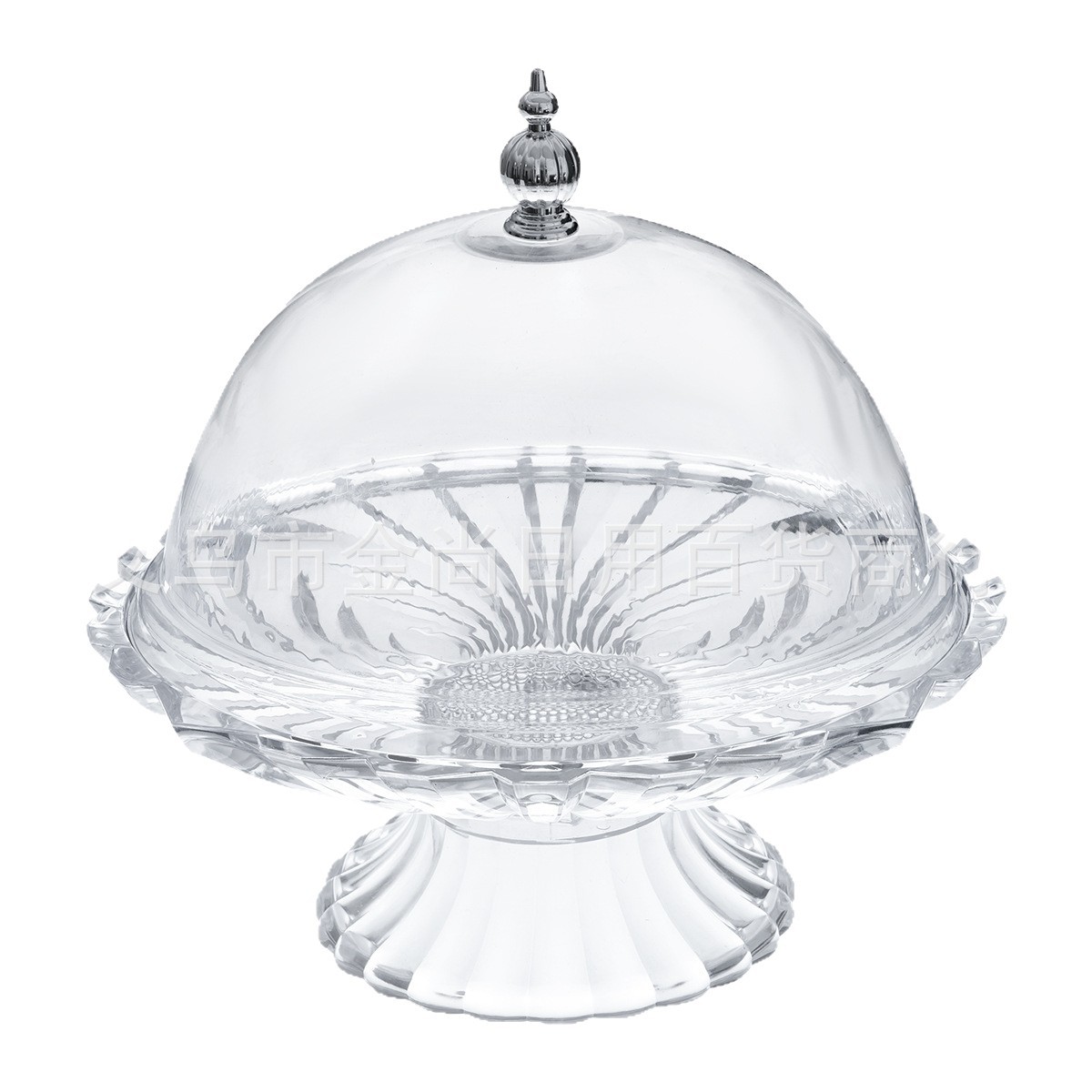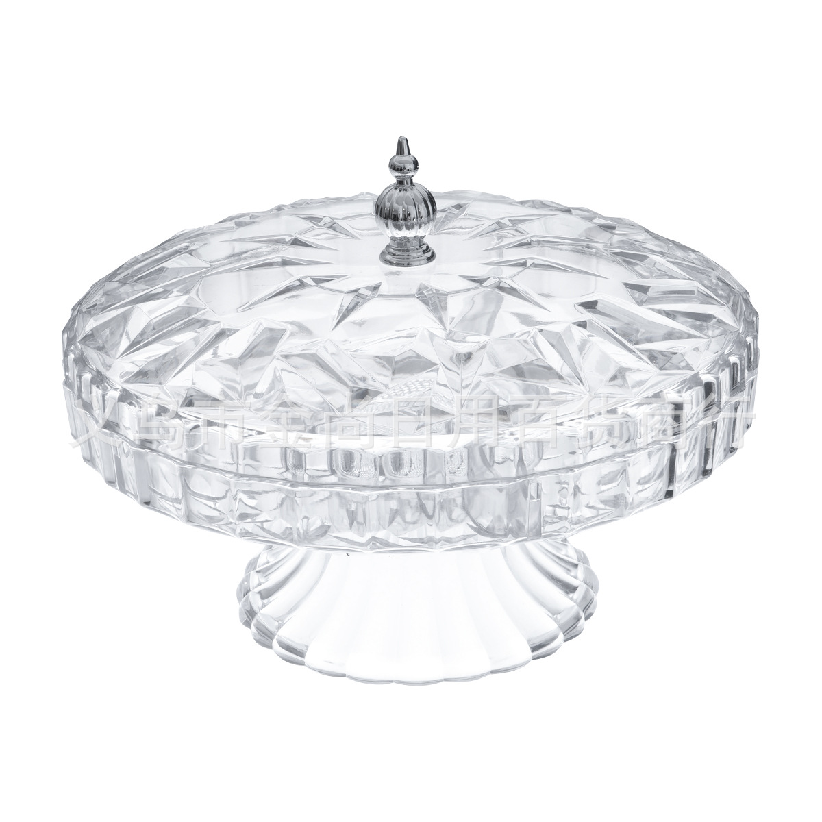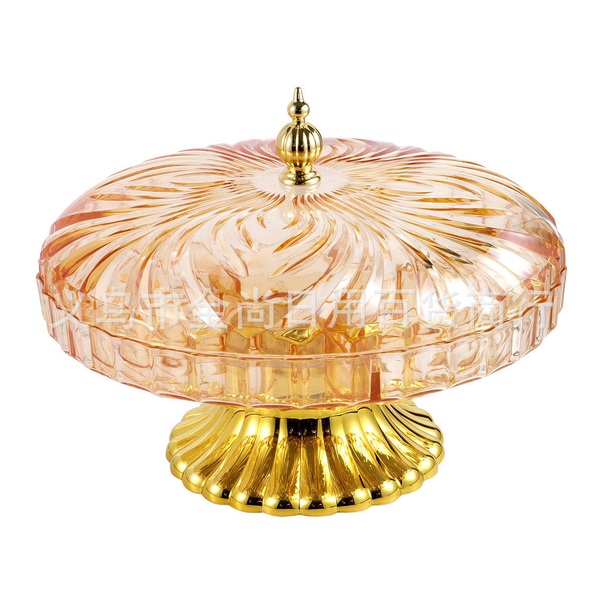 欧式家用塑料琉璃色透明色糖果盘带脚带盖零食盘创意圆形糖果盘