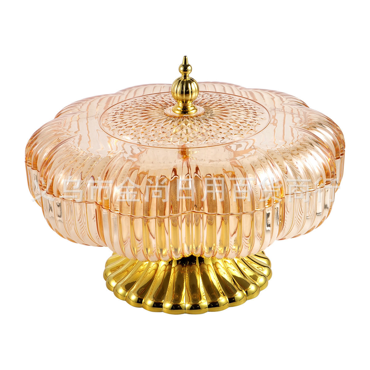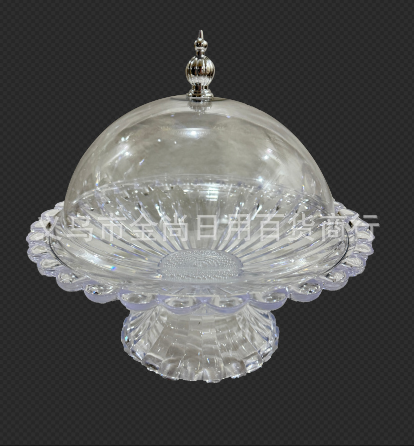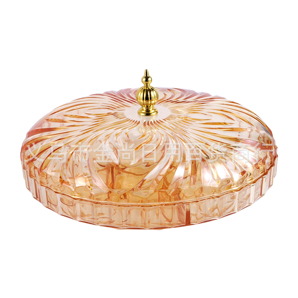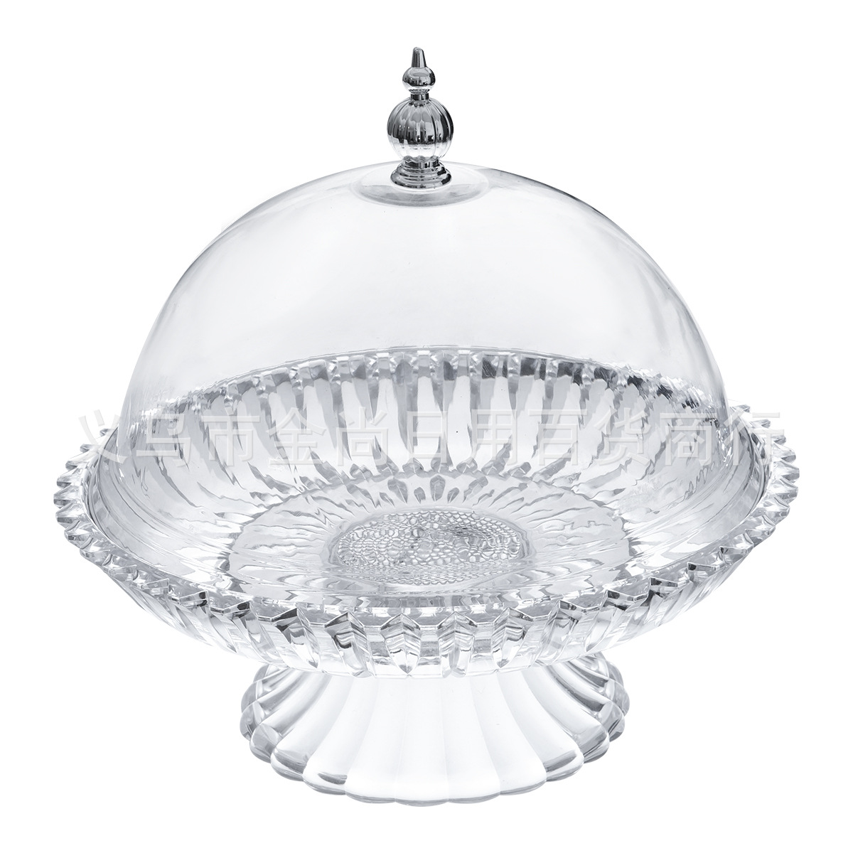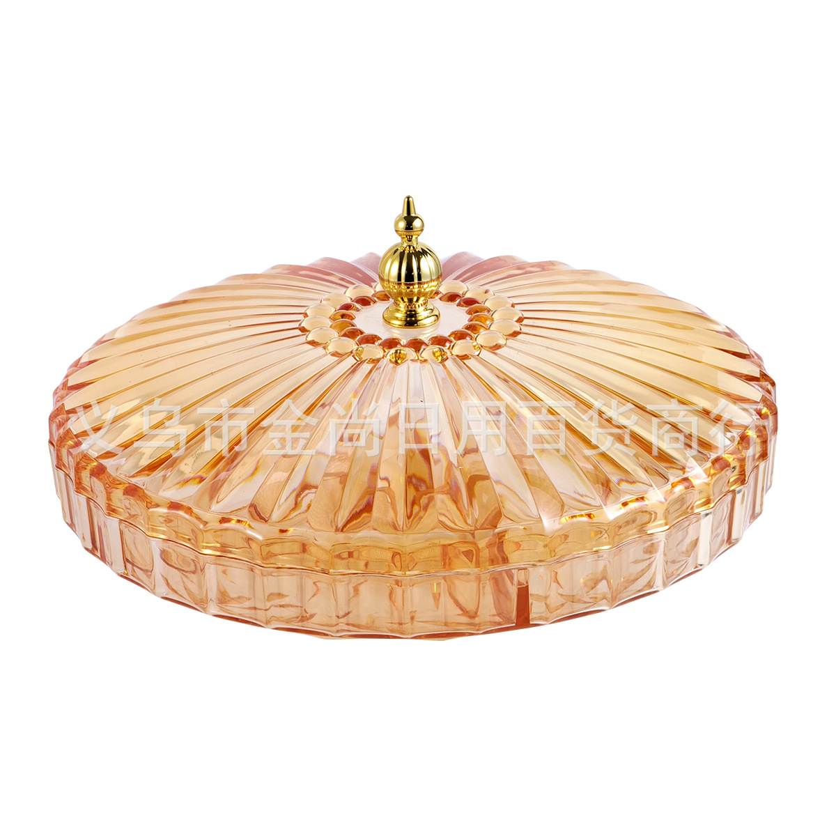 欧式家用塑料琉璃色透明色糖果盘带脚带盖零食盘创意圆形糖果盘