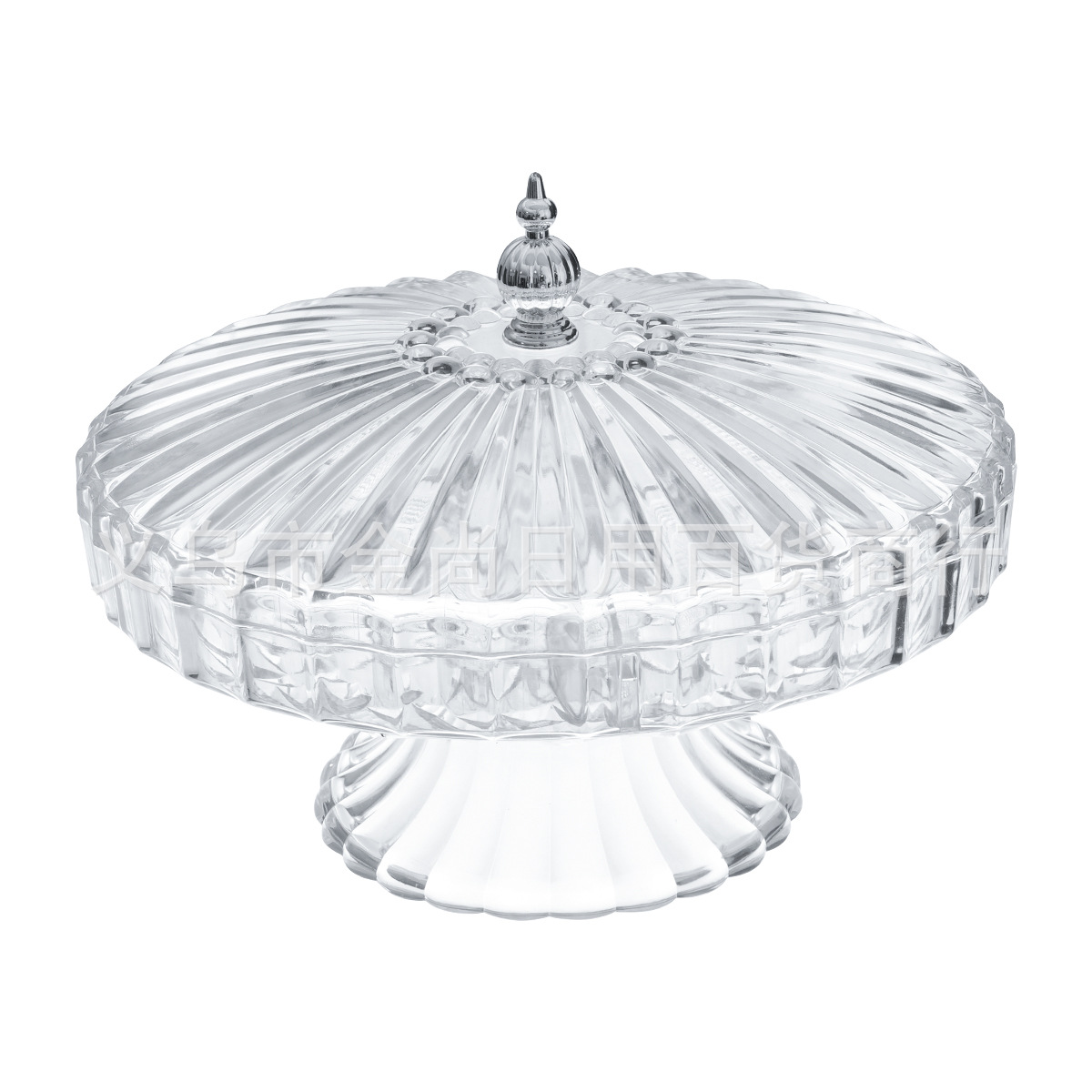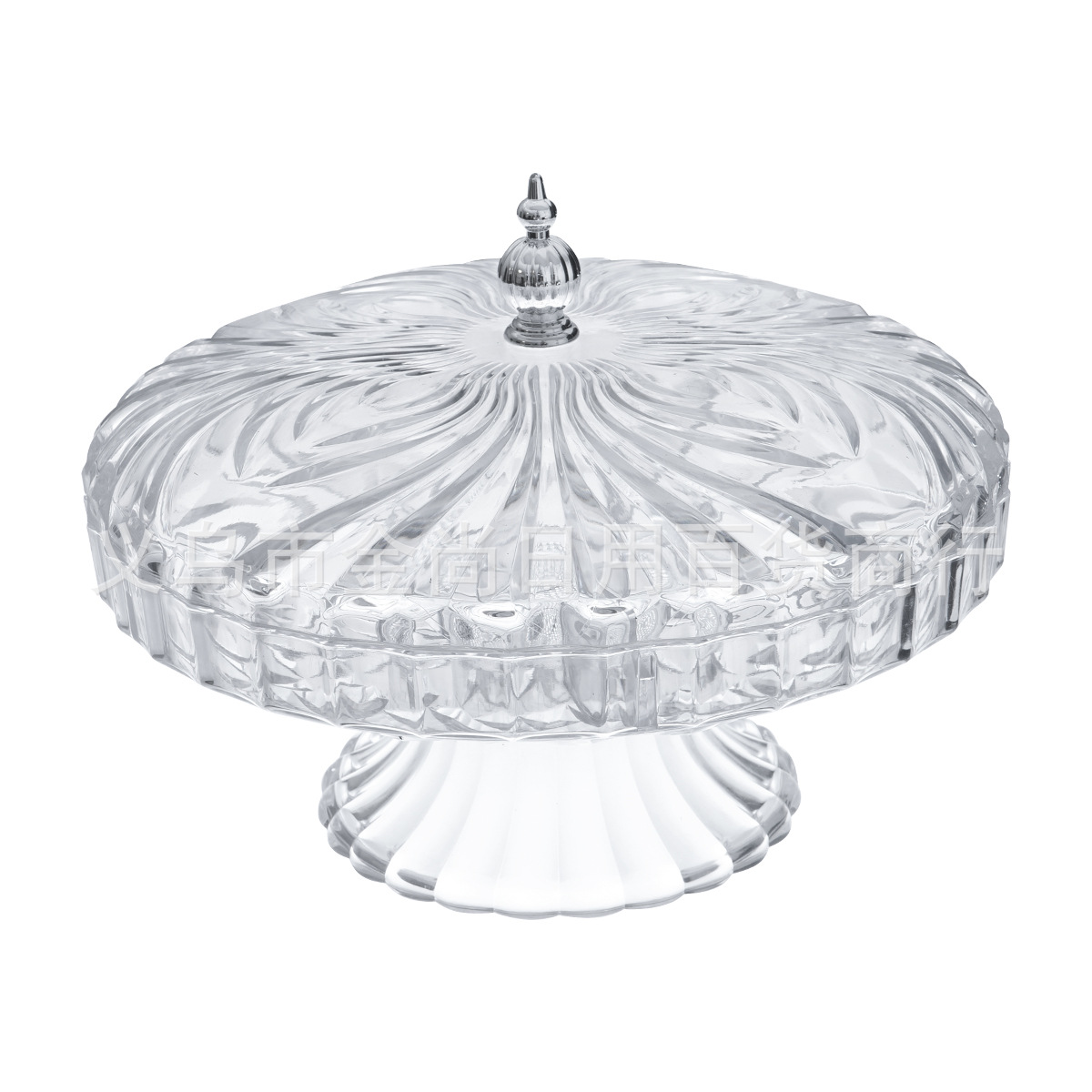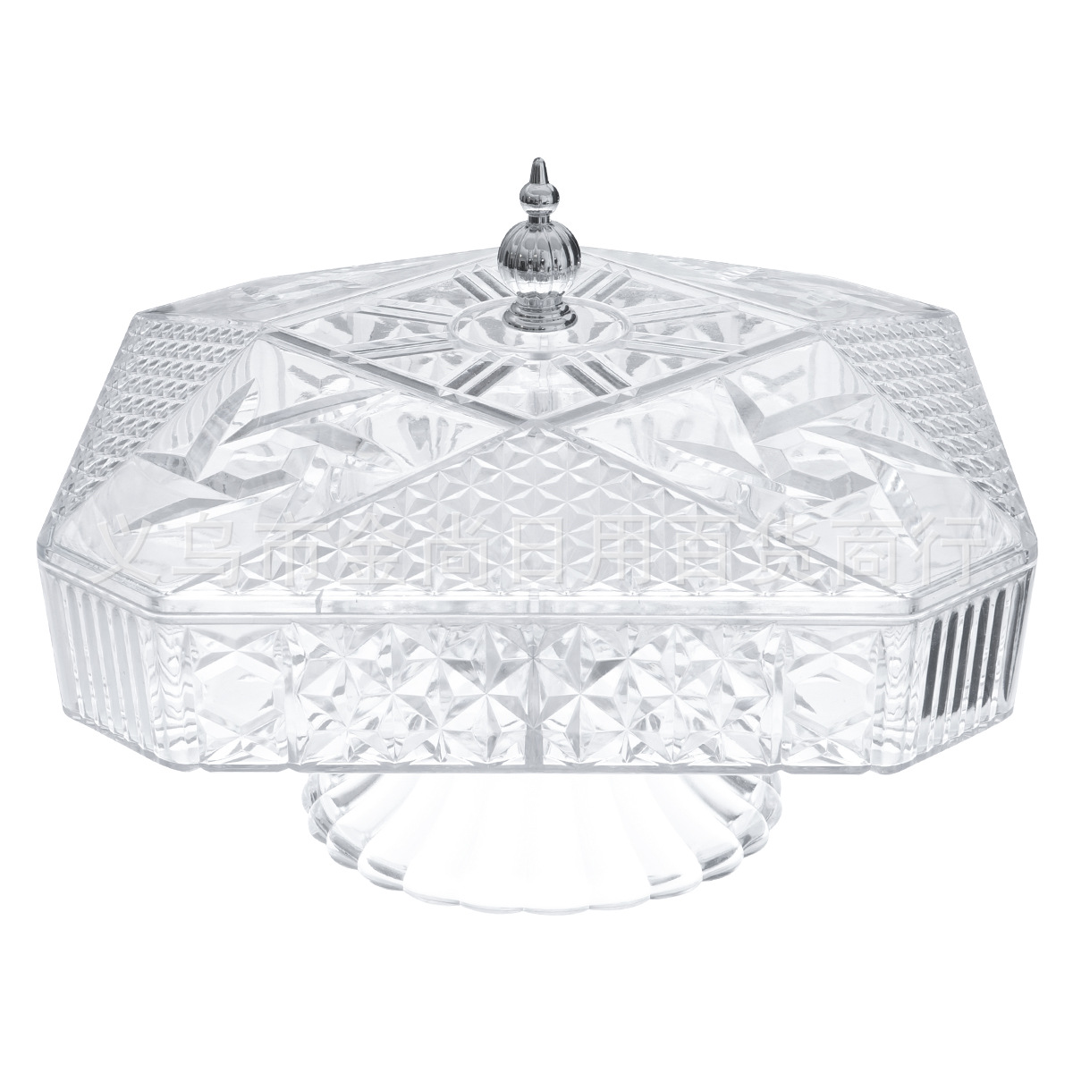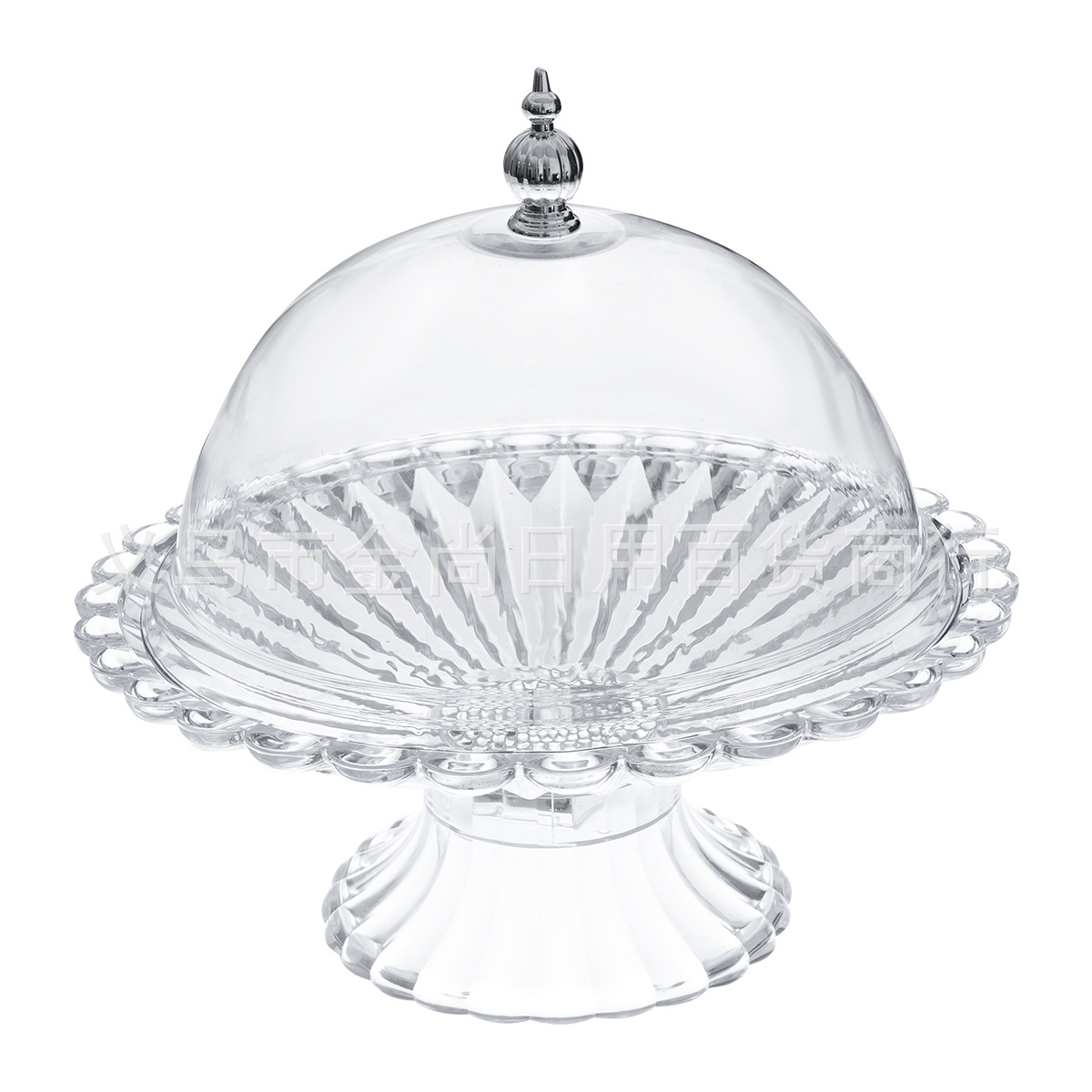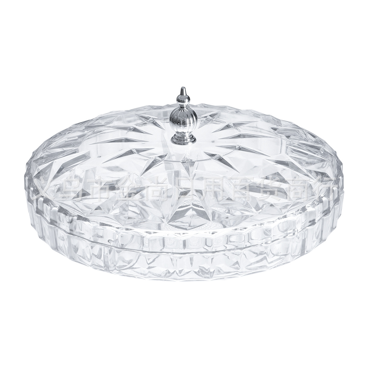欧式家用塑料琉璃色透明色糖果盘带脚带盖零食盘创意圆形糖果盘