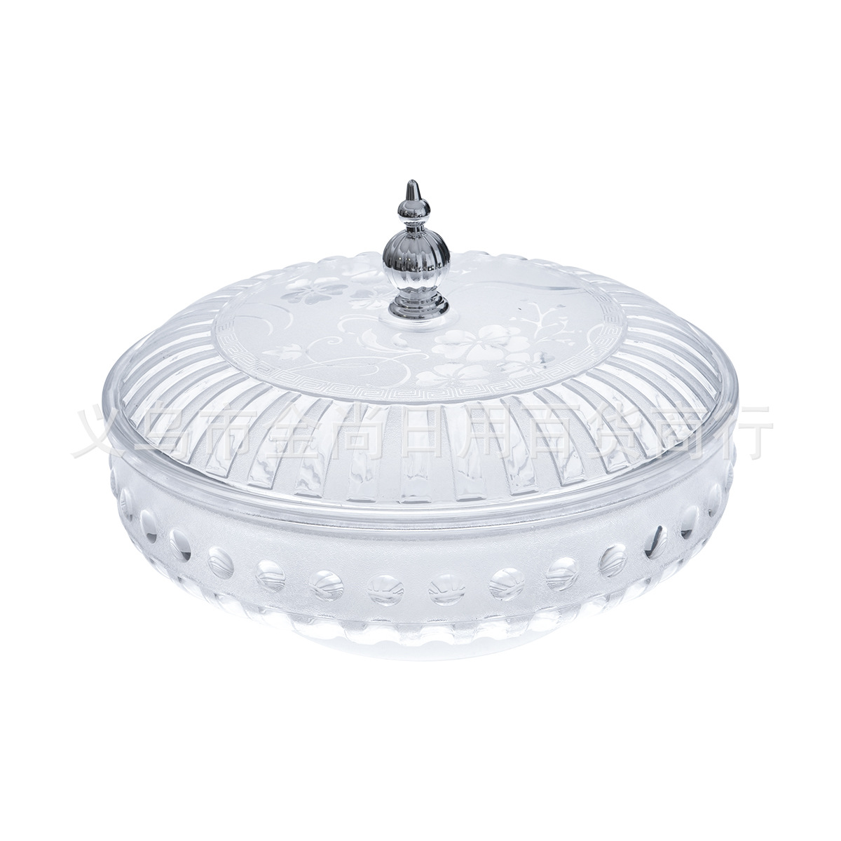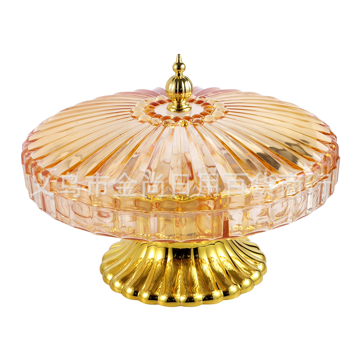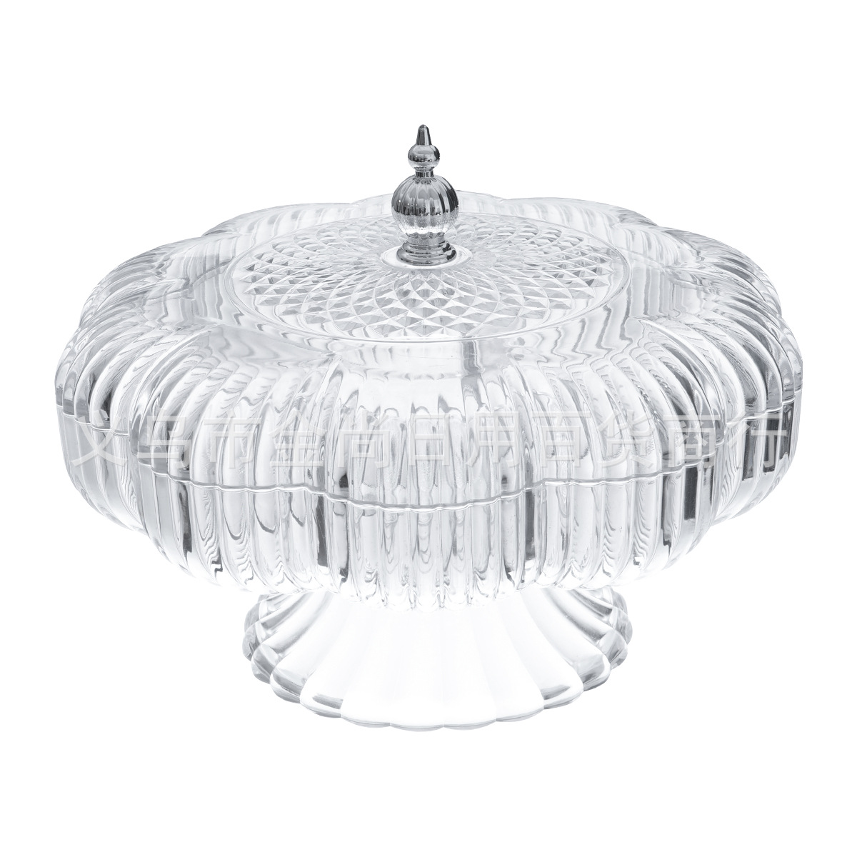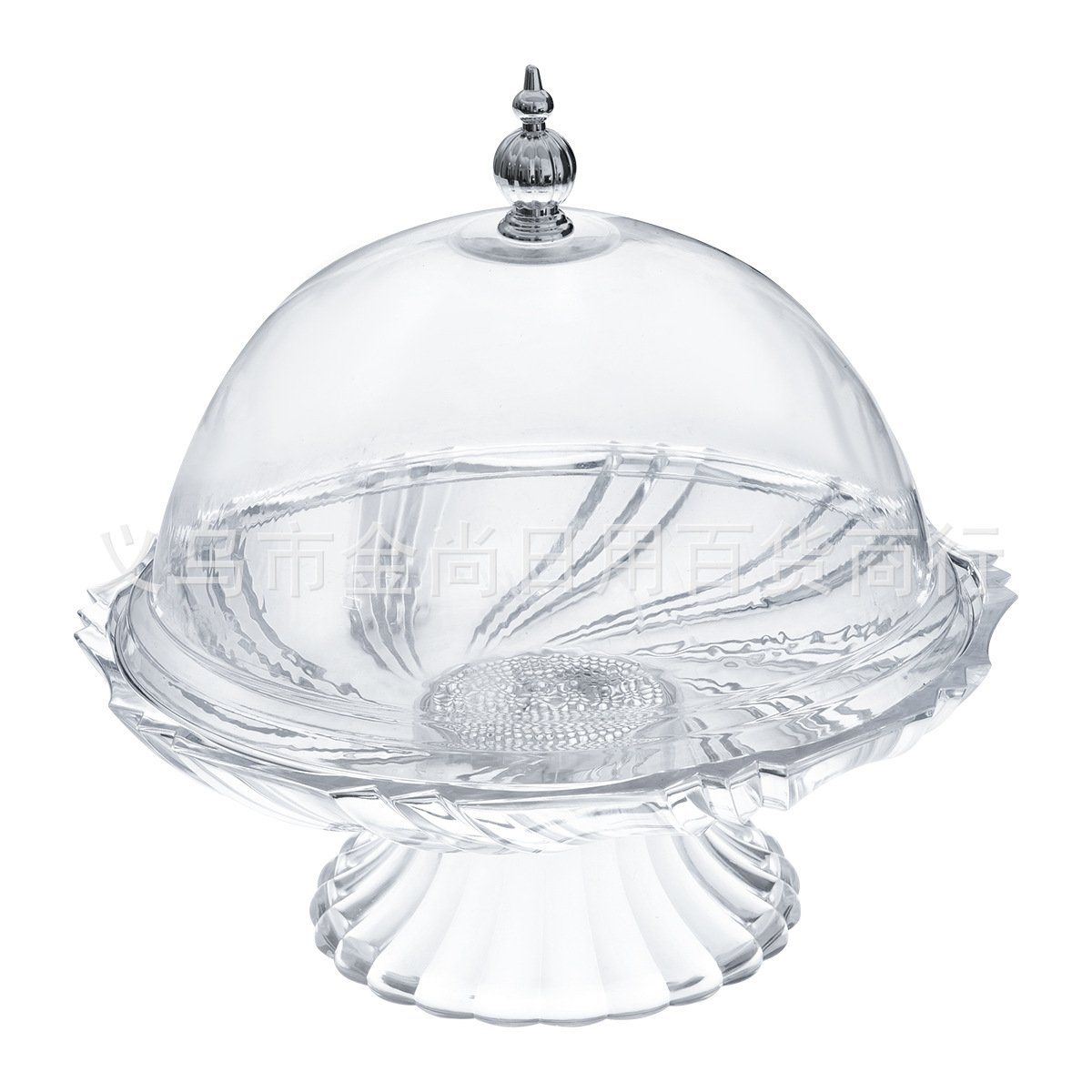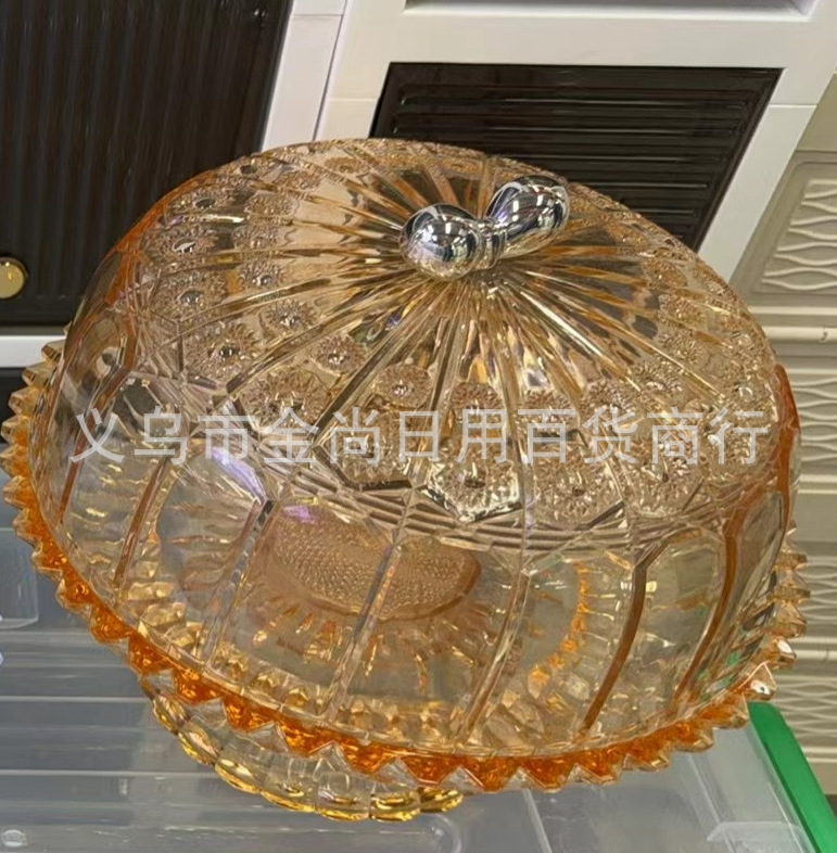欧式家用塑料琉璃色透明色糖果盘带脚带盖零食盘创意圆形糖果盘