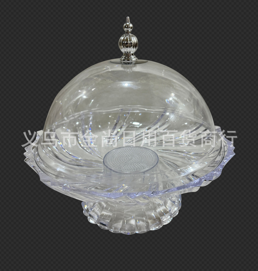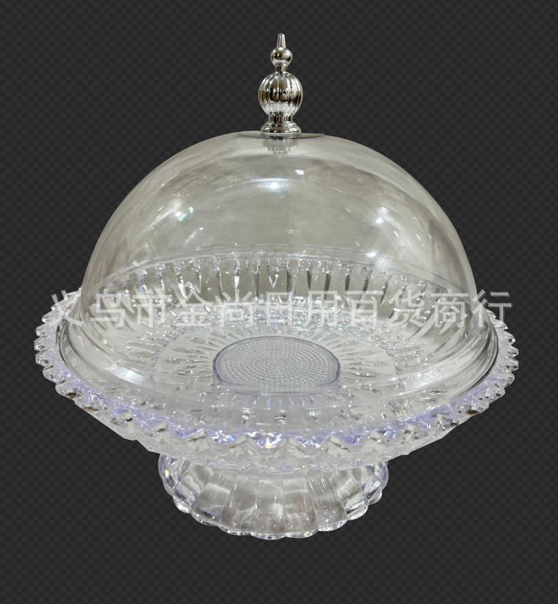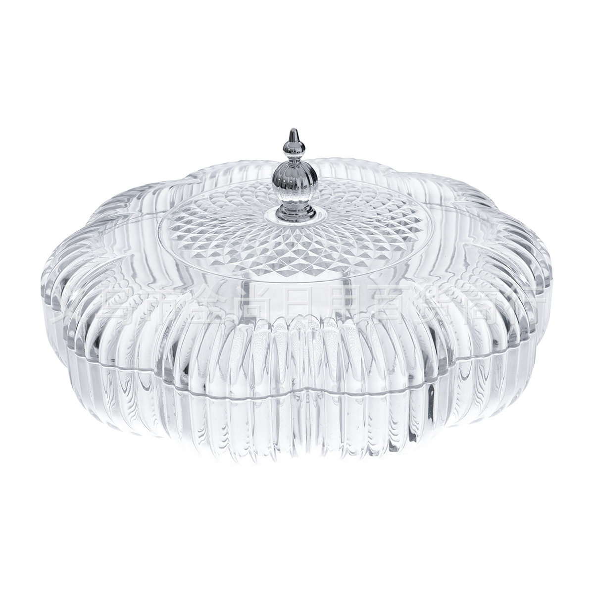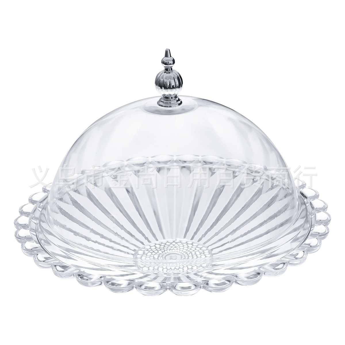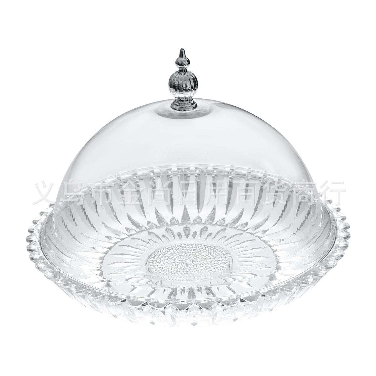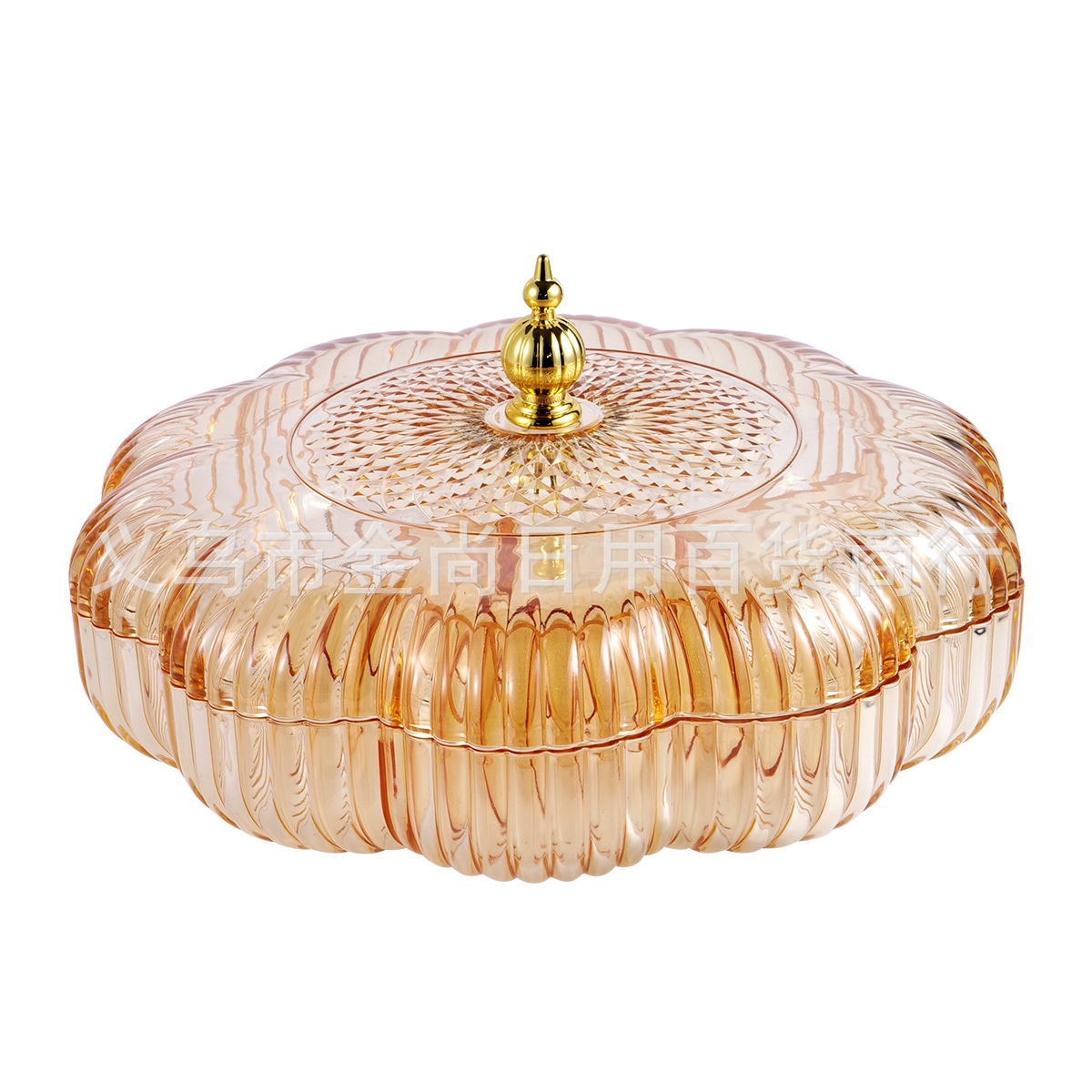 欧式家用塑料琉璃色透明色糖果盘带脚带盖零食盘创意圆形糖果盘