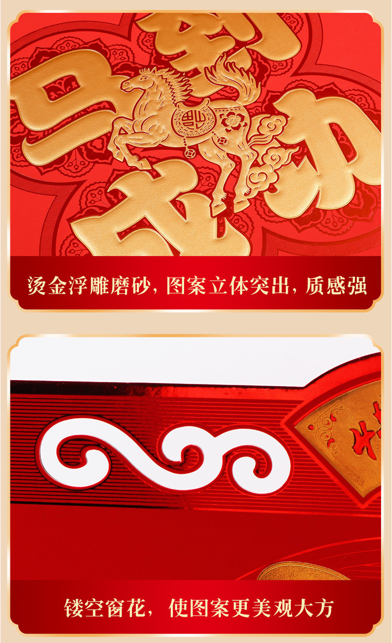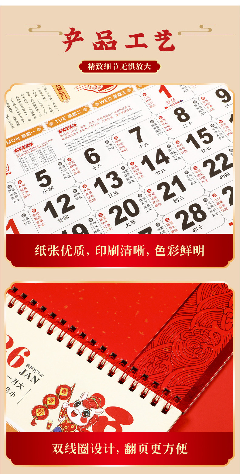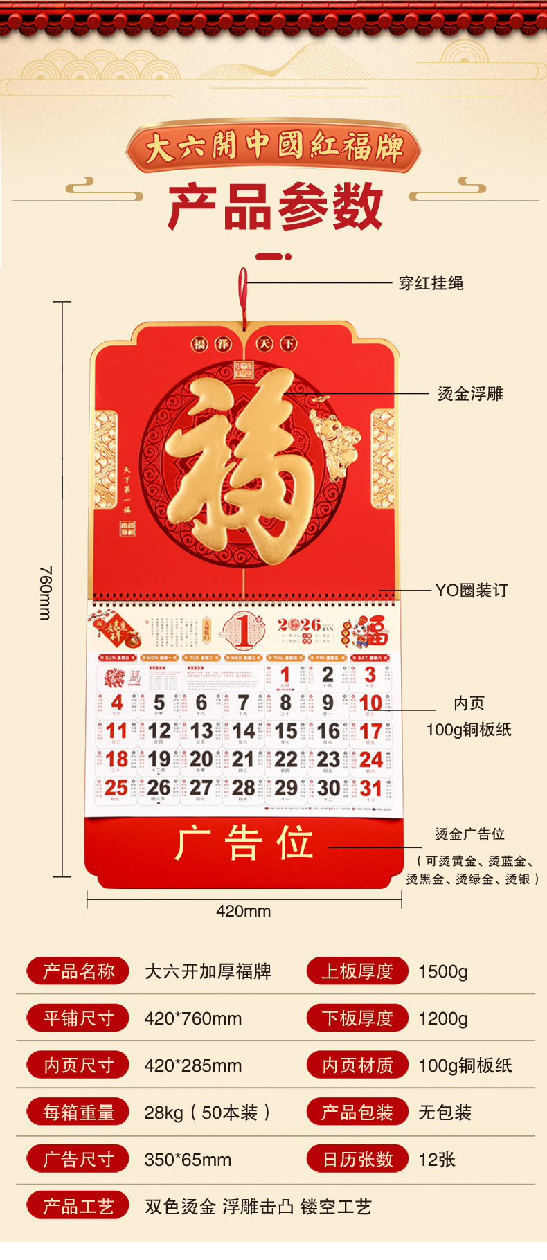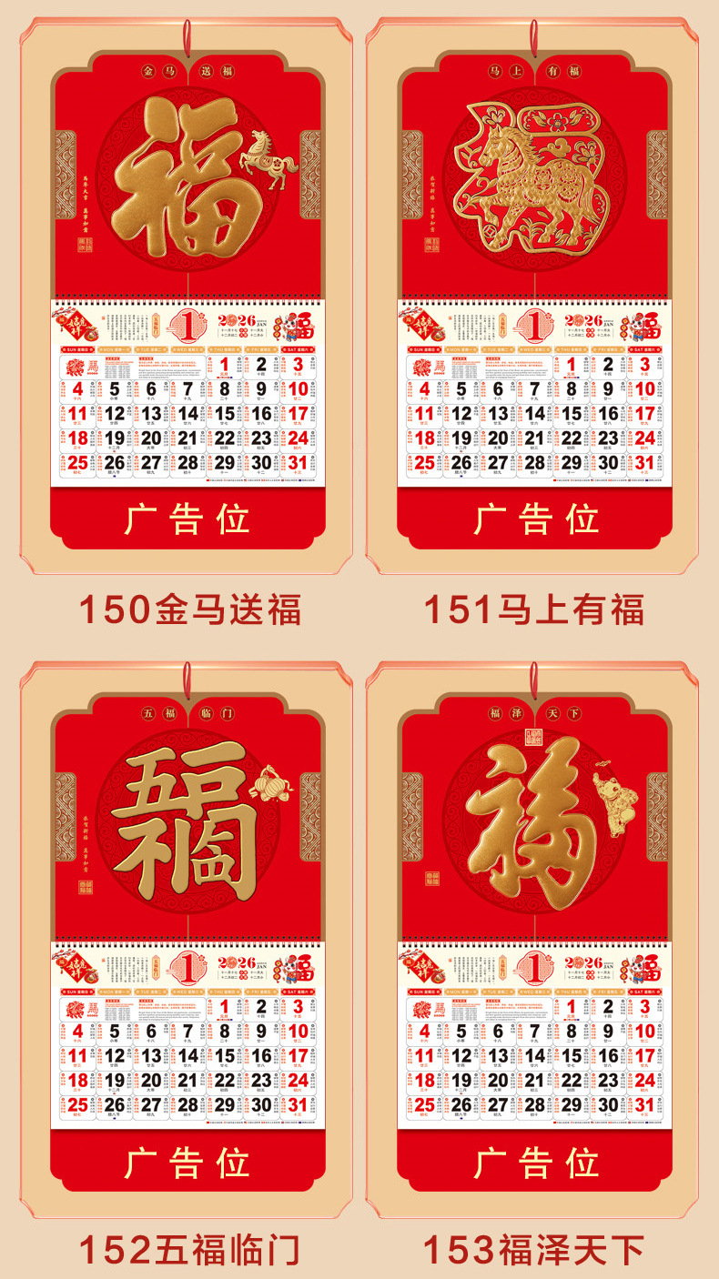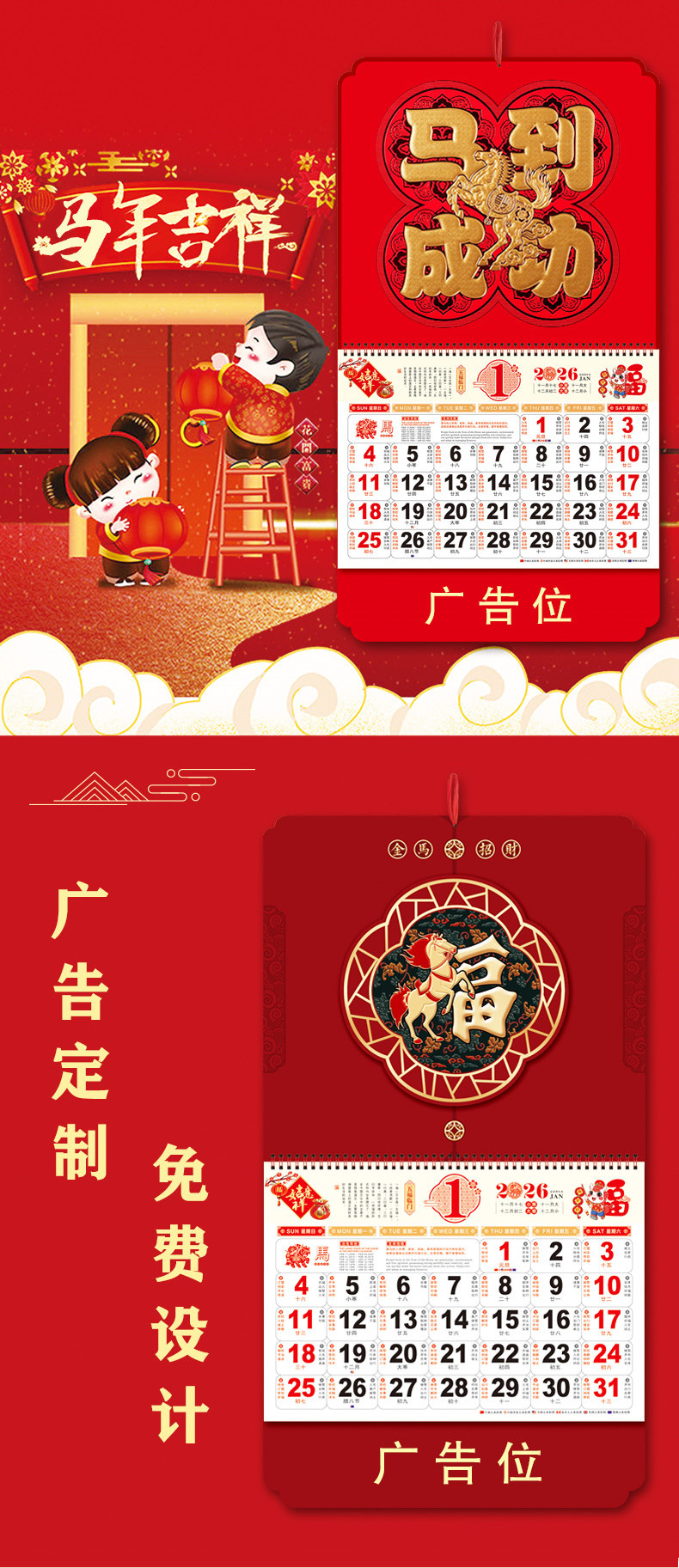 2026年九开金箔福字挂历定制公司广告创意月历马年吊历定做中国风