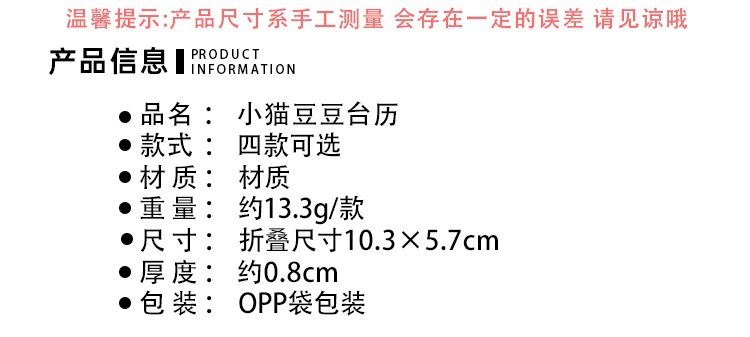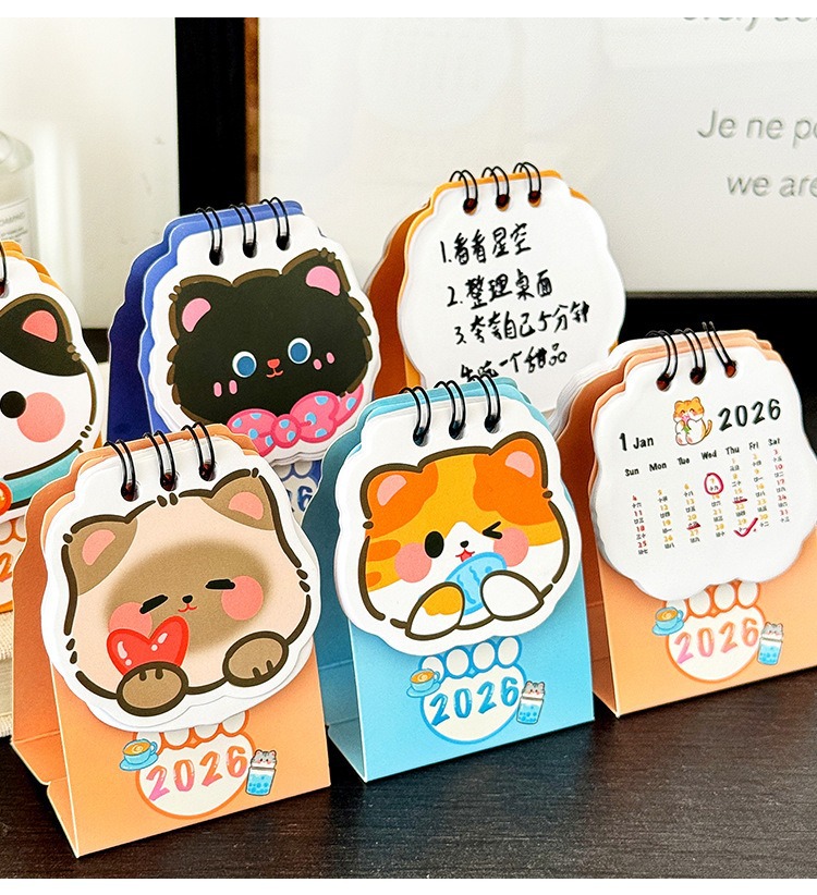 2026年卡通猫咪台历学生卓面摆件迷你小台历可爱小猫豆豆打卡日历