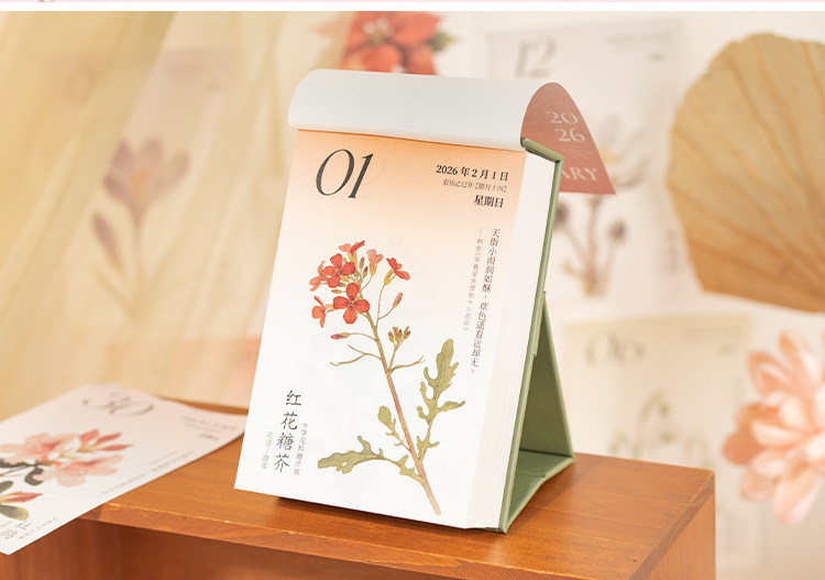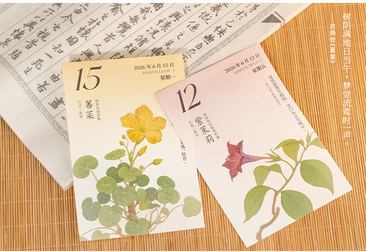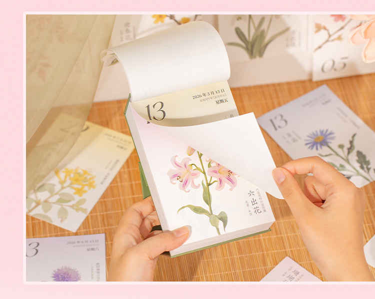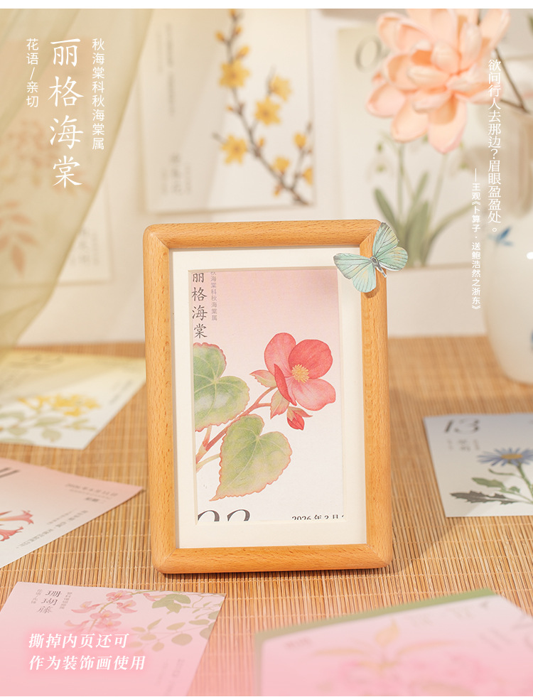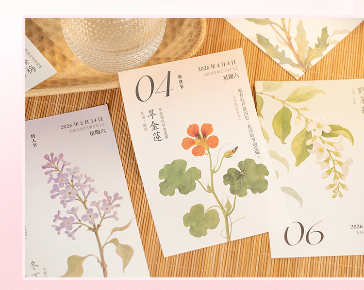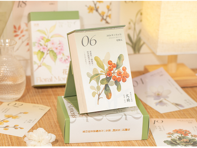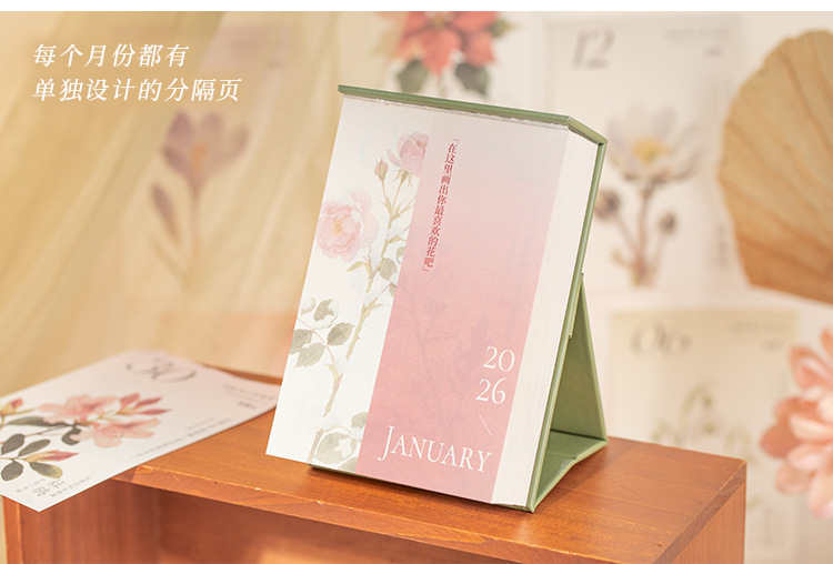 墨言语闲 2026花间历磁吸台历 花卉文字主题日历送人礼物桌面摆件