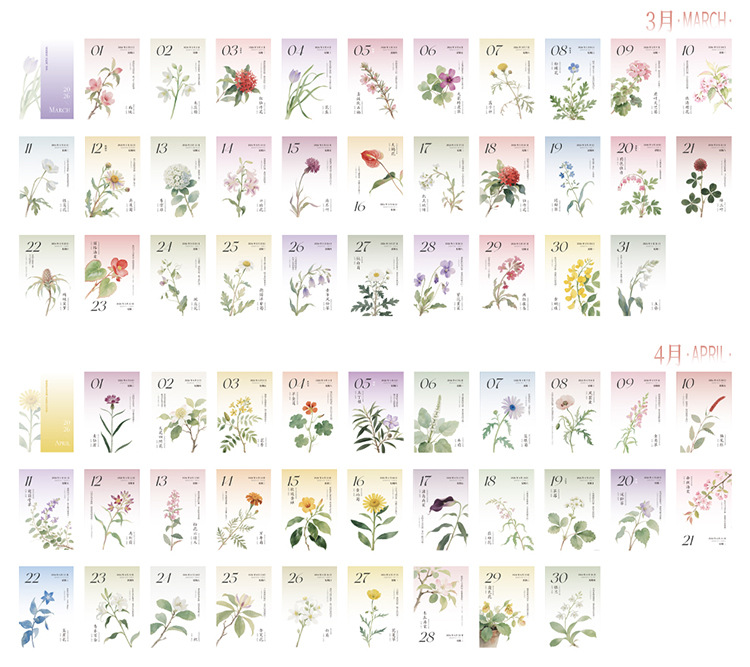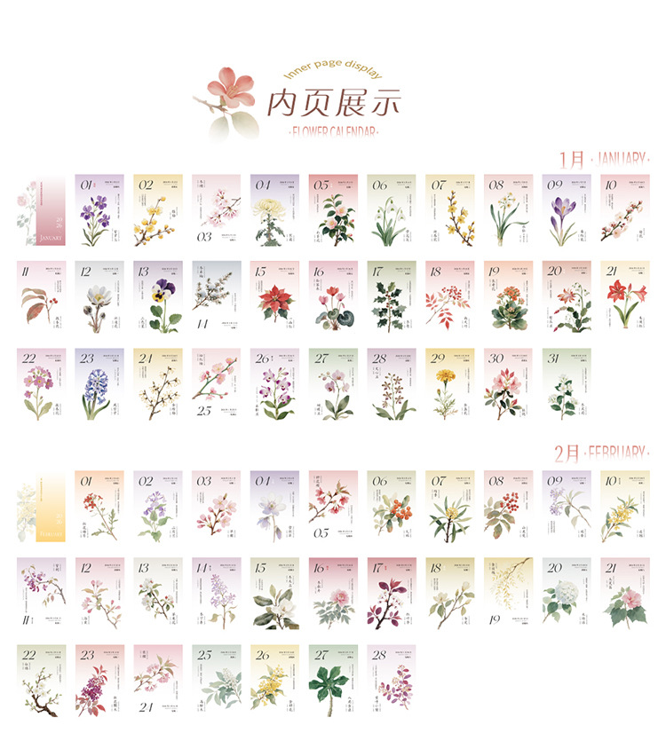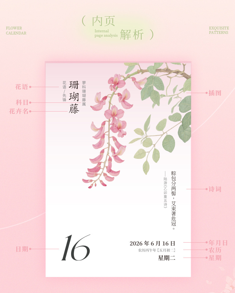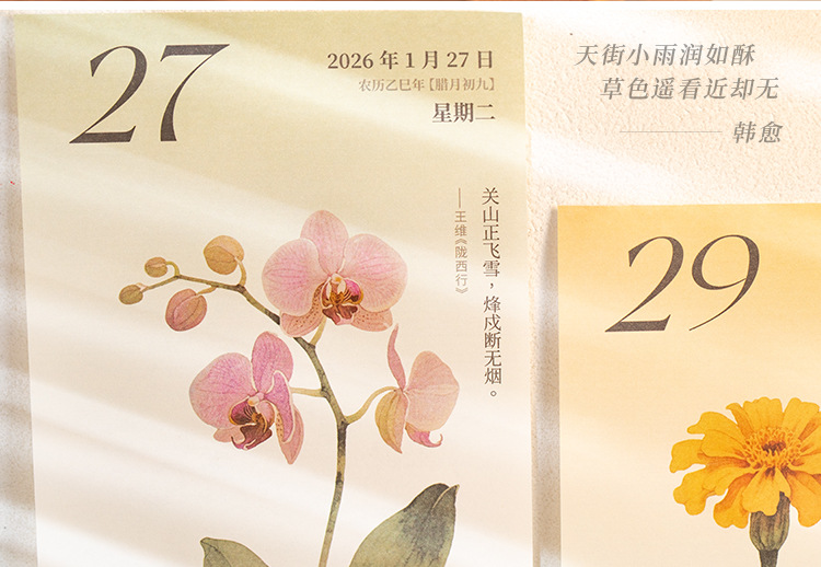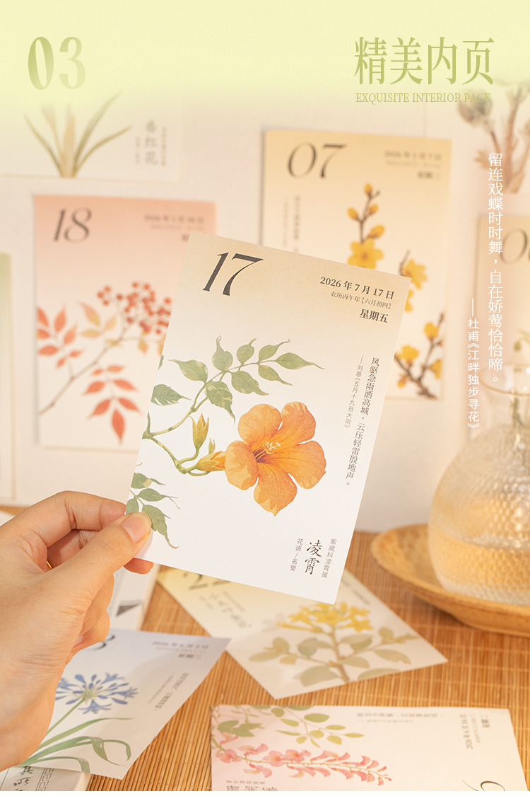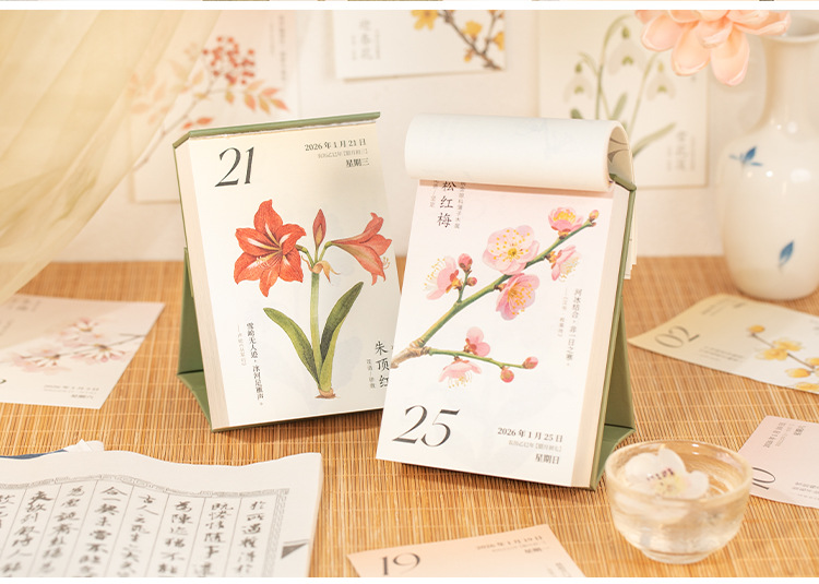 墨言语闲 2026花间历磁吸台历 花卉文字主题日历送人礼物桌面摆件