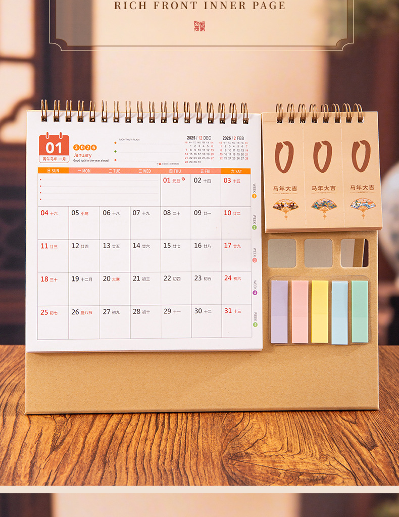 2026创意台历专版制作国风月历供应礼品企业台历定制LOGO桌面摆件