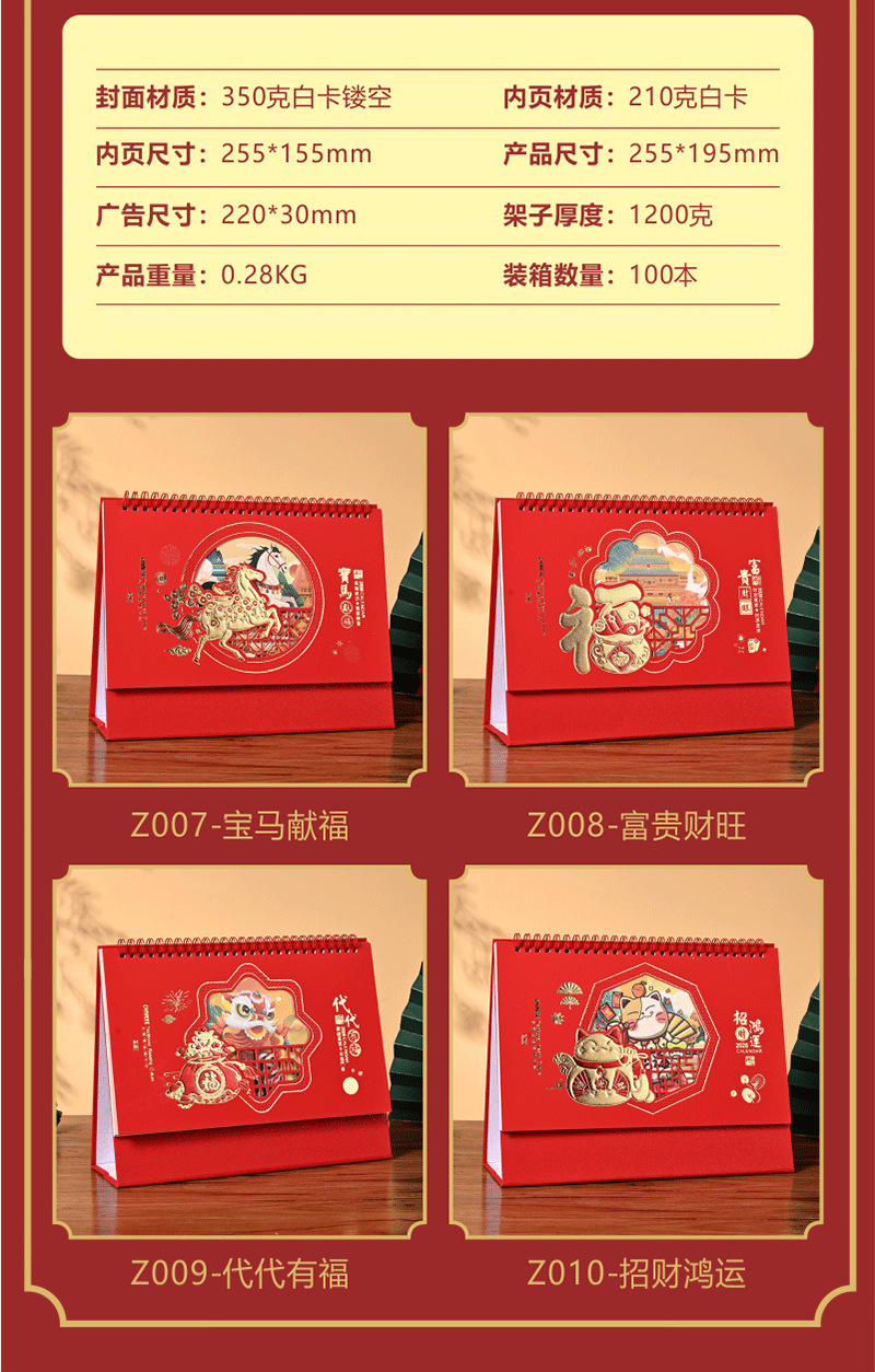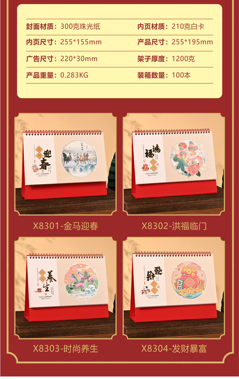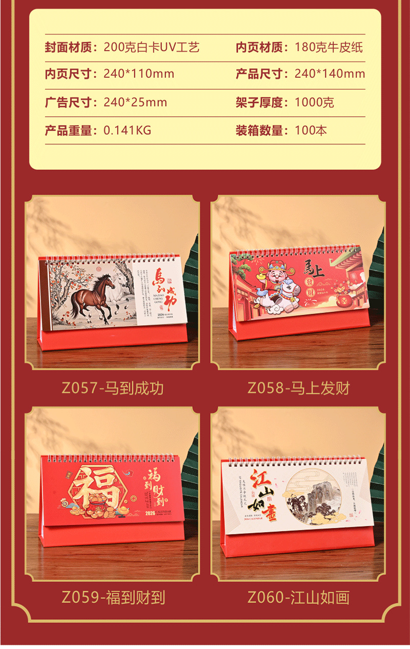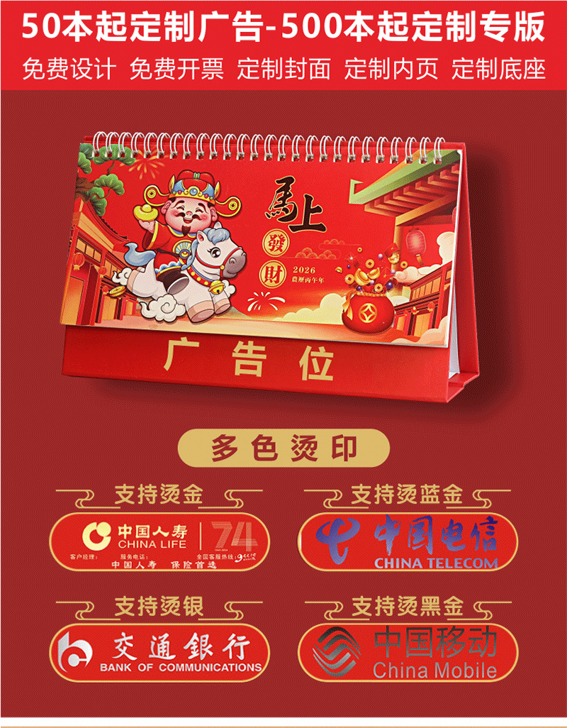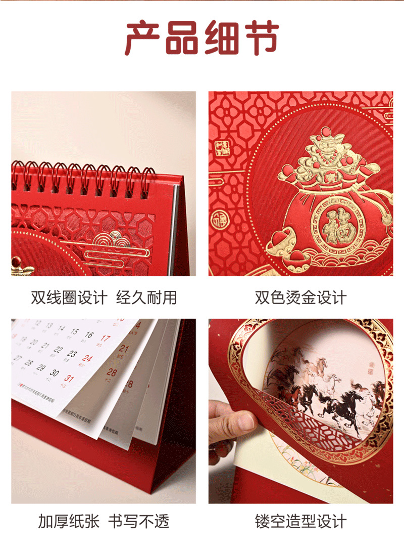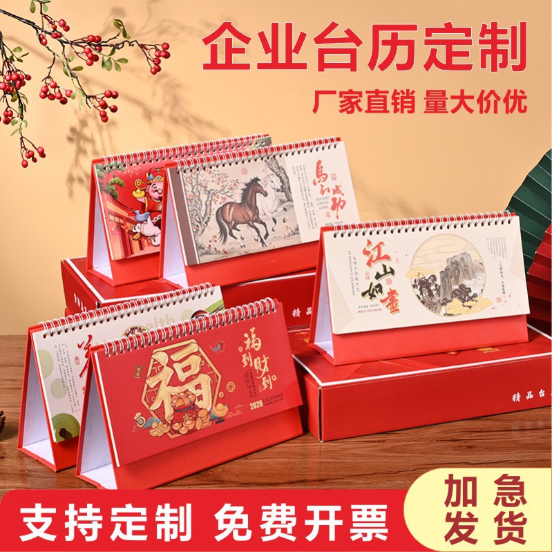 2026马年新年企业广告桌面日历台历月历办公桌打卡摆件日历定制