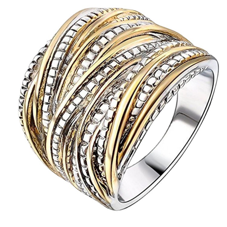 威娅跨境饰品金色夸张个性多环圈圈戒指欧美风时尚单品