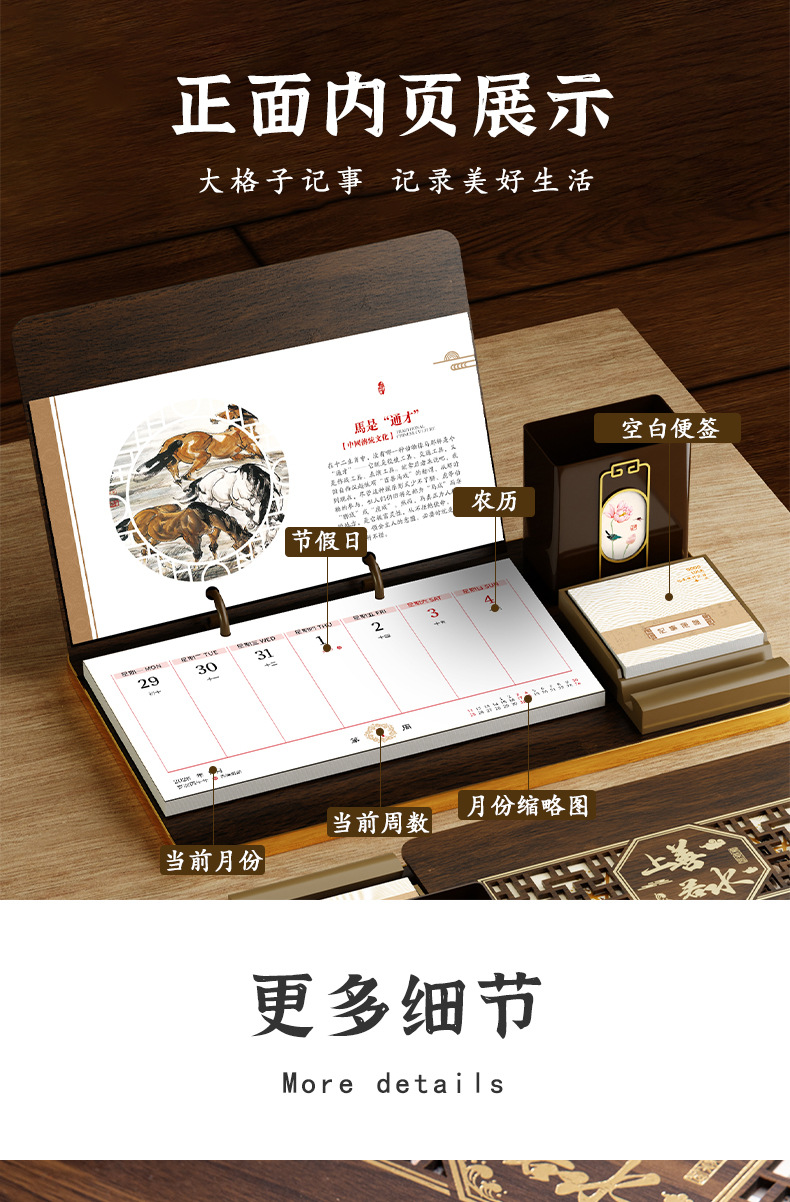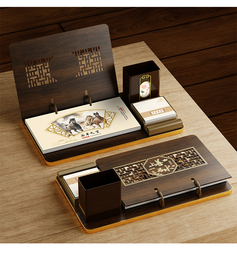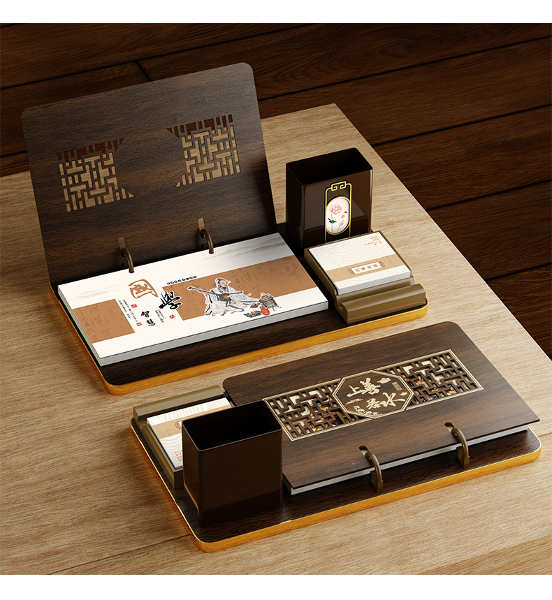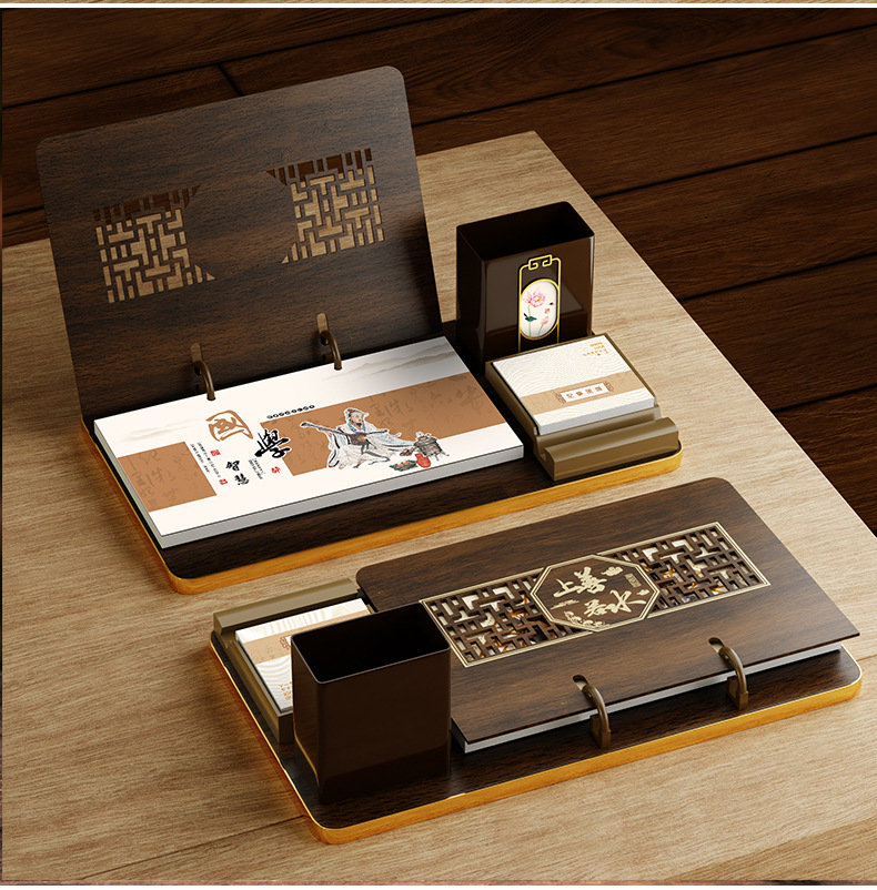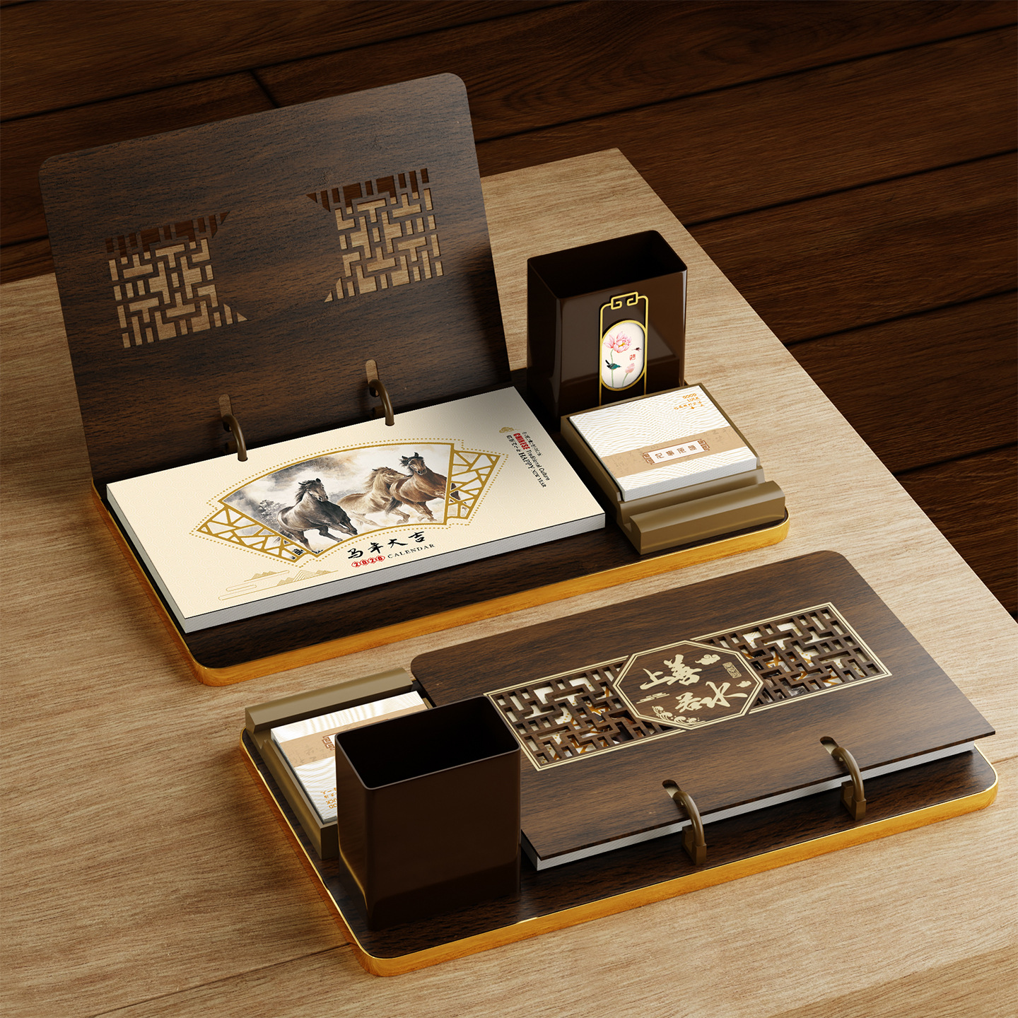 2026年木架台历创意中国风日历高档商务周历多功能笔筒礼盒装定制