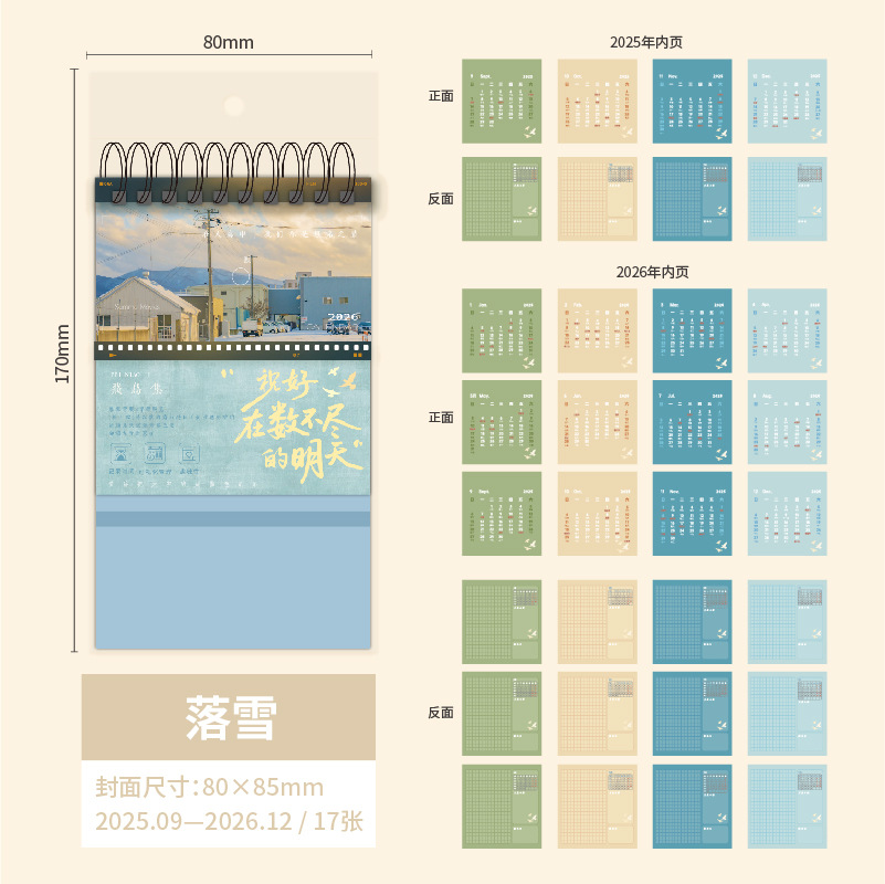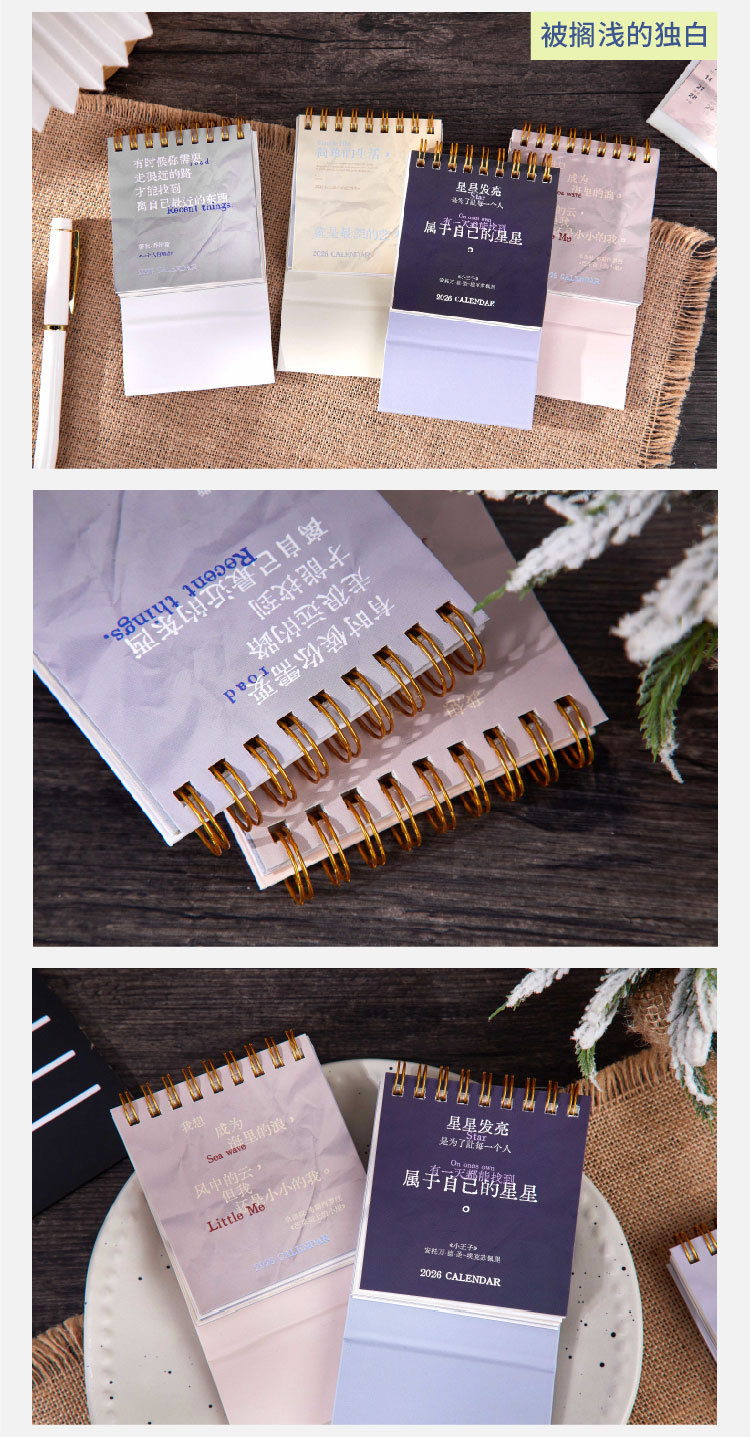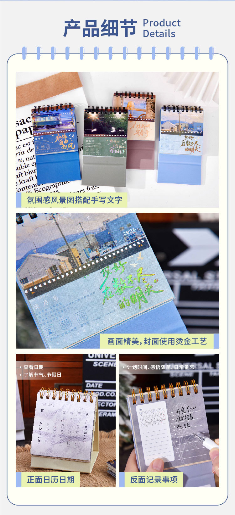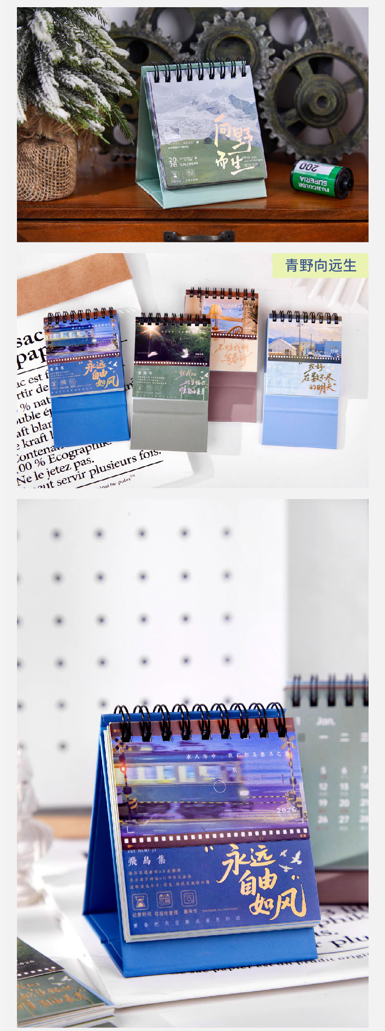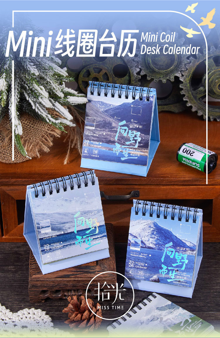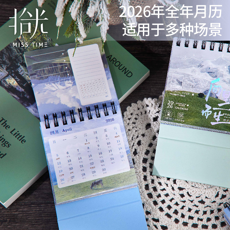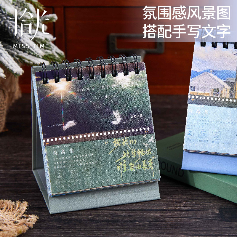 拾光2026年小台历 创意风景插画烫银日历打卡标记备忘桌面摆件