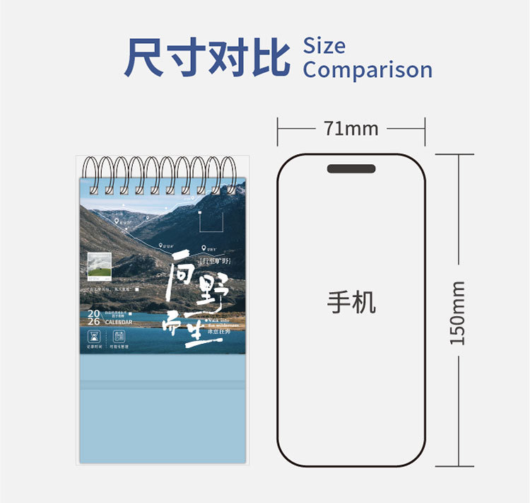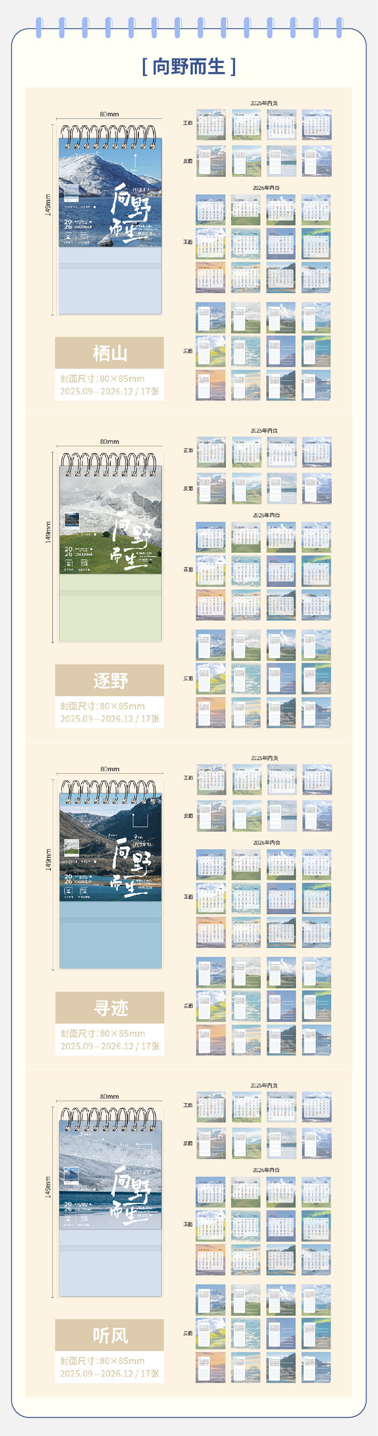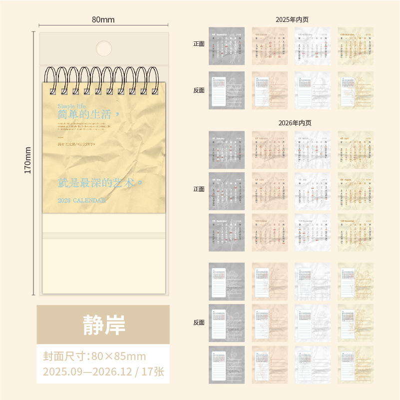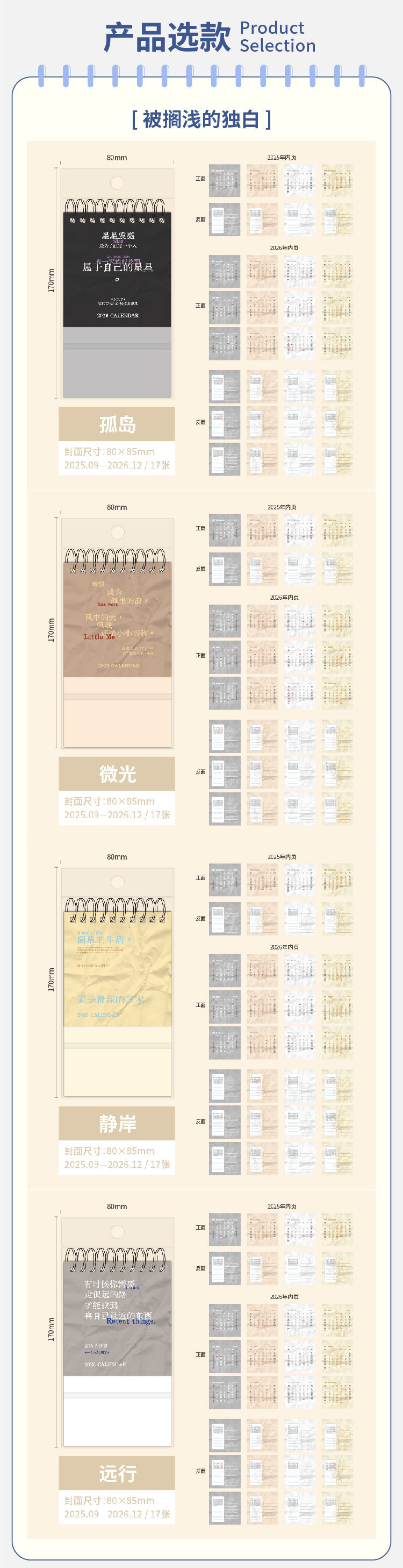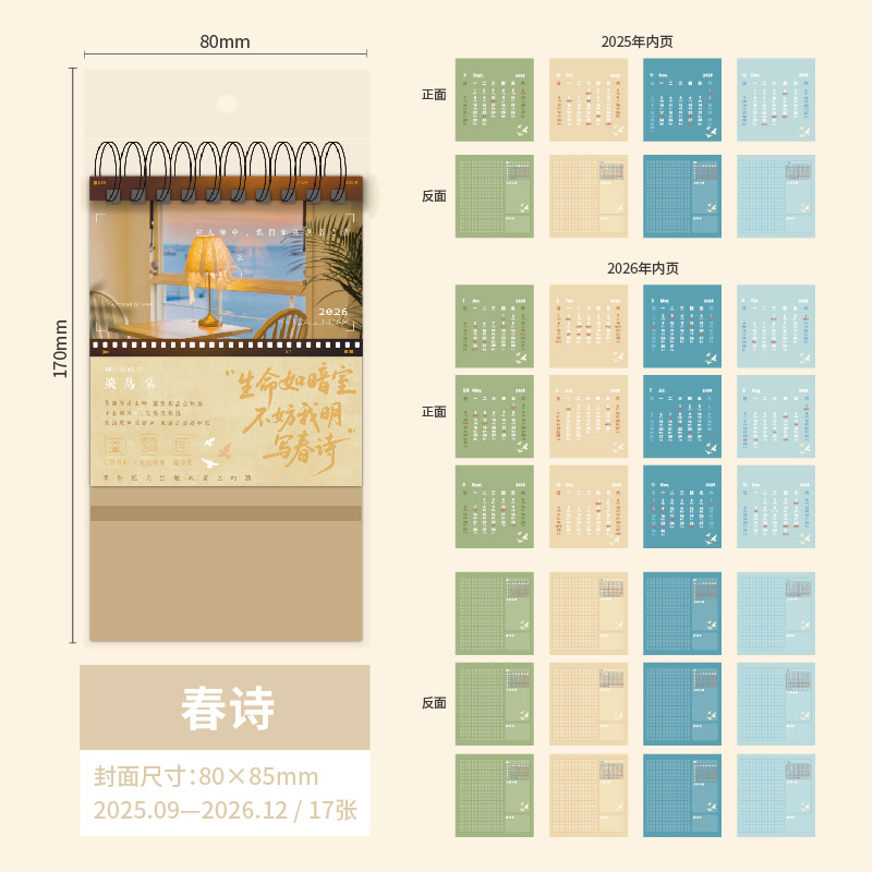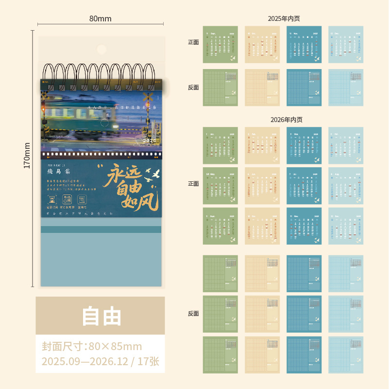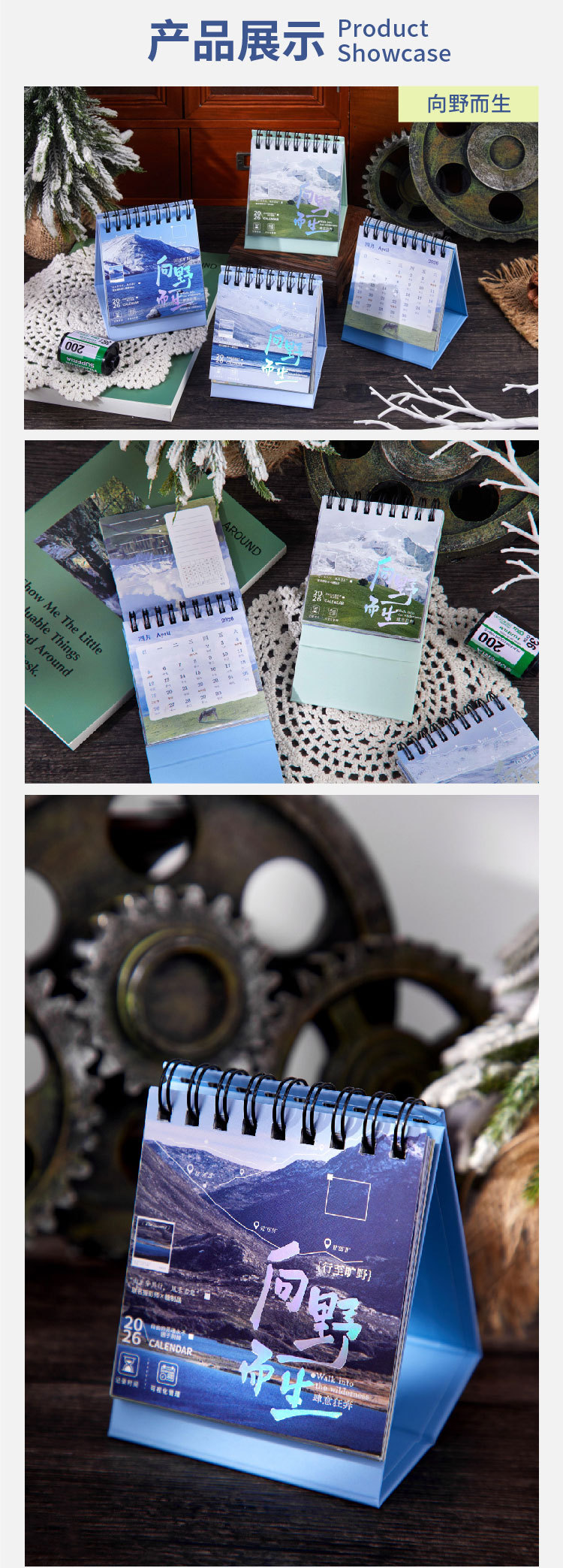 拾光2026年小台历 创意风景插画烫银日历打卡标记备忘桌面摆件