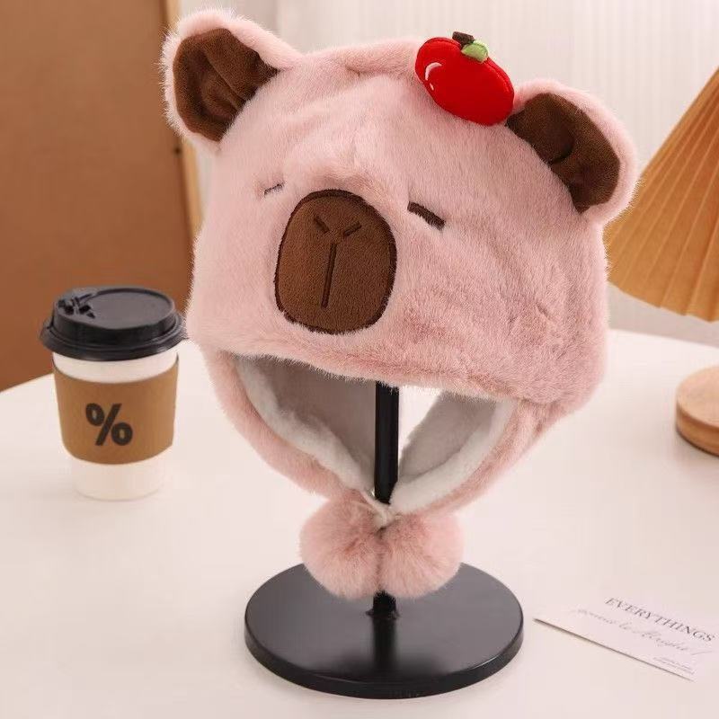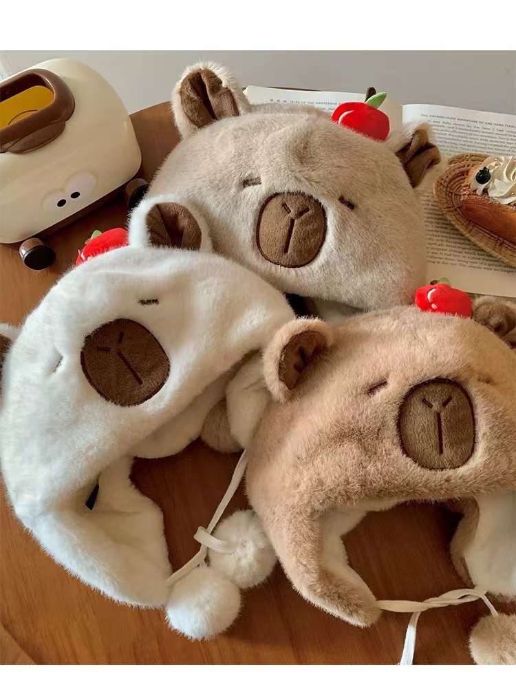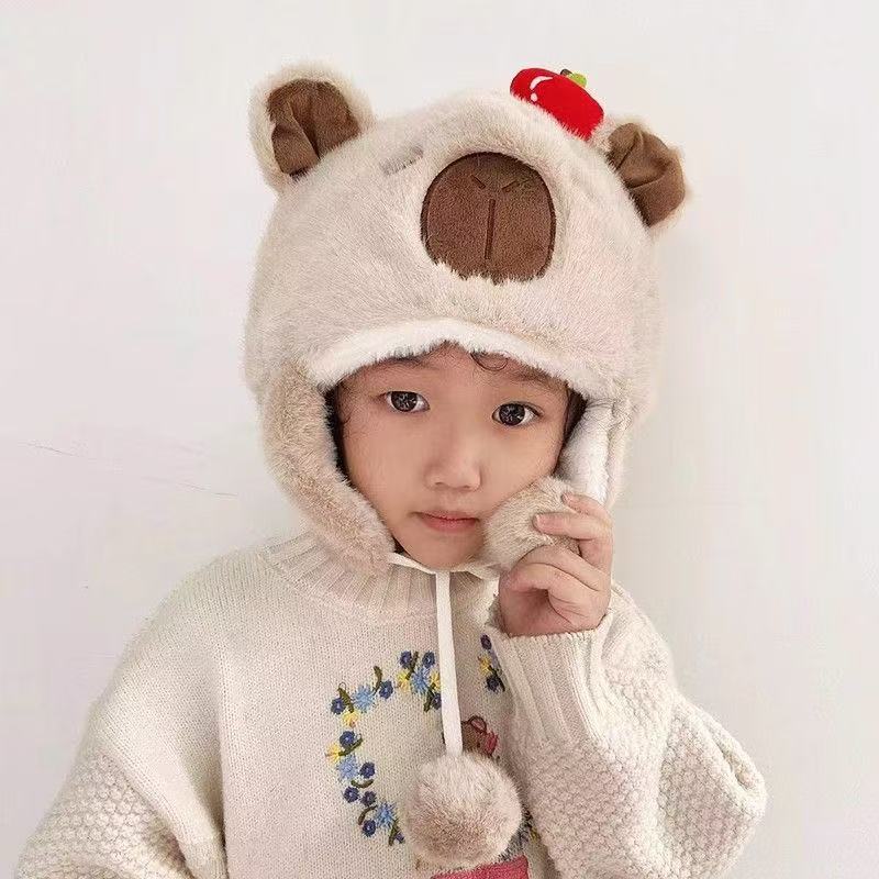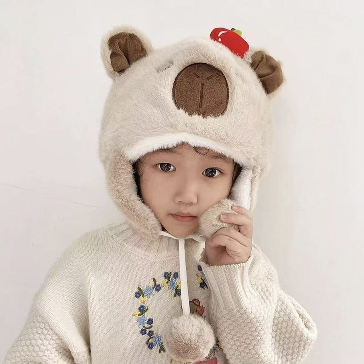 儿童帽子冬季可爱呆萌卡皮巴拉毛绒护耳帽加厚防寒雷锋帽女高级感