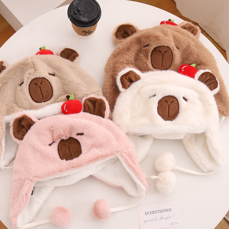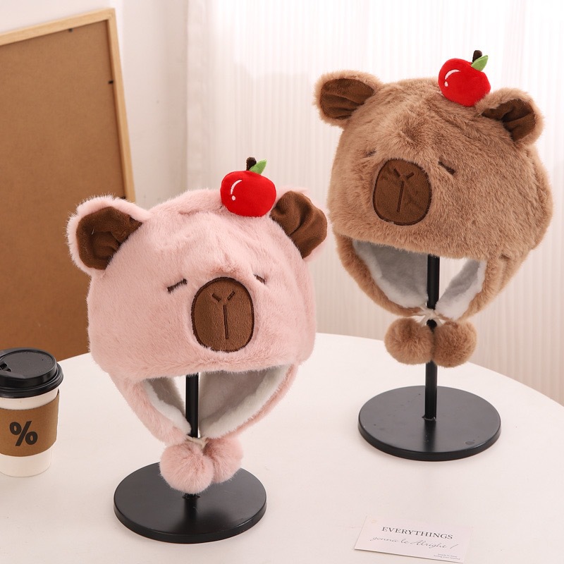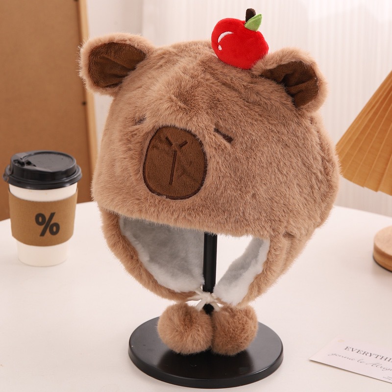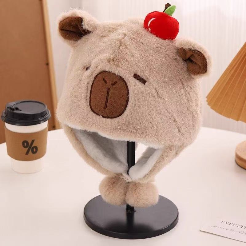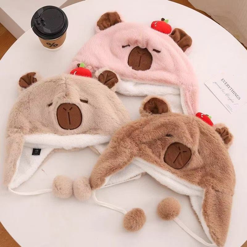 儿童帽子冬季可爱呆萌卡皮巴拉毛绒护耳帽加厚防寒雷锋帽女高级感