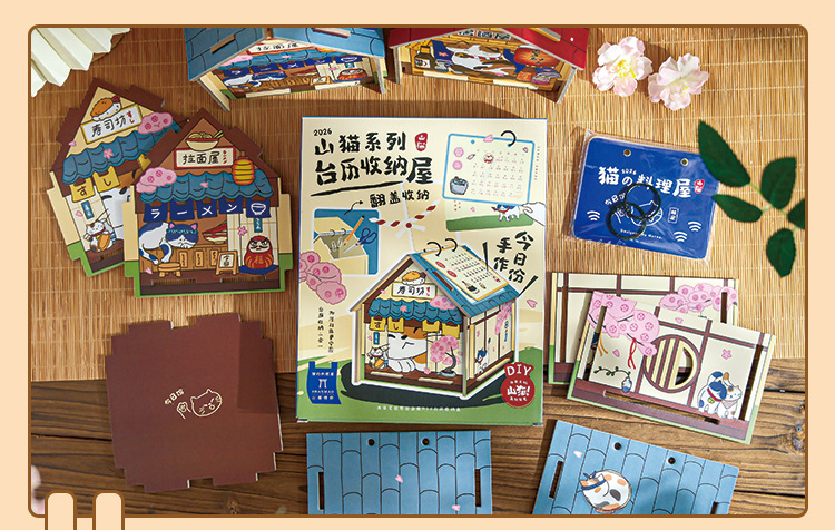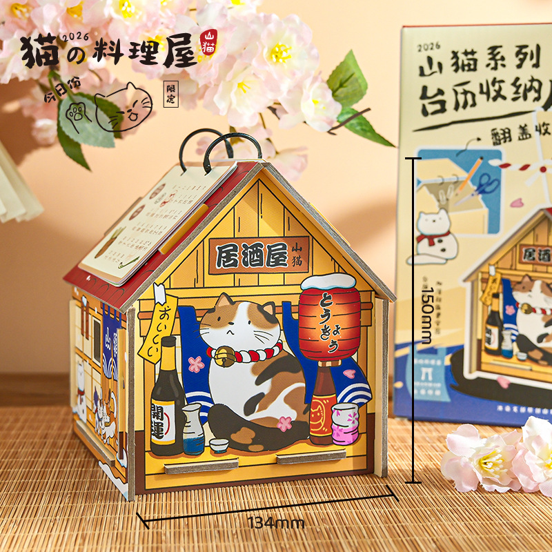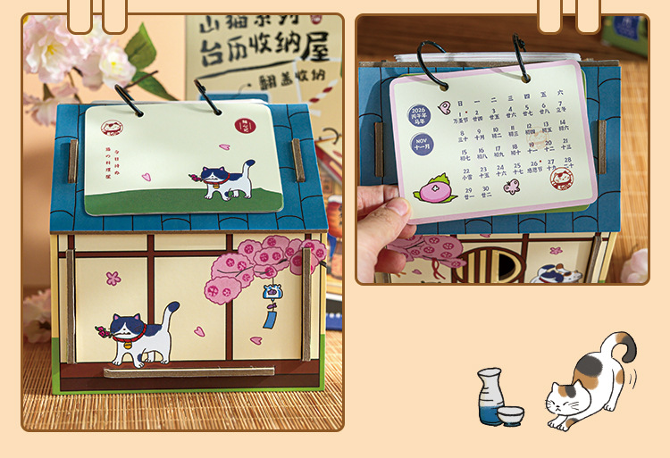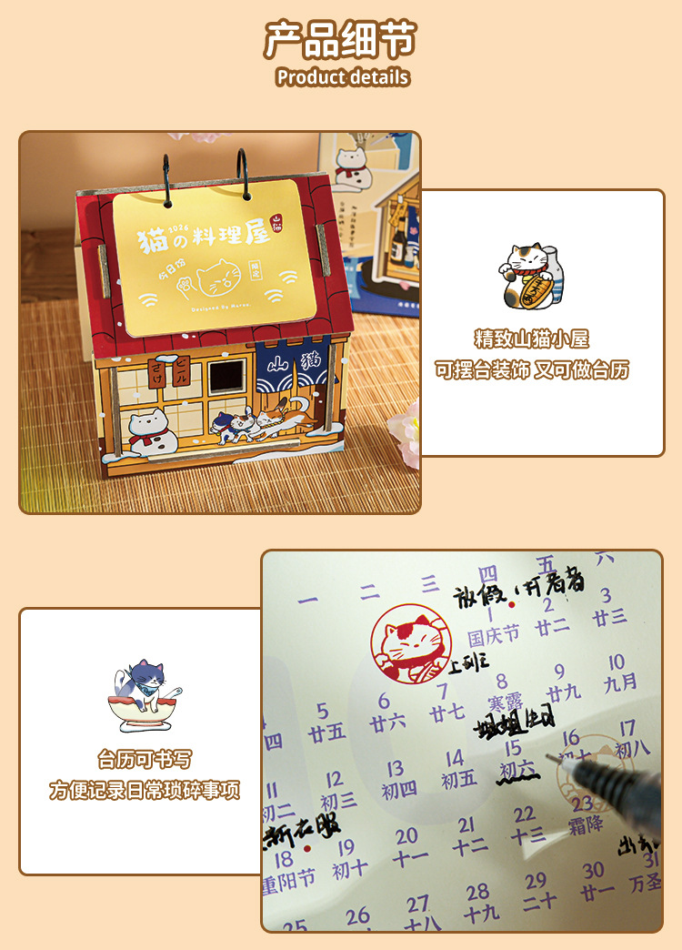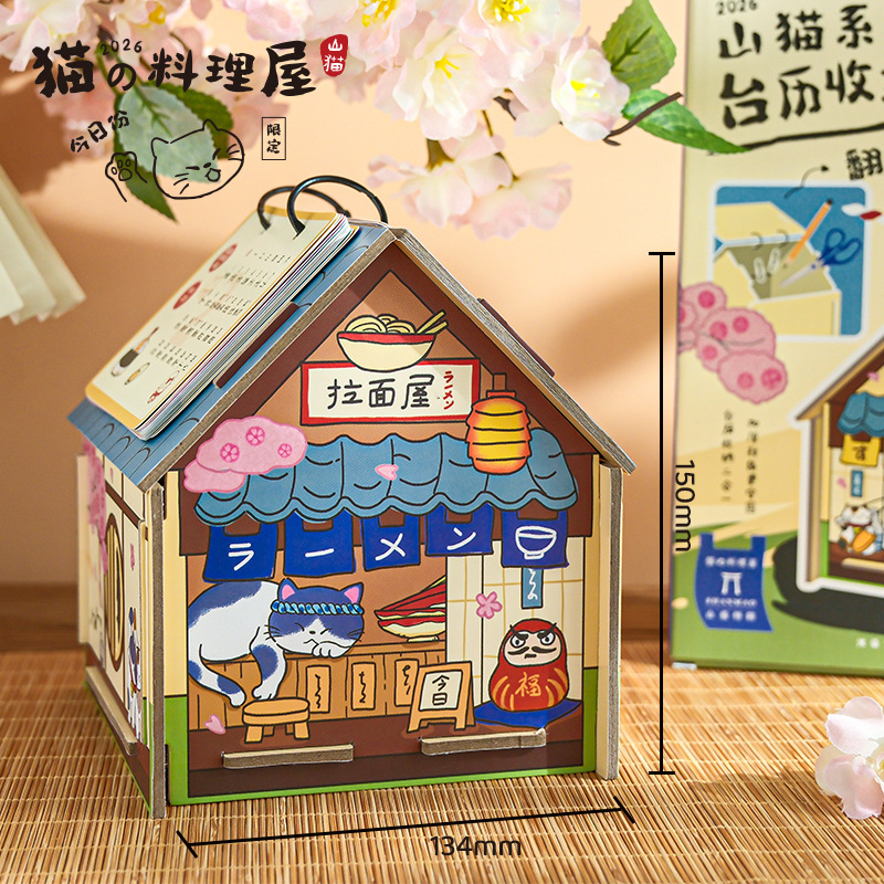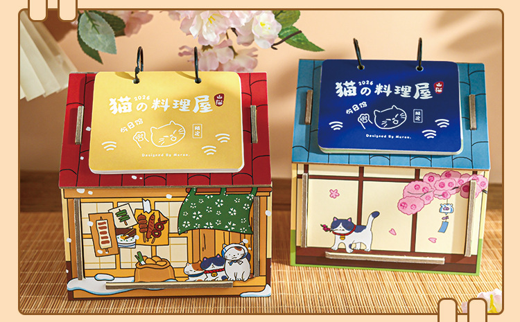 日历2026 猫的料理屋收纳台历桌面摆件diy打卡备忘月历本活页台历