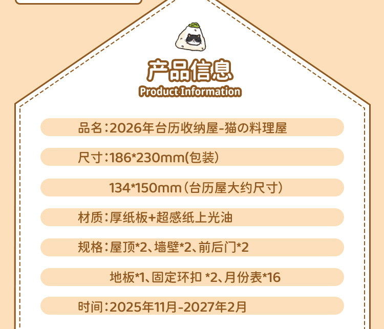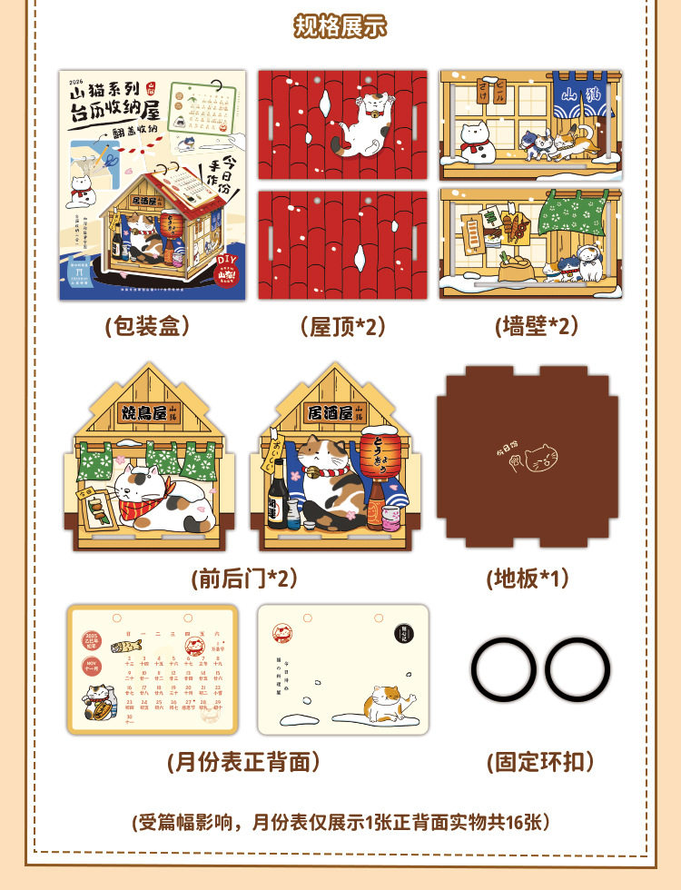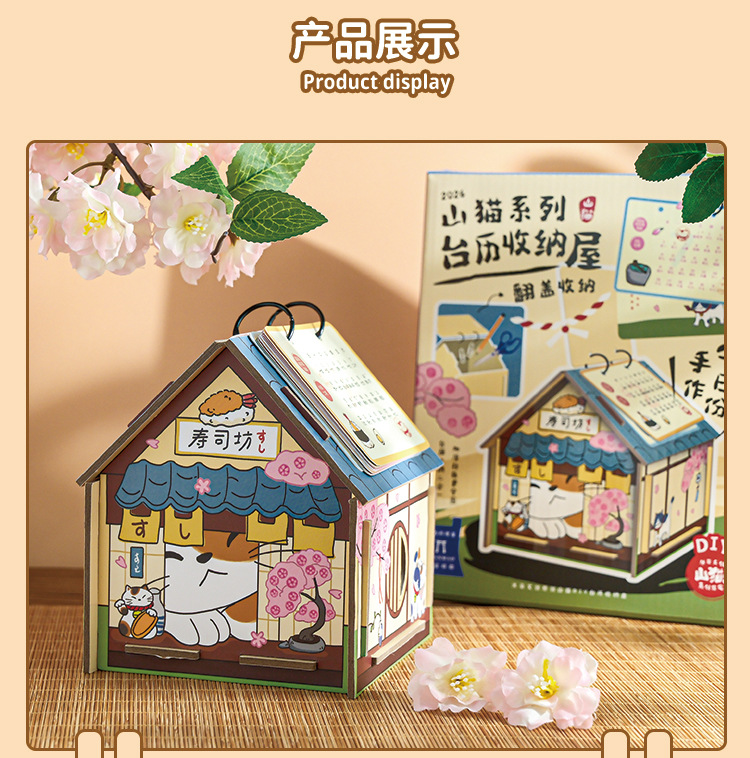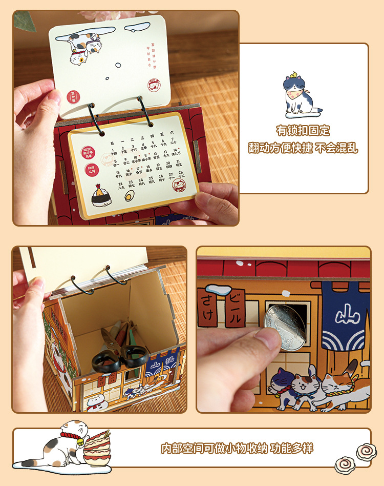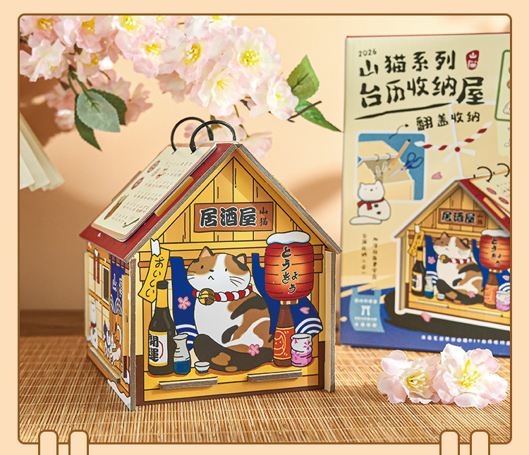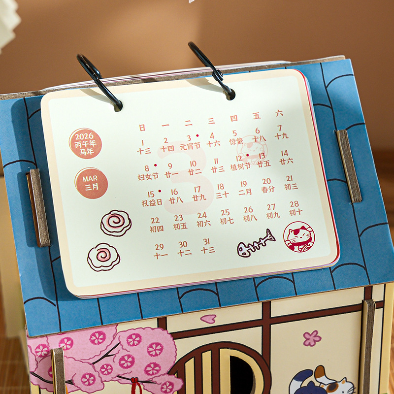 日历2026 猫的料理屋收纳台历桌面摆件diy打卡备忘月历本活页台历