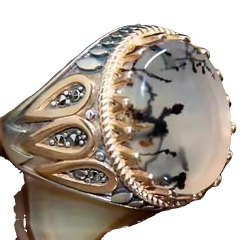 薇娅跨境饰品复古雕刻镶钻水墨月光石几何造型手饰新款直供
