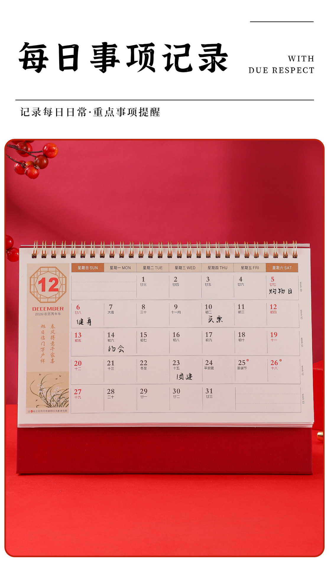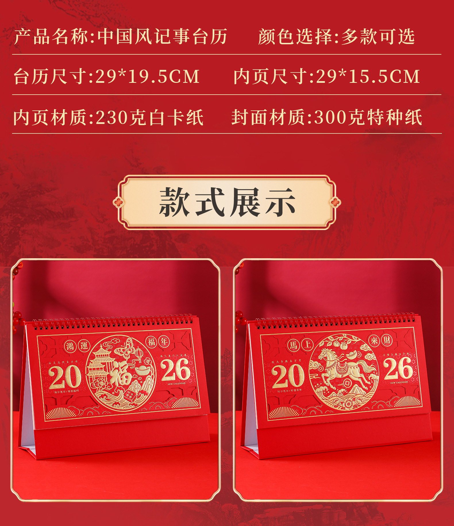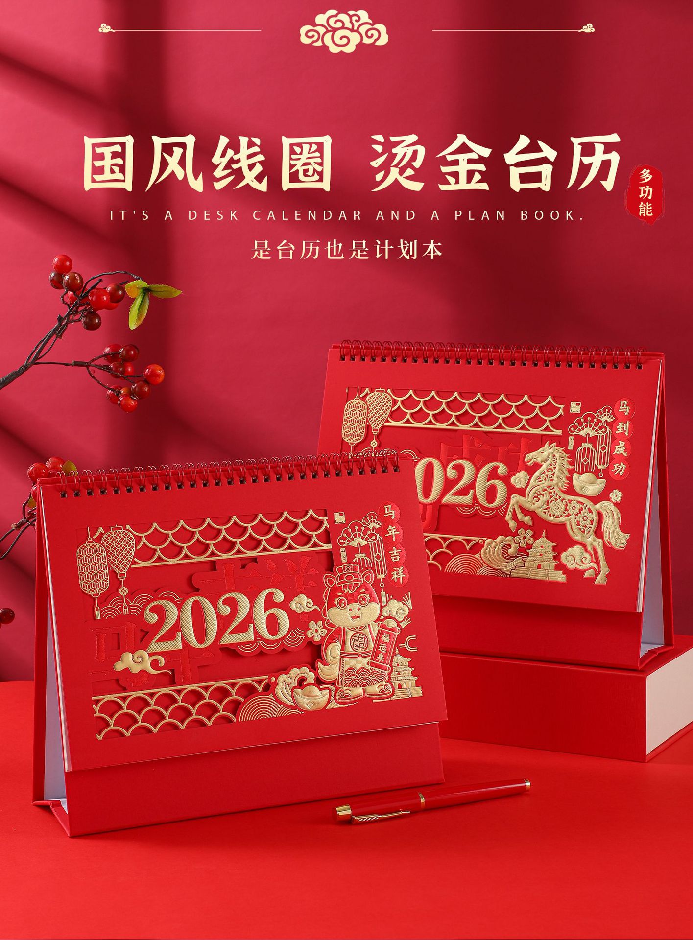 中国风2026年马年镂空台历定制logo来图企业广告创意日历月历摆件
