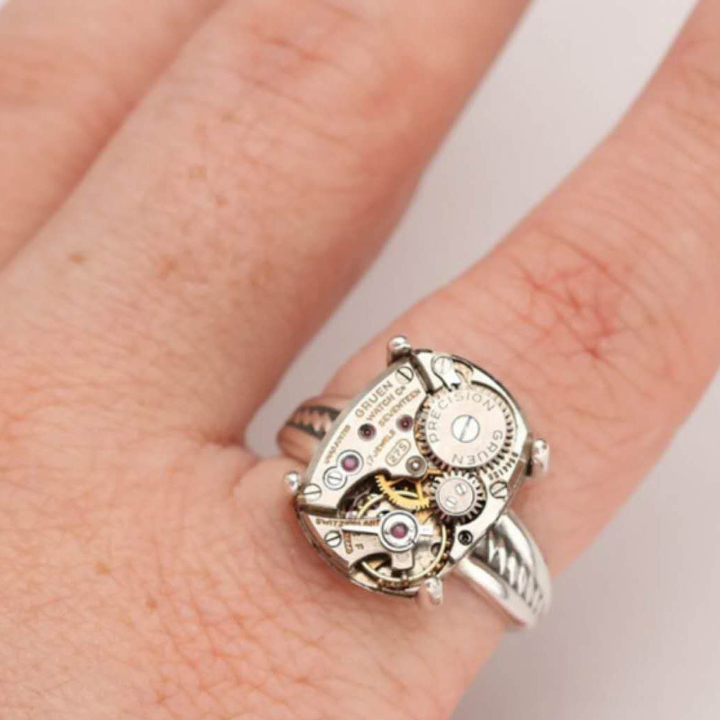 威娅跨境饰品wish配饰机械盘设计金属感戒指个性男戒百搭酷炫镀金