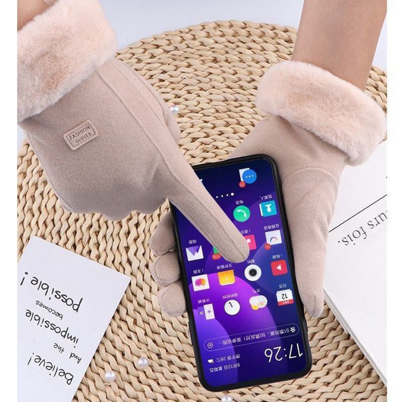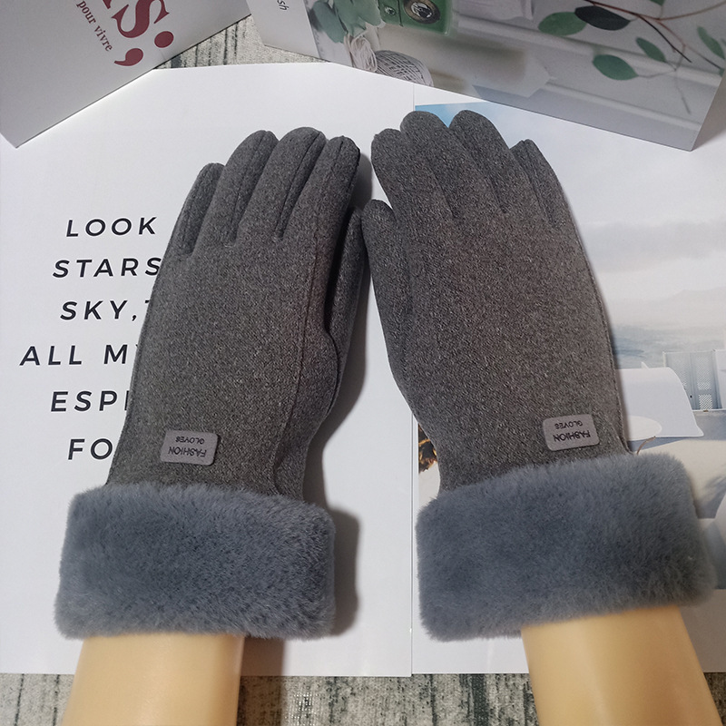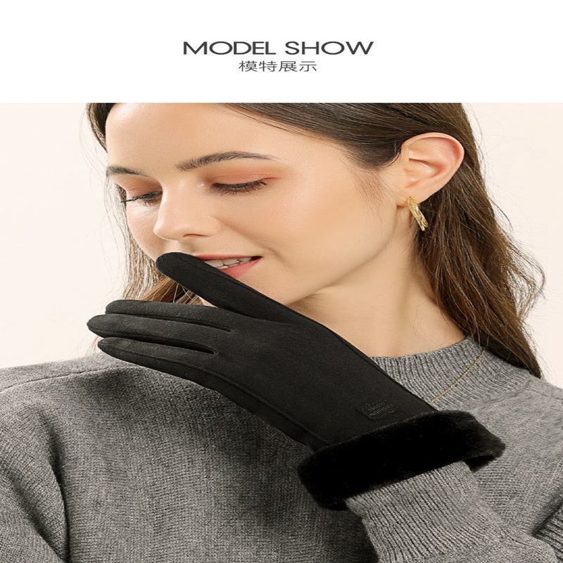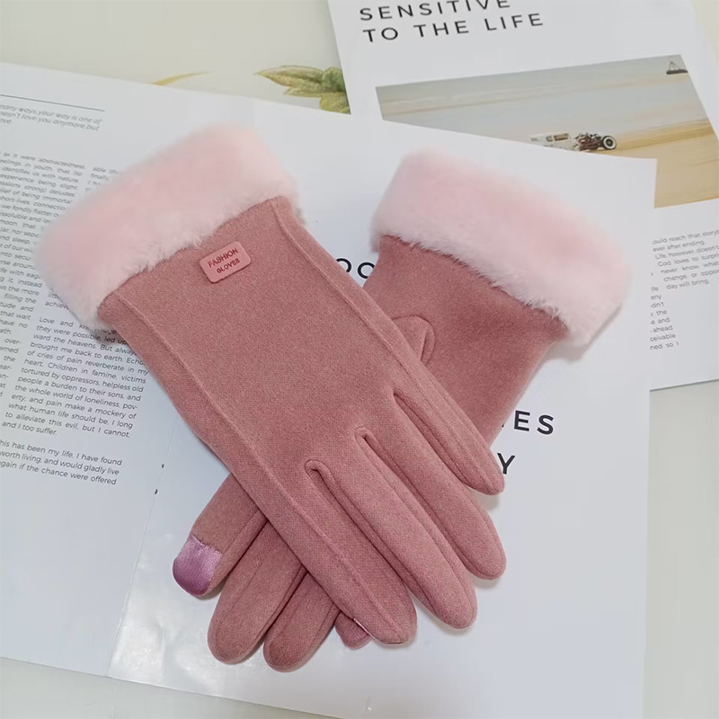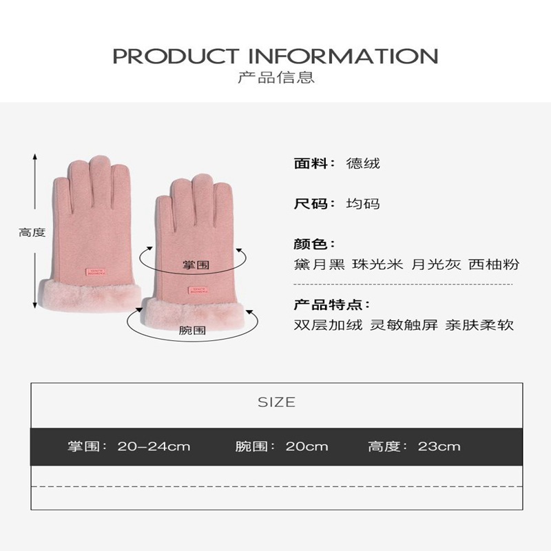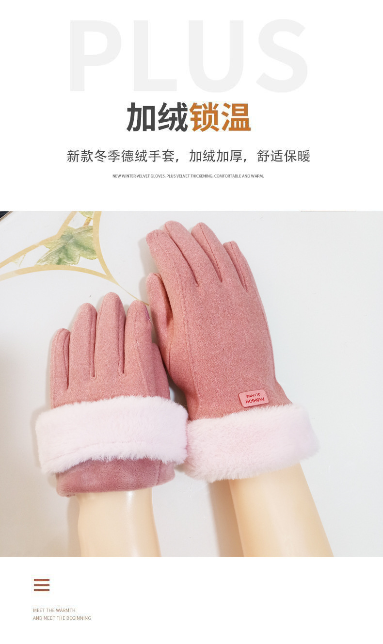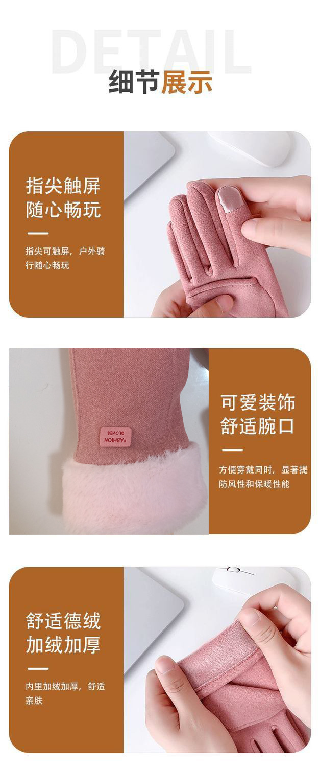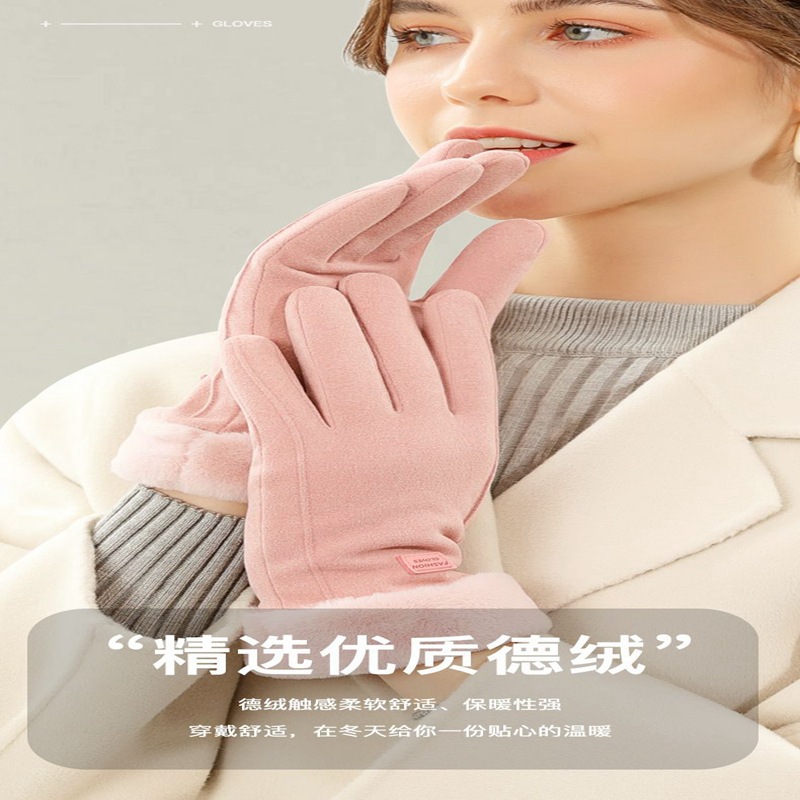 德绒触屏女保暖手套冬天冬季可爱学生骑行防寒开车加绒加厚骑批发