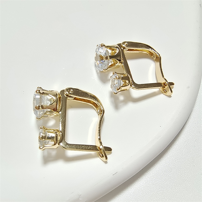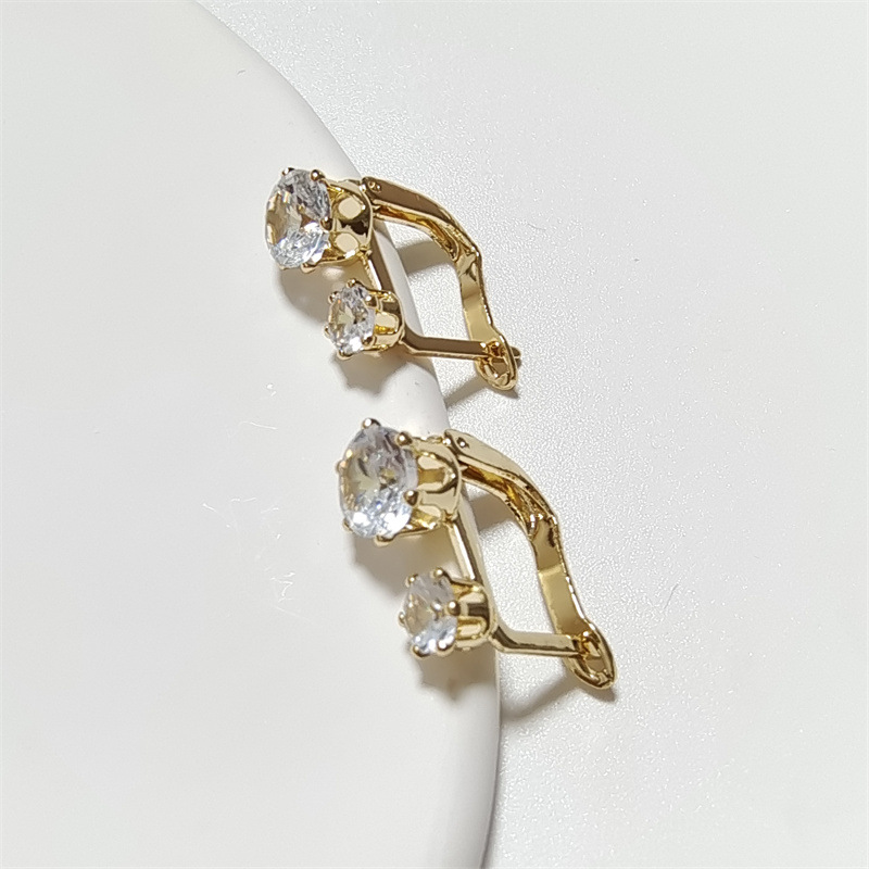 薇娅wish速卖通跨境新款女款耳饰锆石镀香槟金耳扣结婚耳环女