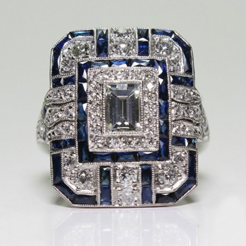 威娅wish方形白色蓝宝石锆石戒指欧美跨境时尚婚礼女式手饰品