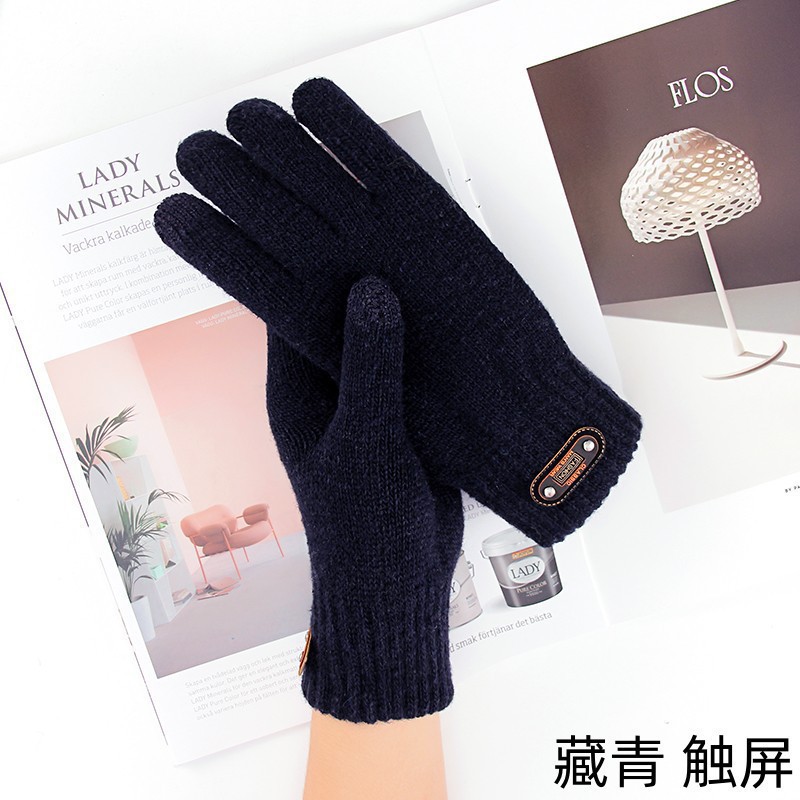 触屏手套冬季防寒保暖加绒针织手套户外骑行开车防风触屏毛线手套