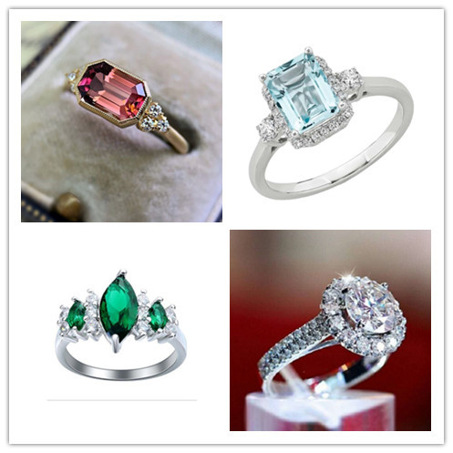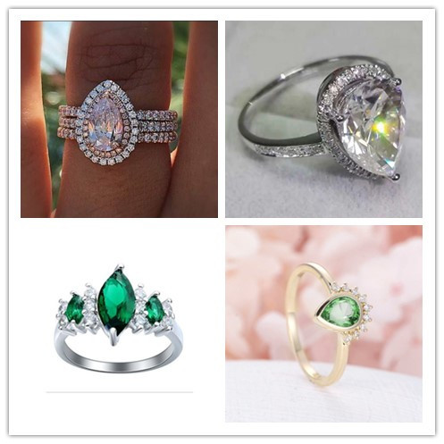 跨境新款蛋形戒指镶嵌锆石水晶女戒时尚气质手饰品