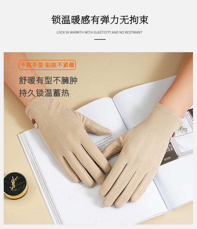 保暖手套女士春秋冬德绒薄款办公室户外开车骑行触屏防风防寒手套