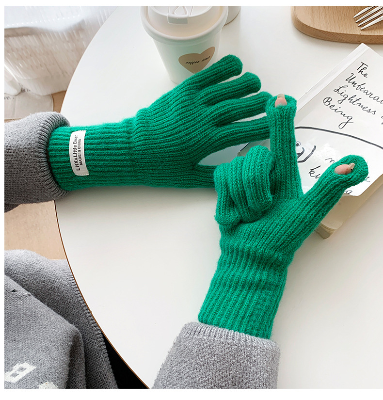 毛线手套女冬季骑行保暖防寒针织可触屏冬天学生骑车防风加长款