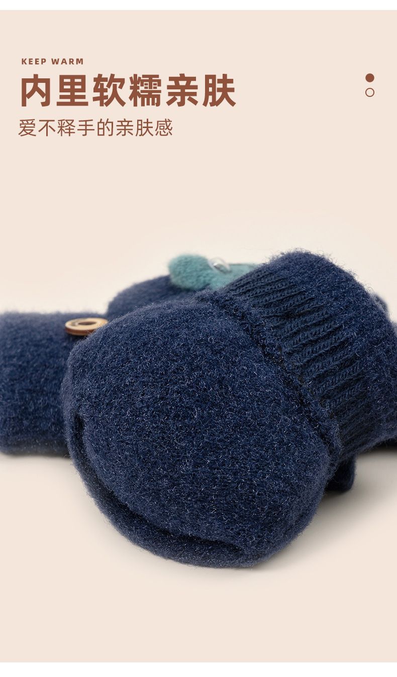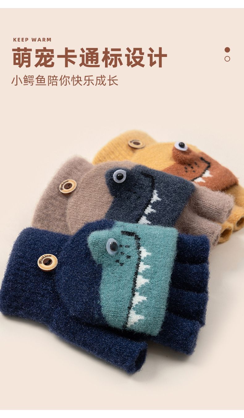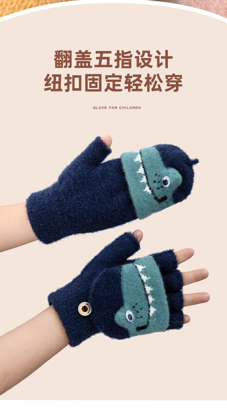 儿童露指冬季保暖手套防寒加绒半指翻盖卡通鳄鱼学生水貂绒生写字