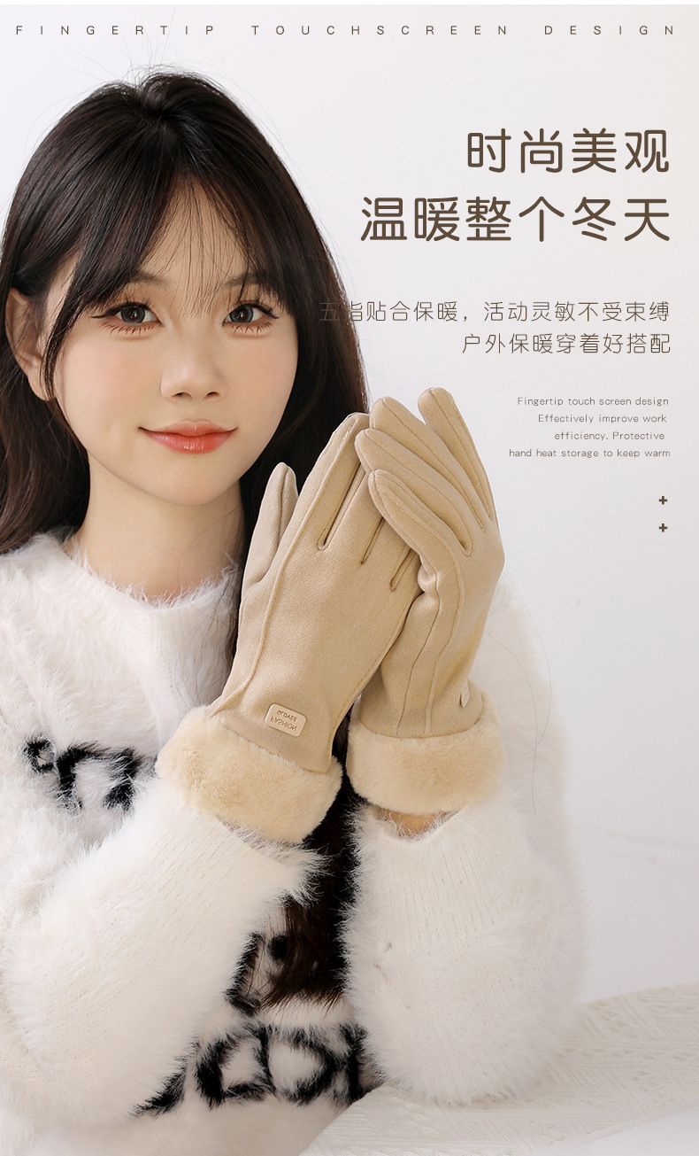 手套女士冬天骑车加绒防风加厚学生骑行防寒开车冬季触屏可爱保暖