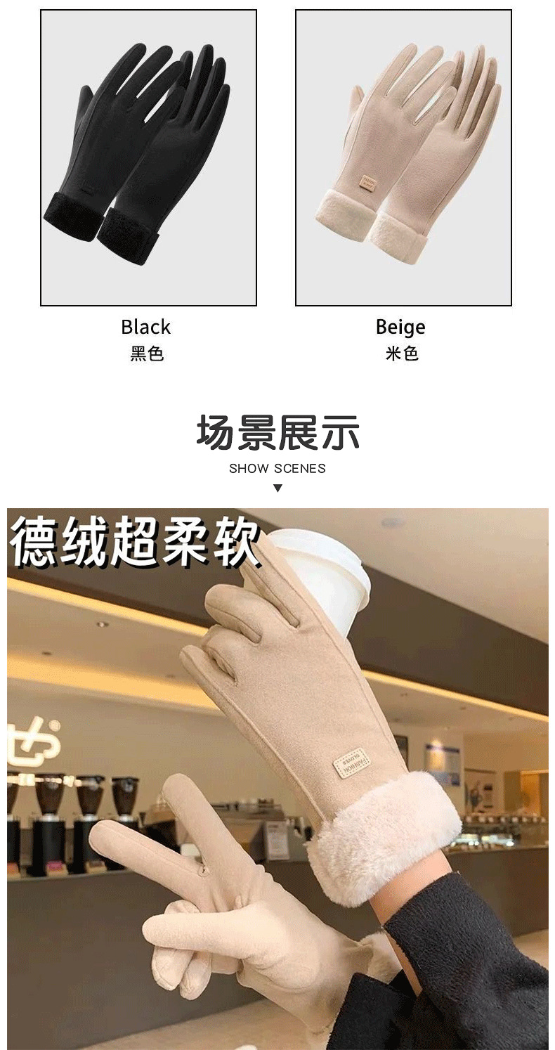 秋冬保暖手套女可触屏手套加绒加厚防风寒学生可爱骑行电动车手套