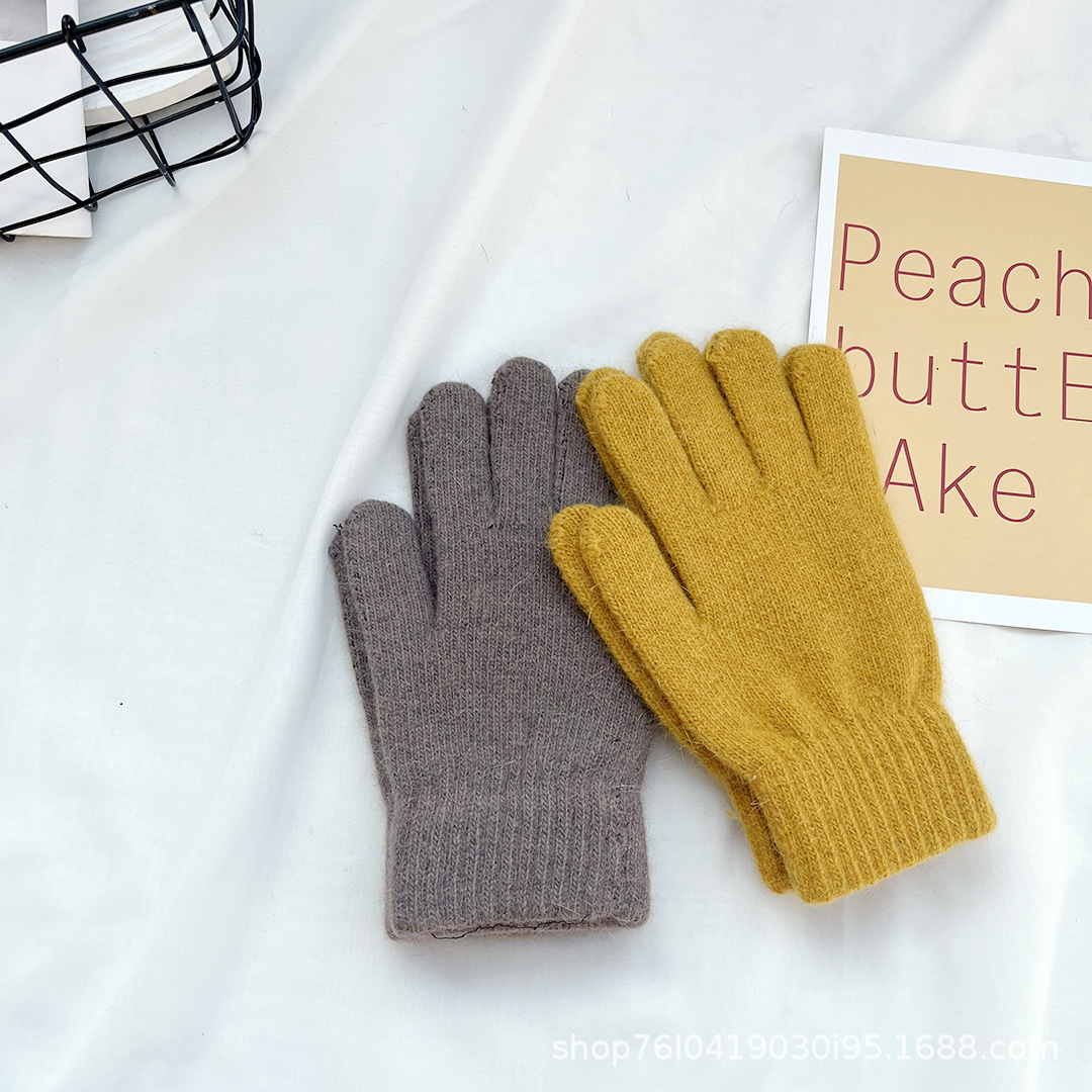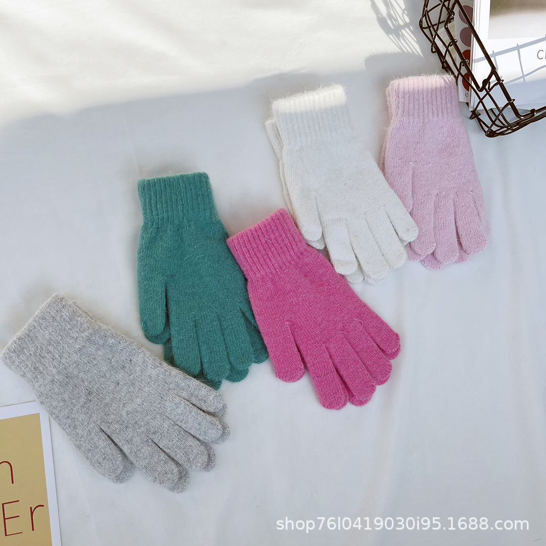 ins韩版针织兔毛手套 女冬季保暖简约学生光板五指防寒情侣手套潮