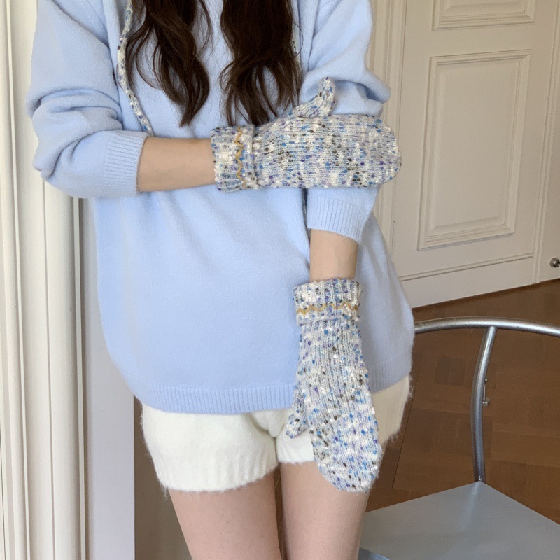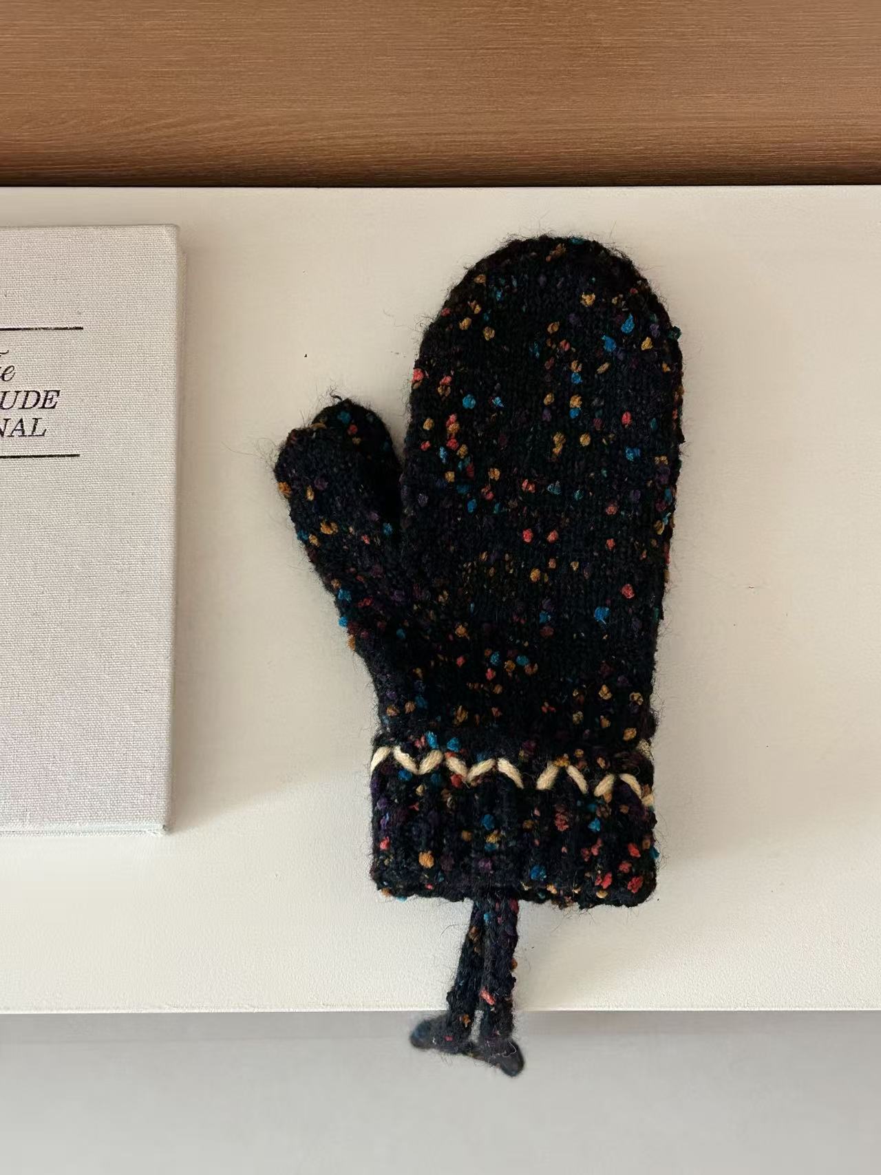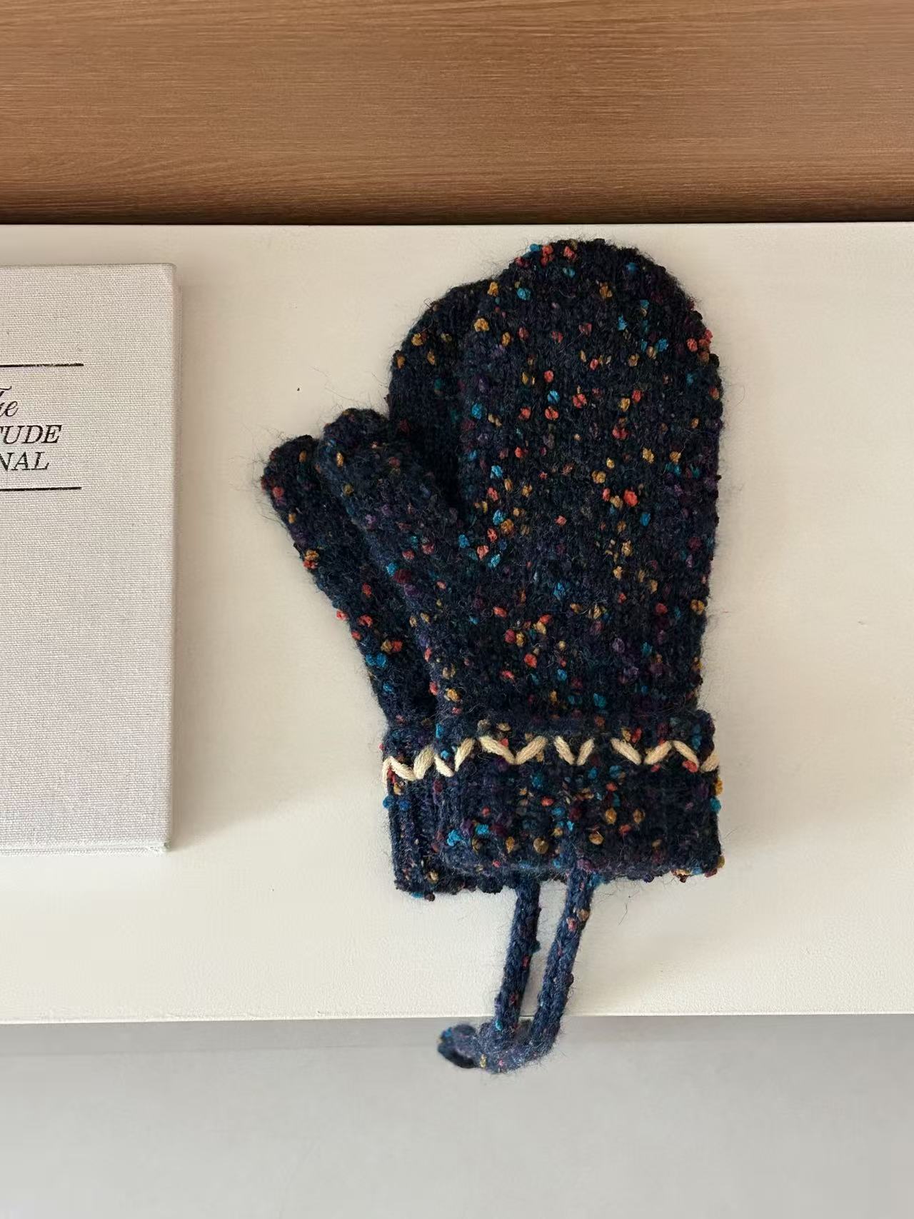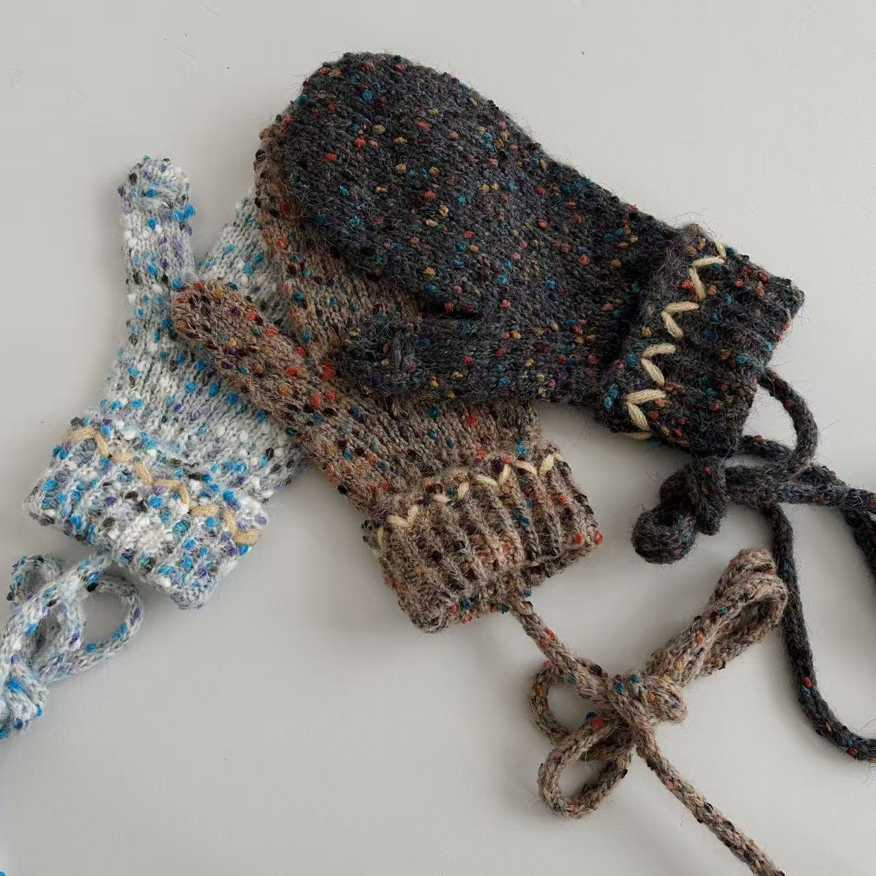 韩单复古糖豆甜美百搭连指挂脖绳手套圣诞氛围感毛线针织保暖手套