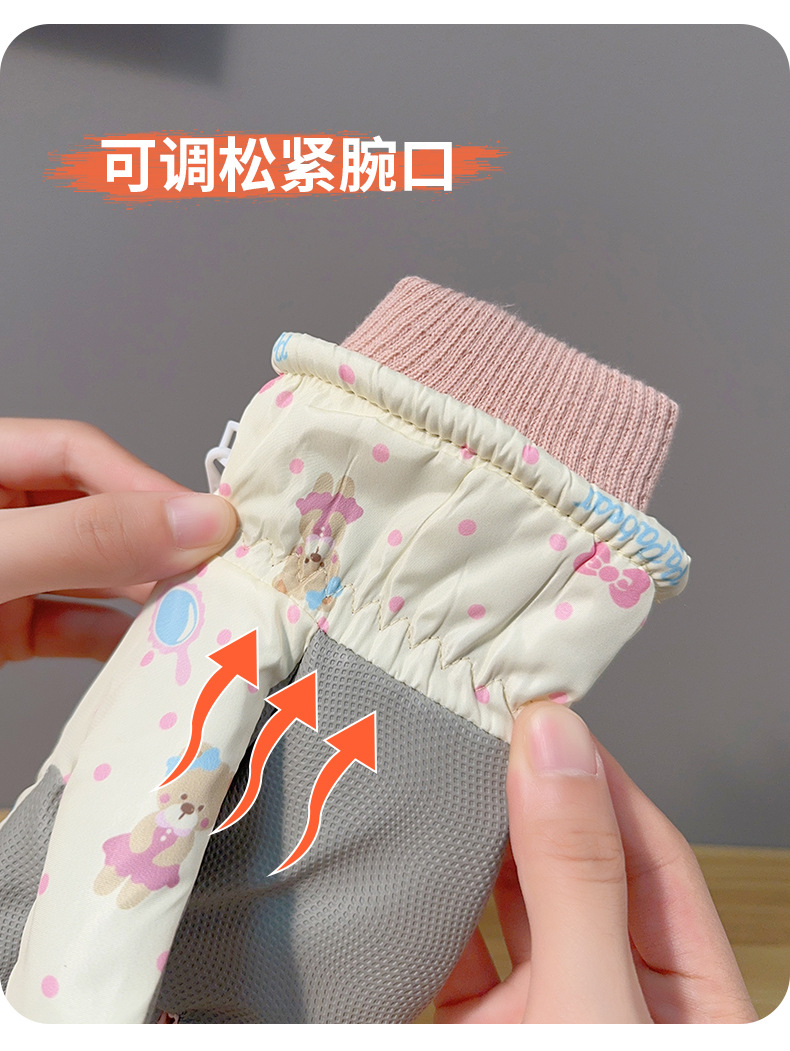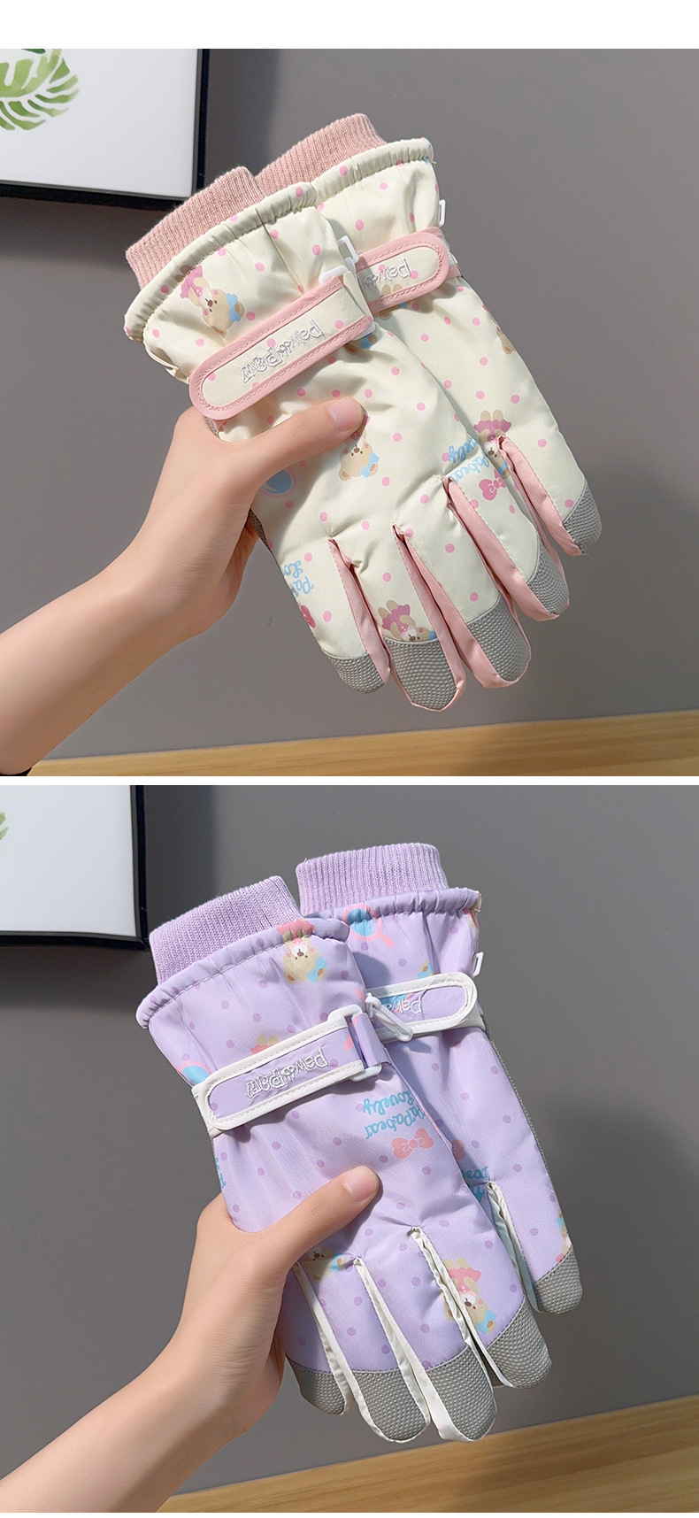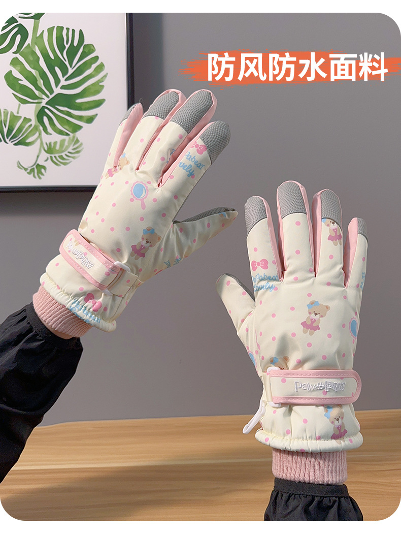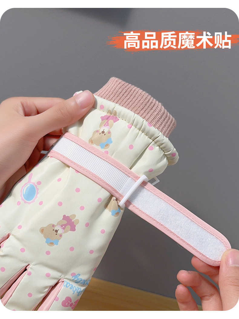 可爱小熊棉手套女冬季防寒保暖骑行车加绒加厚滑雪触屏防风防泼水