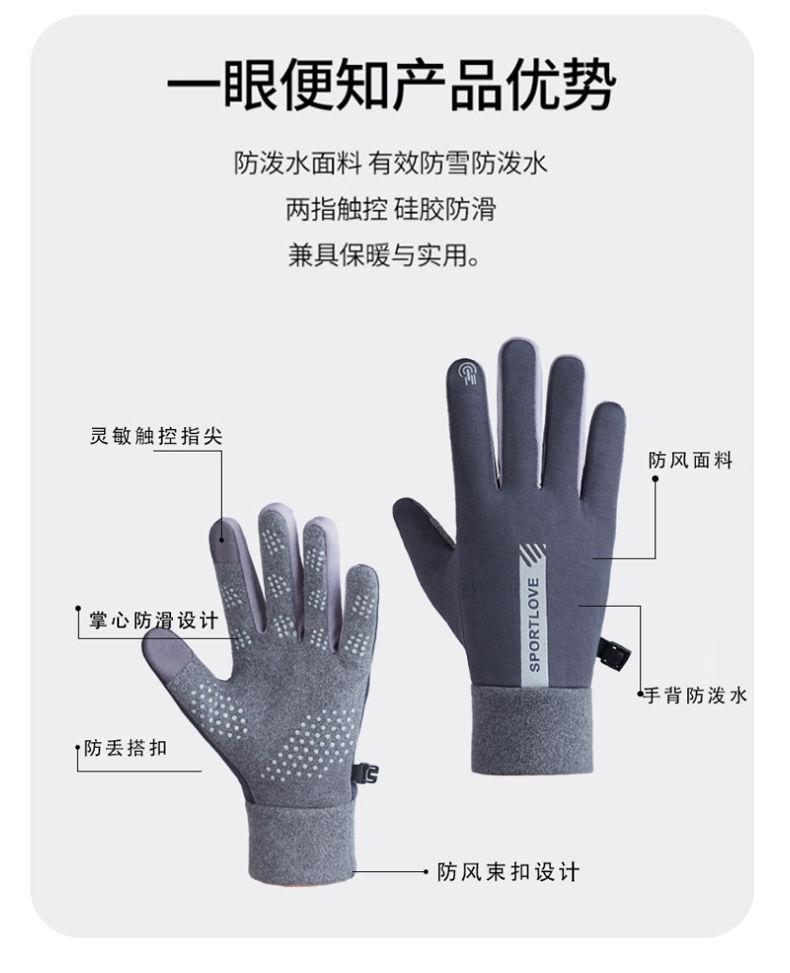 时尚休闲加绒竖标保暖骑行手可触屏手套男女手套批发