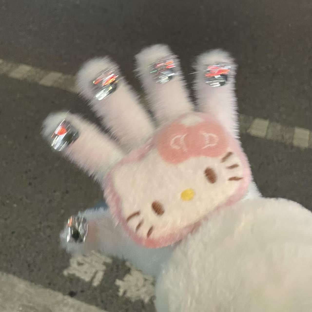 哈喽kitty~手套钻石kt猫毛绒手套冬季加厚御寒分指手套圣诞节礼物