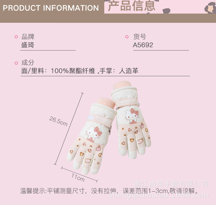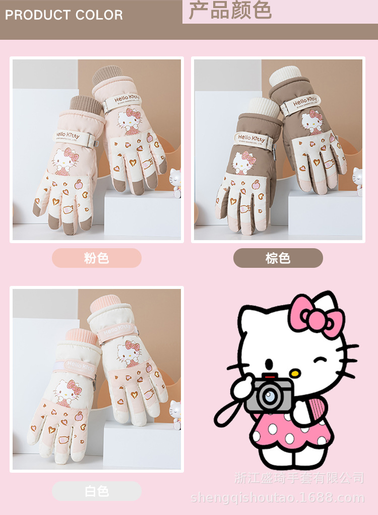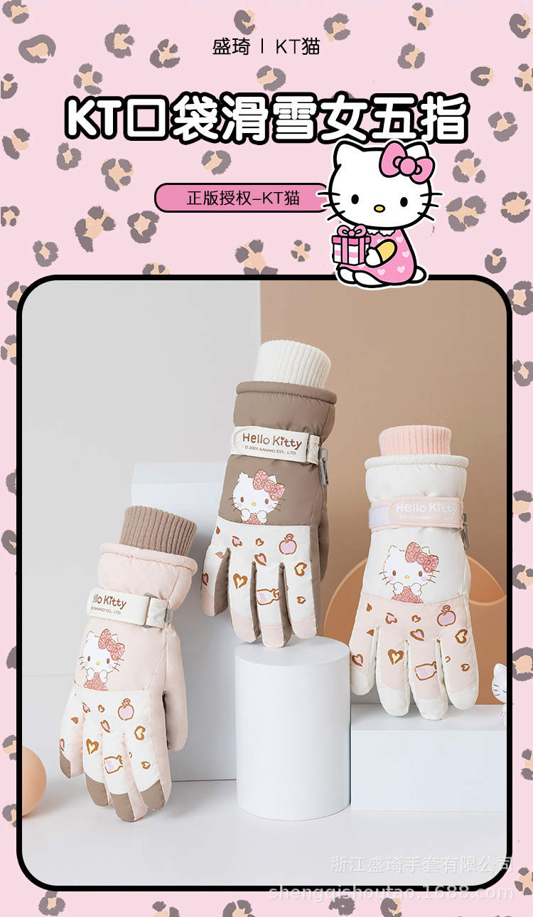 三丽鸥触屏滑雪手套冬季女加绒加厚防寒保暖户外骑车防风防滑可爱