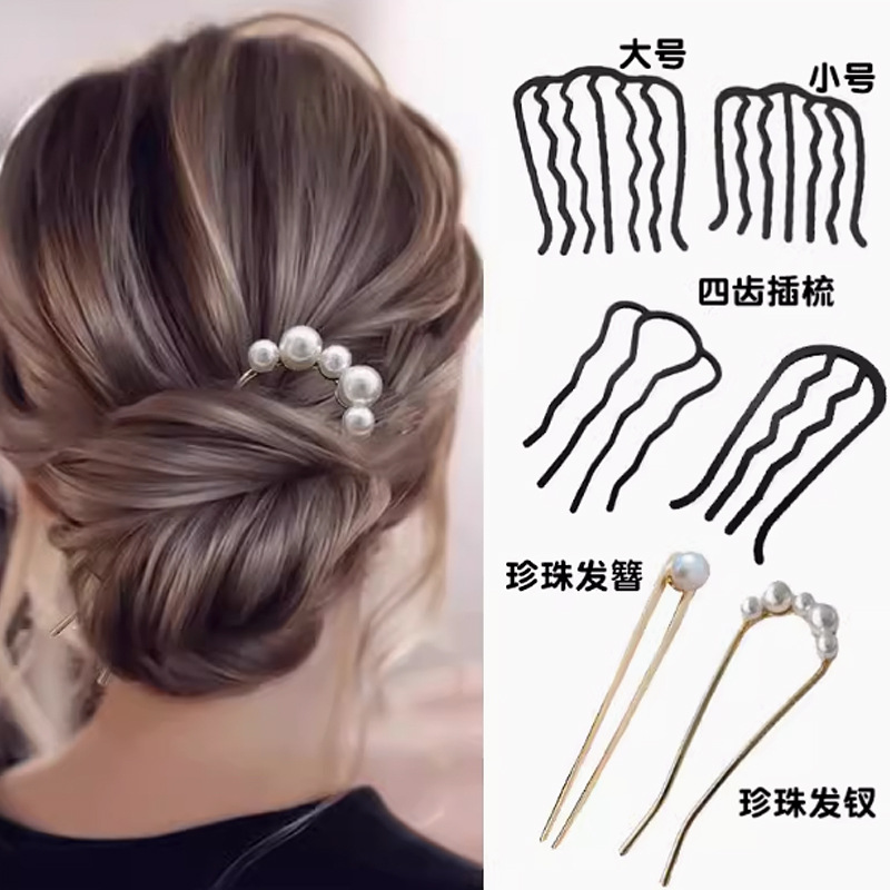 爆款懒人盘发神器丸子头插梳发梳发簪倒插u型发夹职业造型头饰女