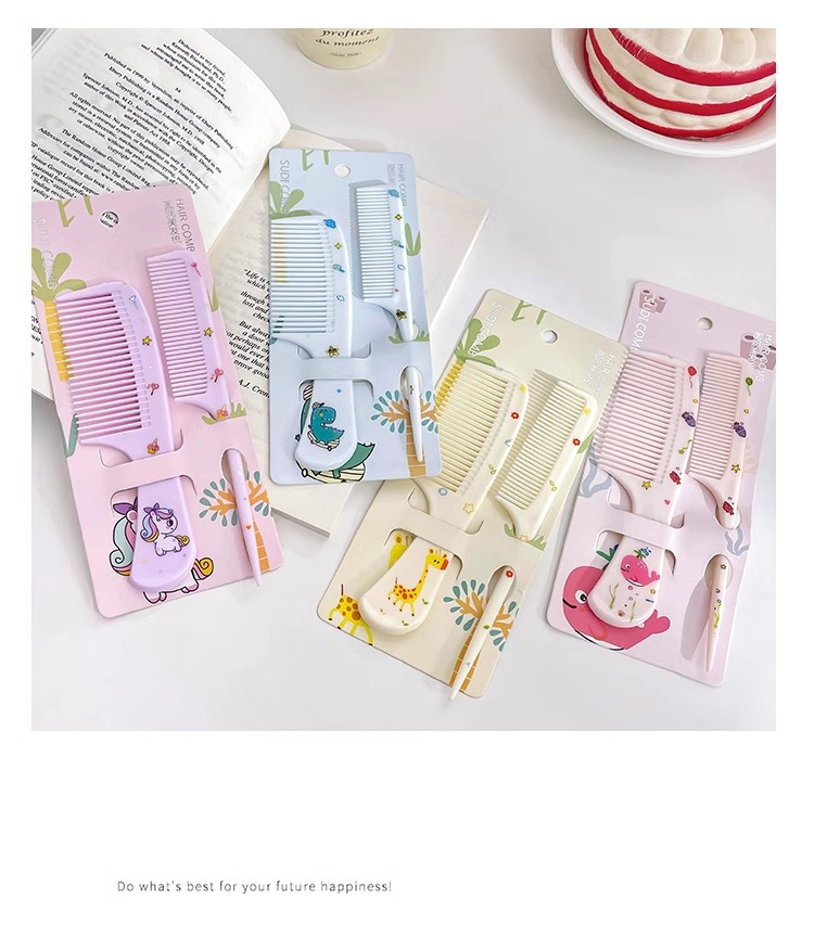 卡通动物发梳可爱挑梳宝宝儿童小号细齿尖尾梳随身便携美发梳套装