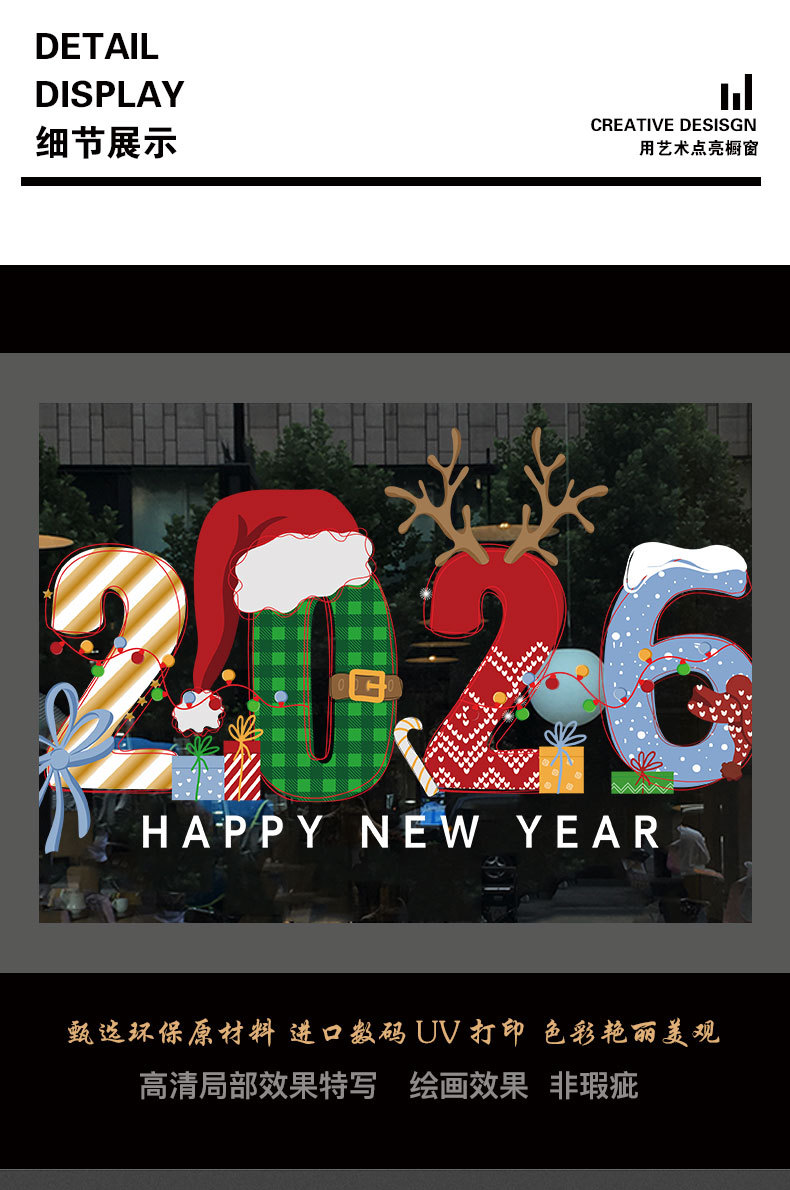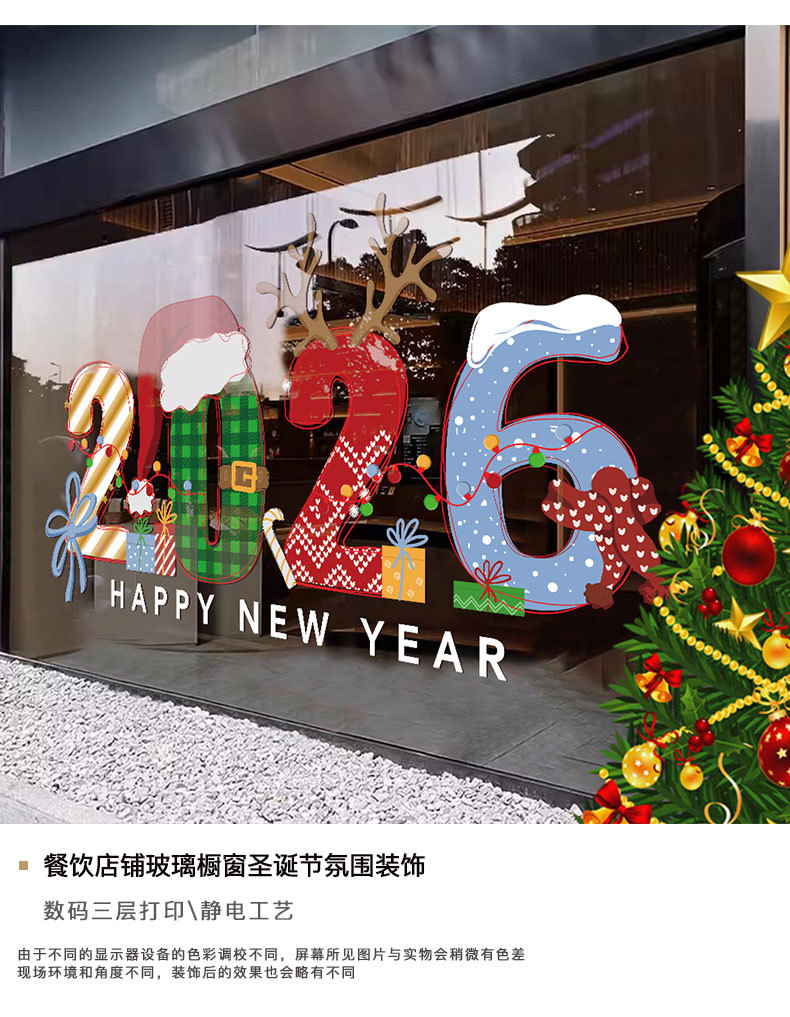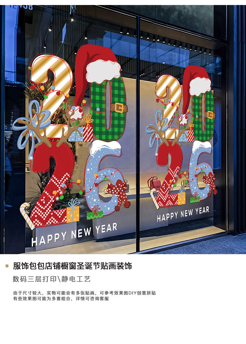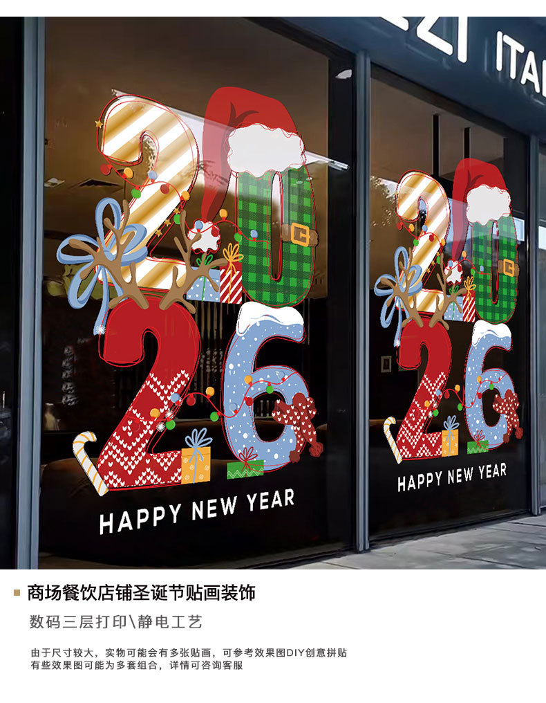 2026新年元旦装饰圣诞节窗花双面UV静电贴纸装饰橱窗门贴贴纸窗贴