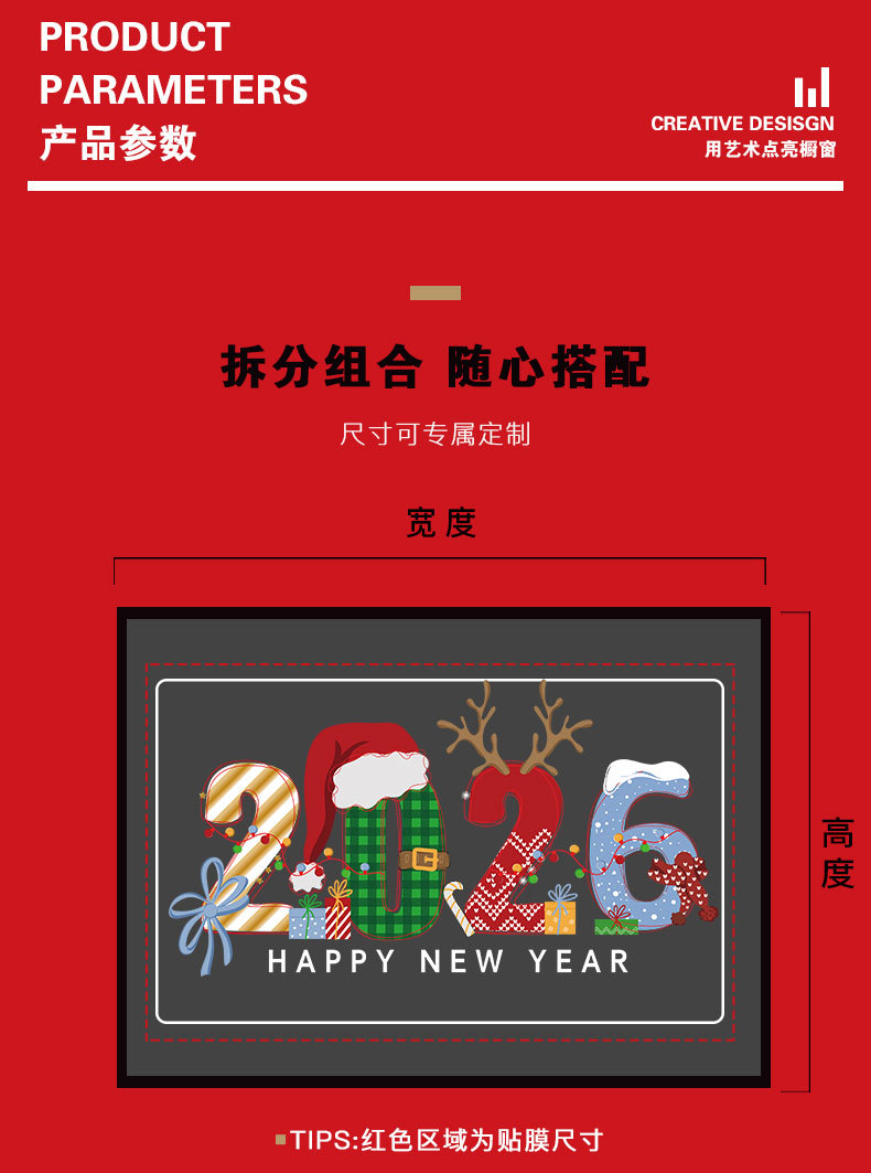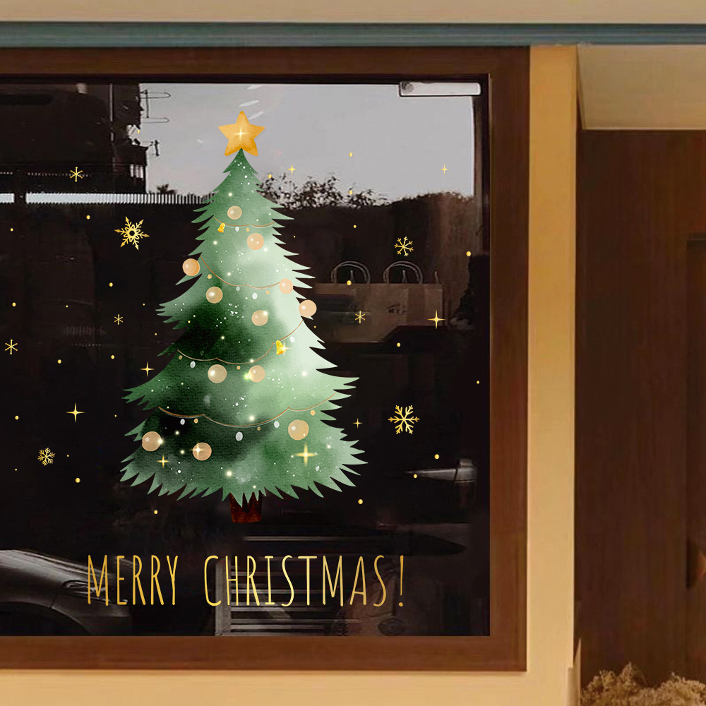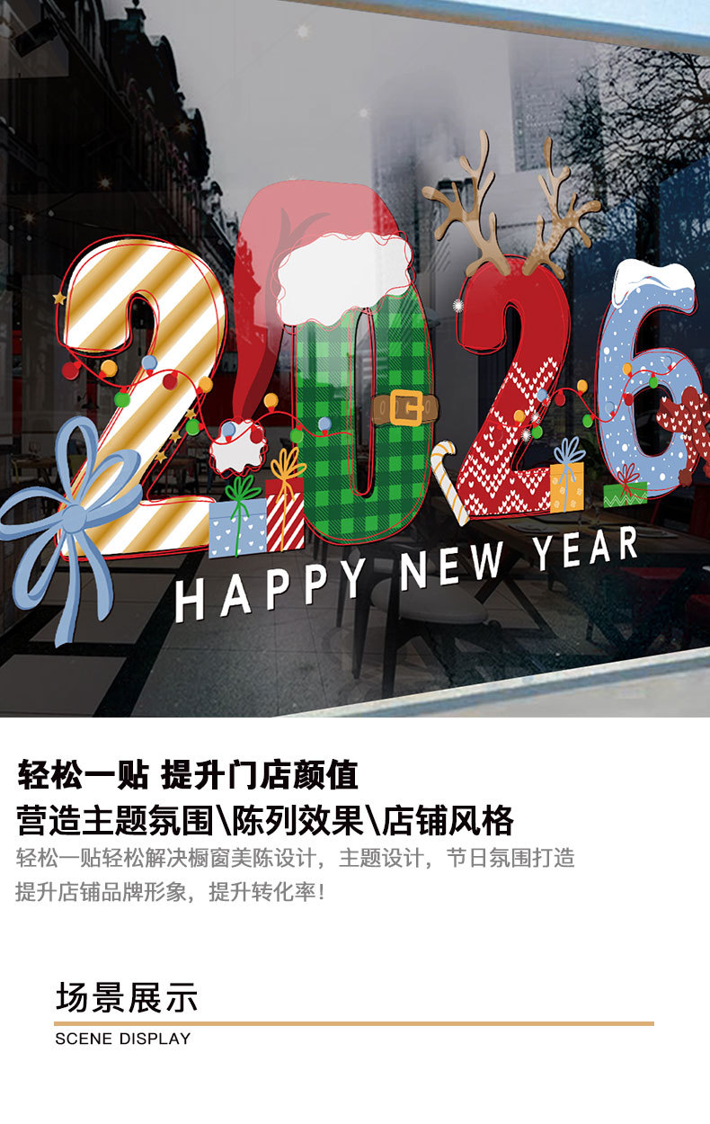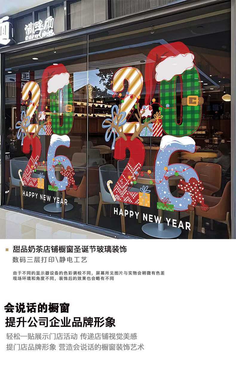 2026新年元旦装饰圣诞节窗花双面UV静电贴纸装饰橱窗门贴贴纸窗贴