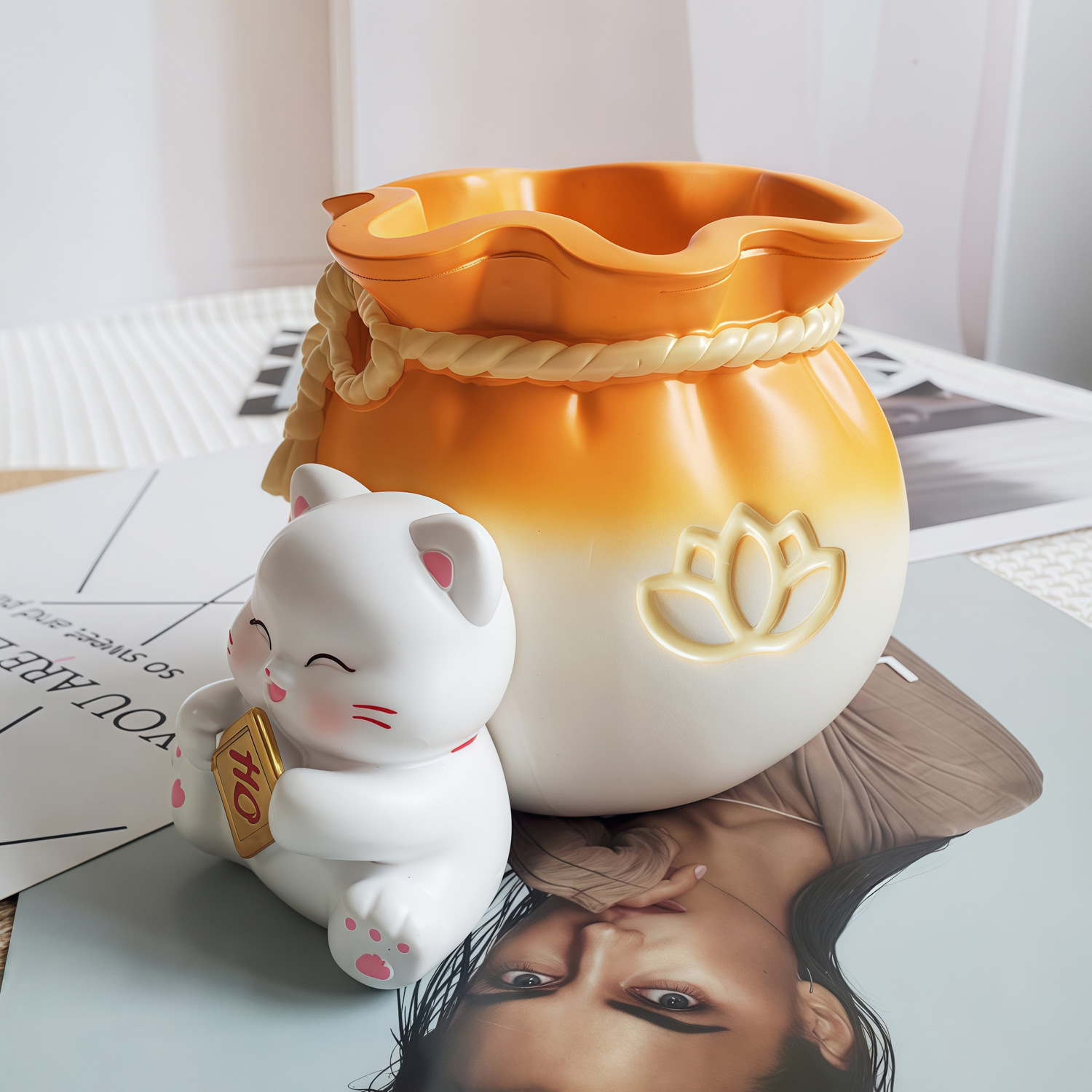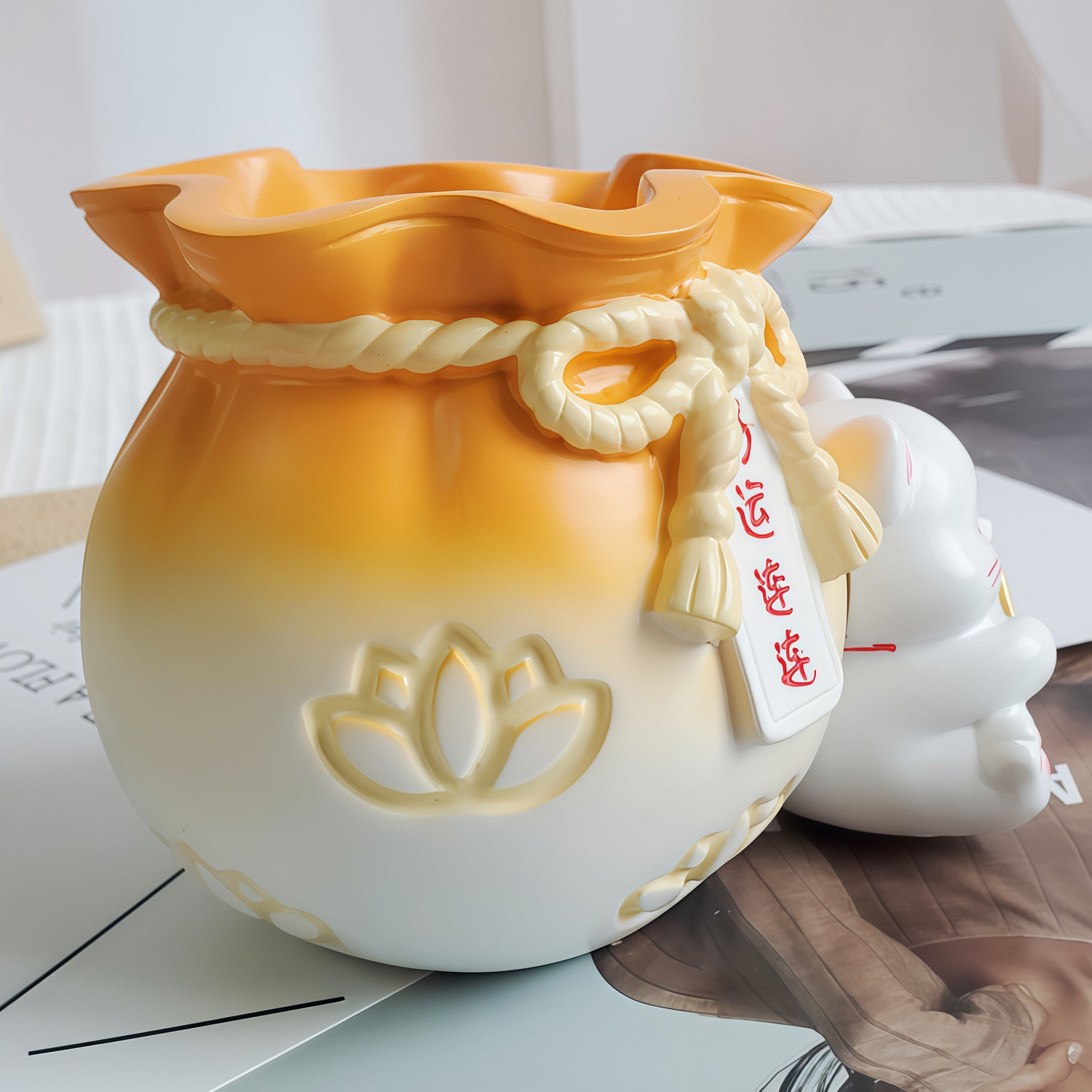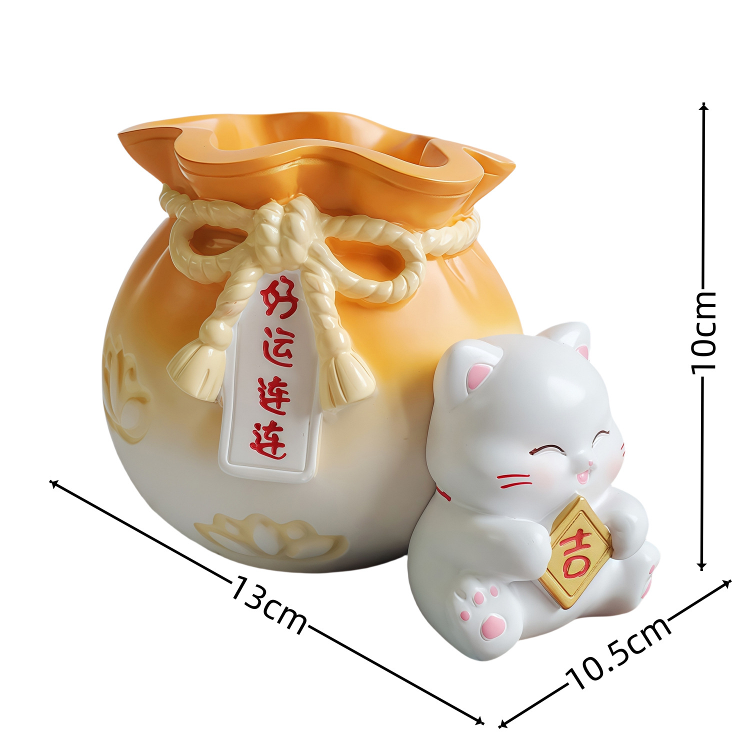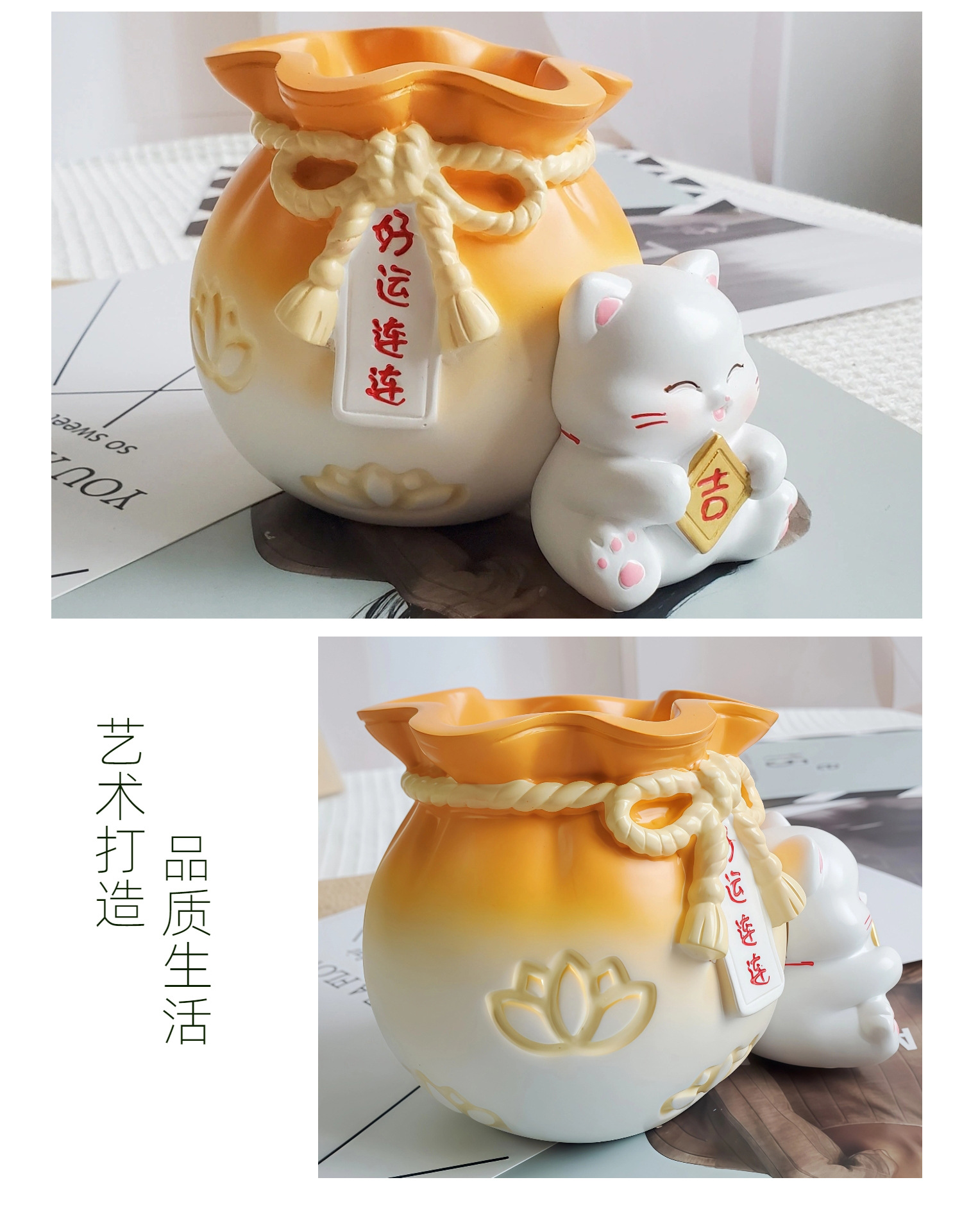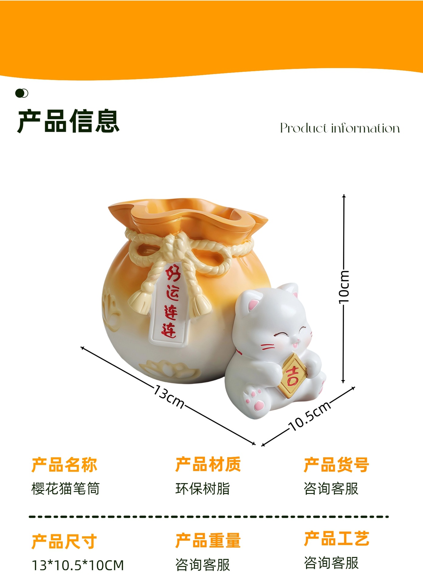 创意好运连连笔筒卡通招财猫咪学生礼物书房办公桌面树脂笔筒摆件