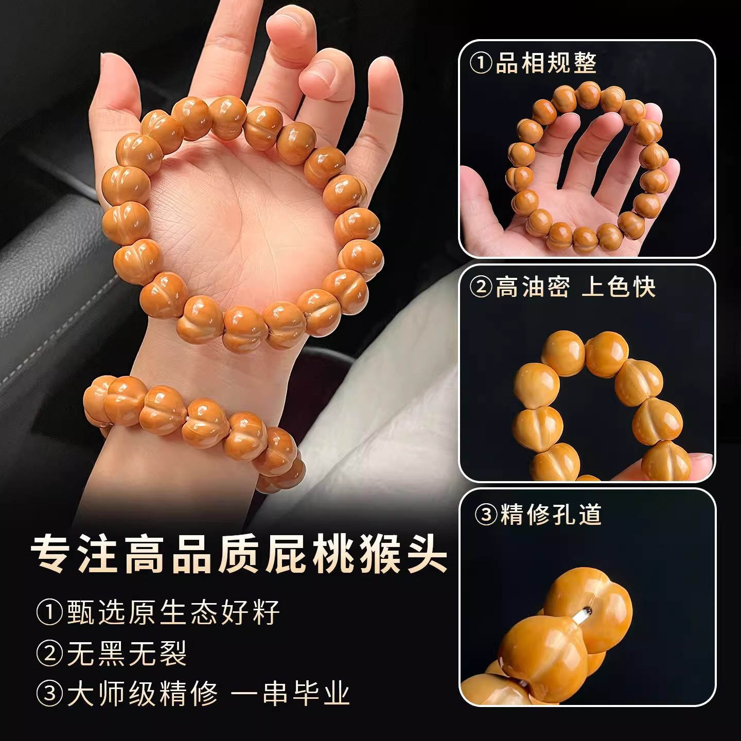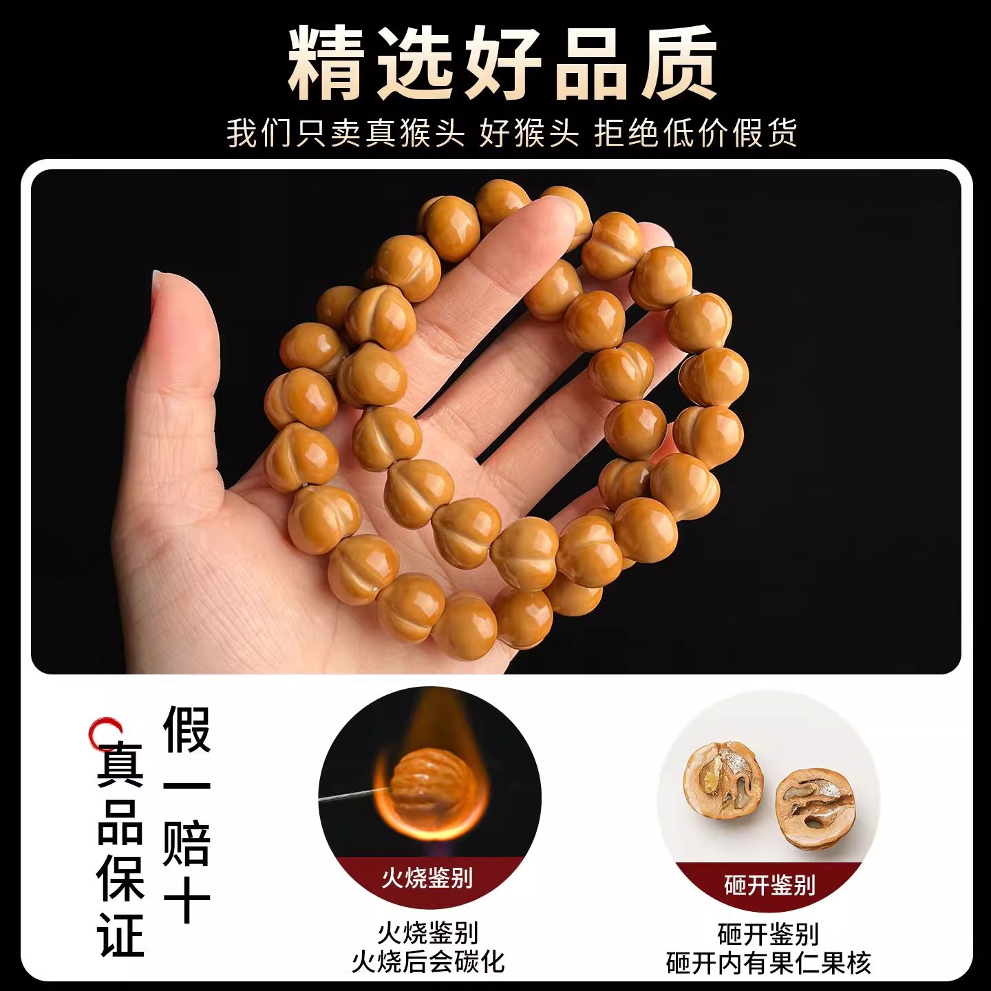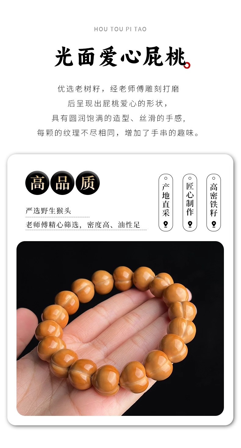 爆款爱心屁桃光面猴头核桃手串单圈男女盘玩文玩手链佛珠念珠批发