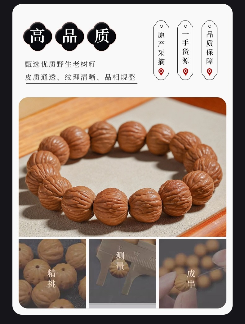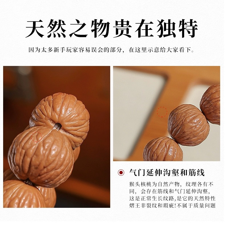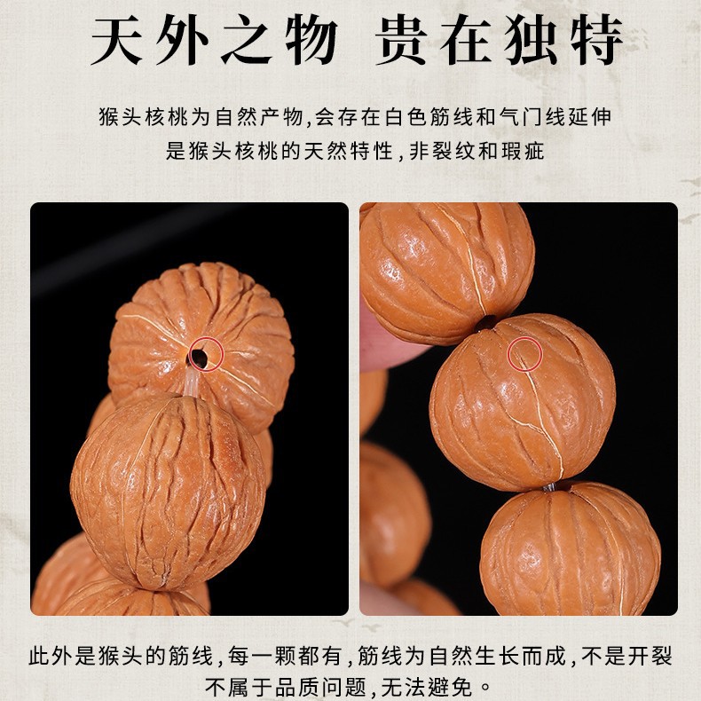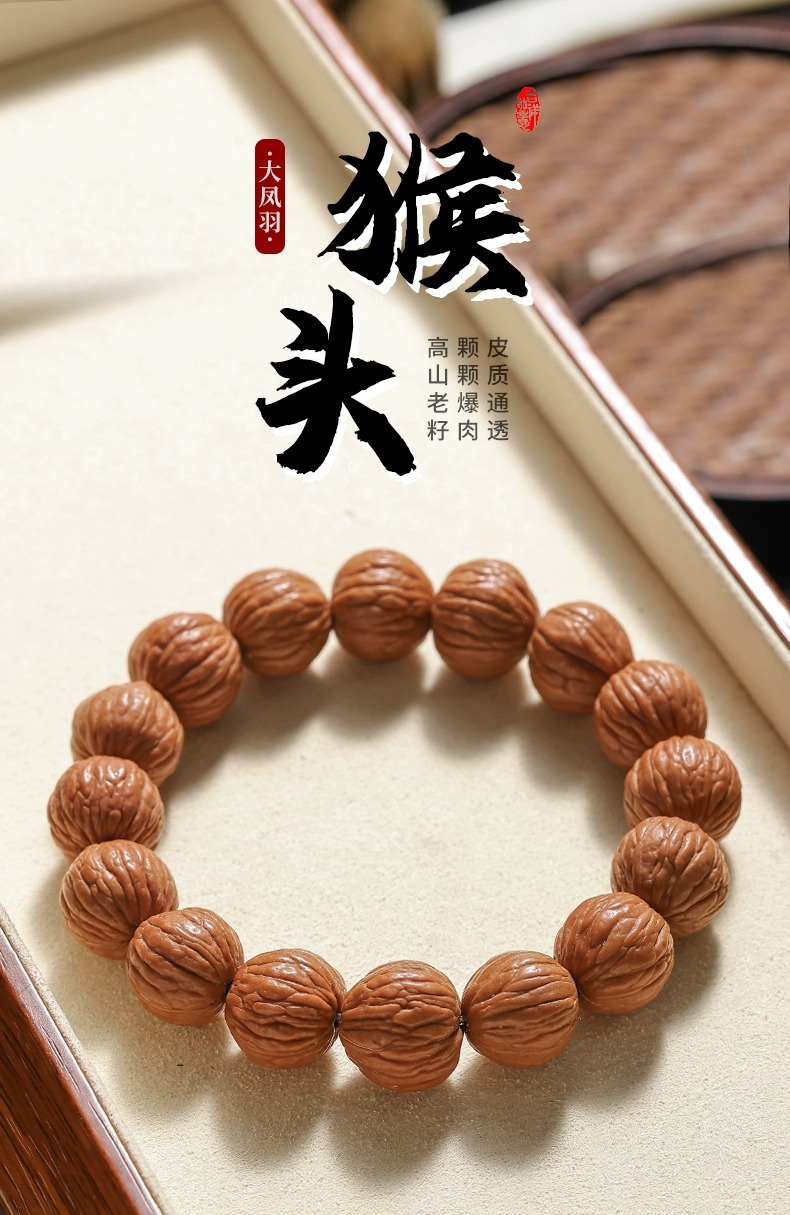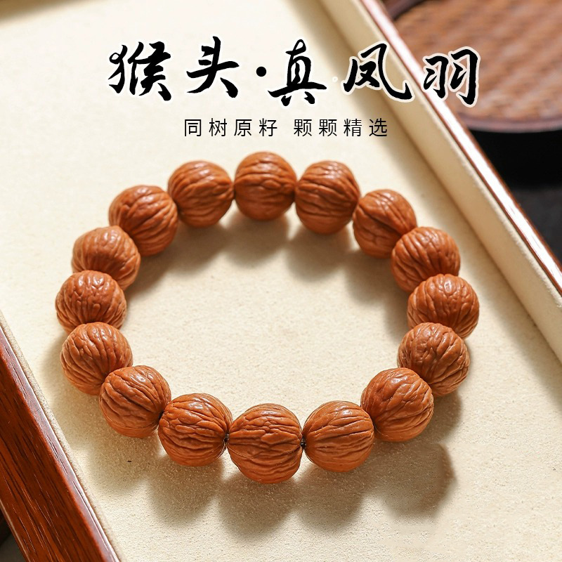 天然野生猴头凤羽手串小核桃南瓜桩手串男女单圈佛珠文玩手链批发