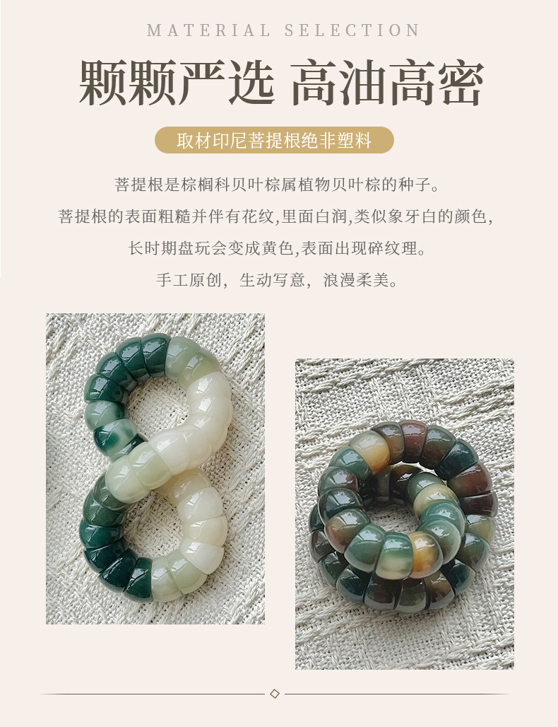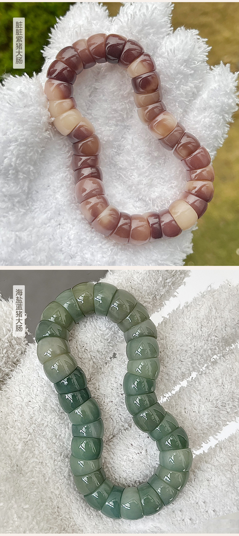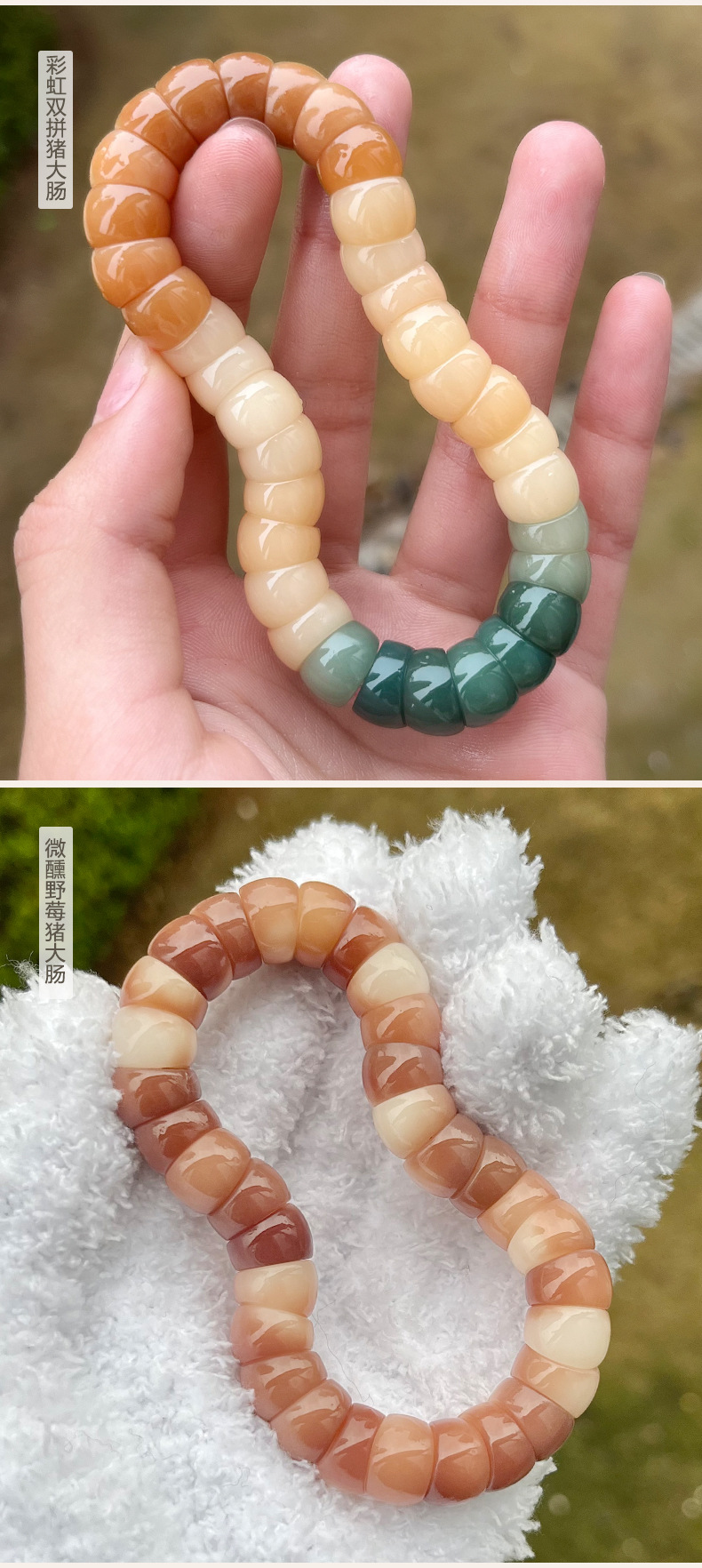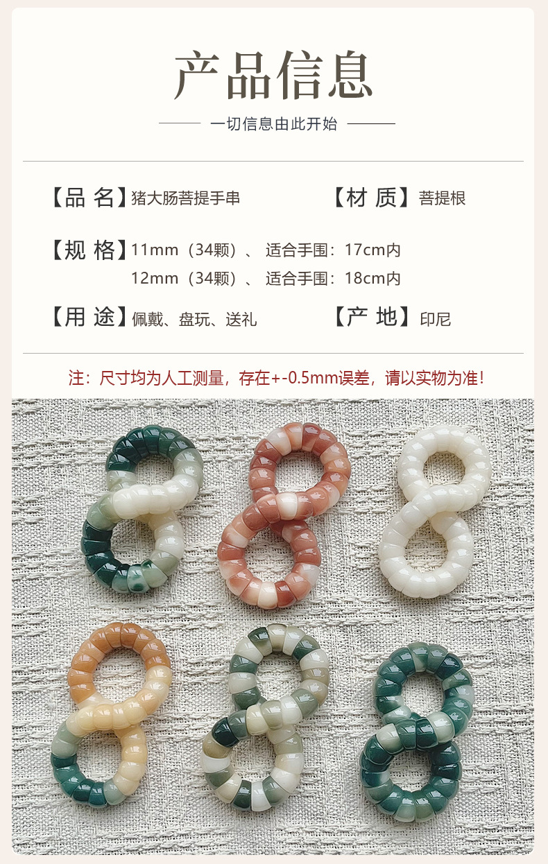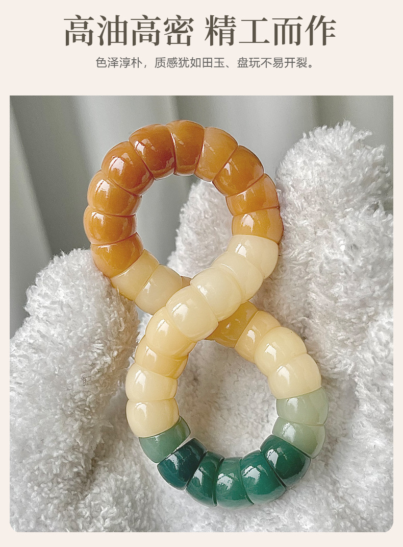抖音同款天然菩提根猪大肠双色渐变绕指柔佛珠女孩子盘玩手链批发