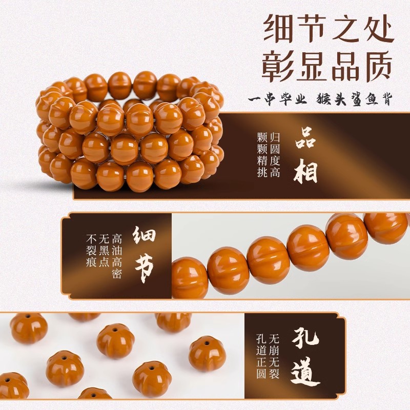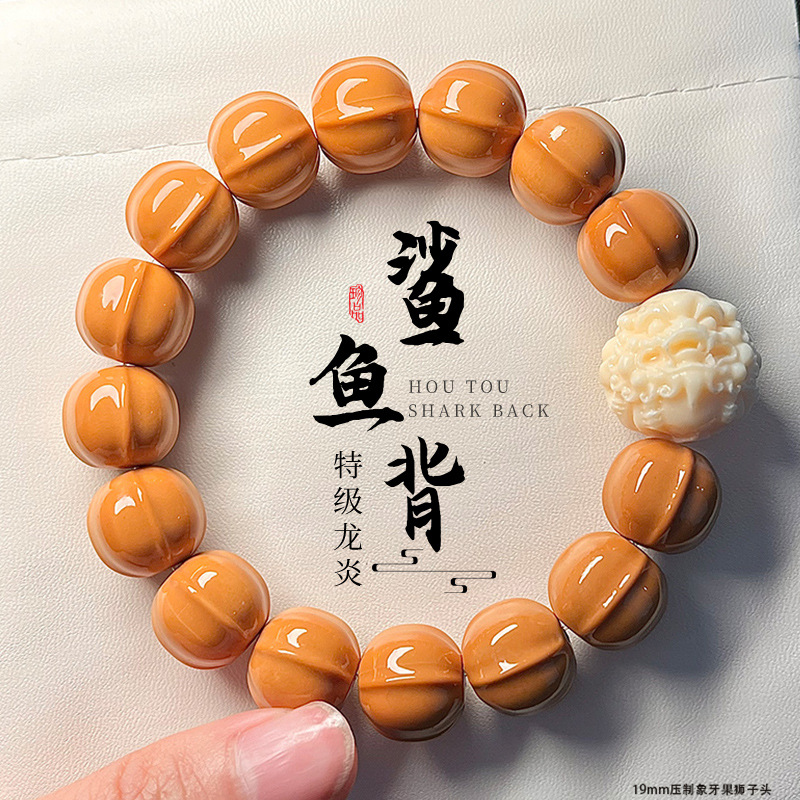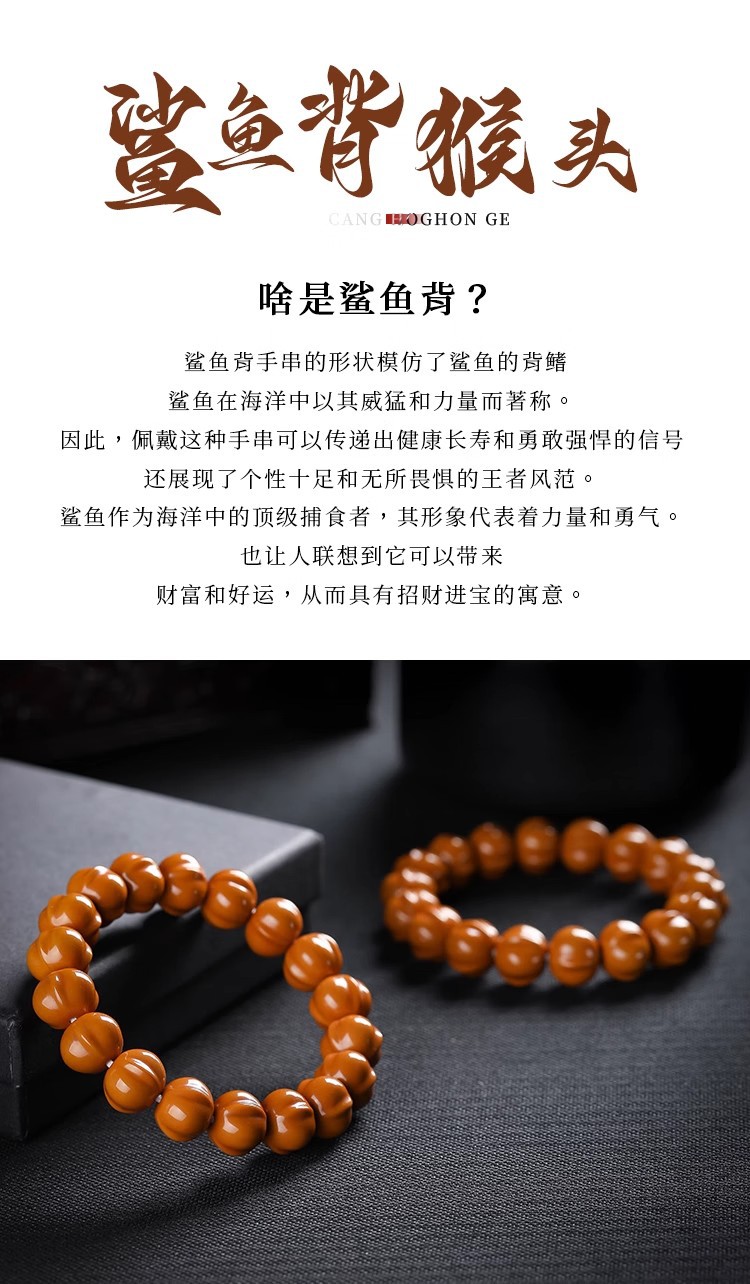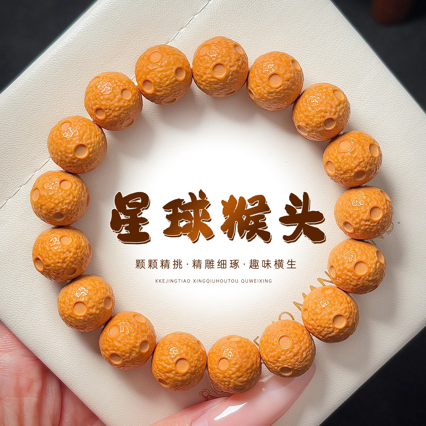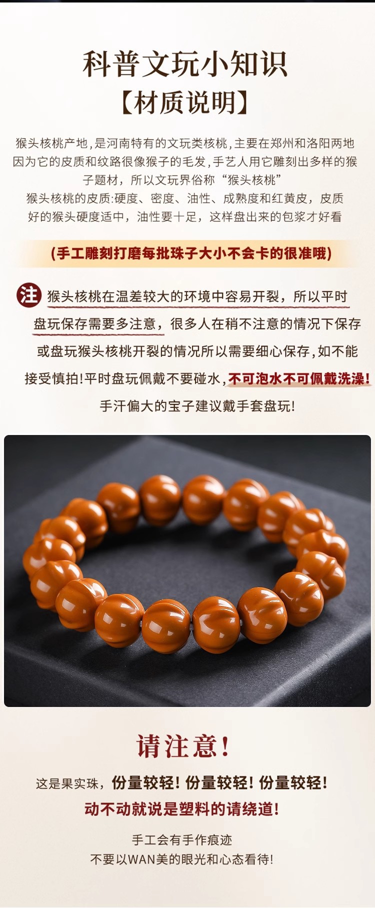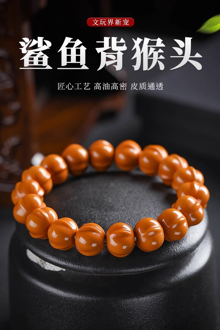精品雕刻猴头手串鲨鱼背光珠手捻核桃文玩男女士单圈佛珠手链批发