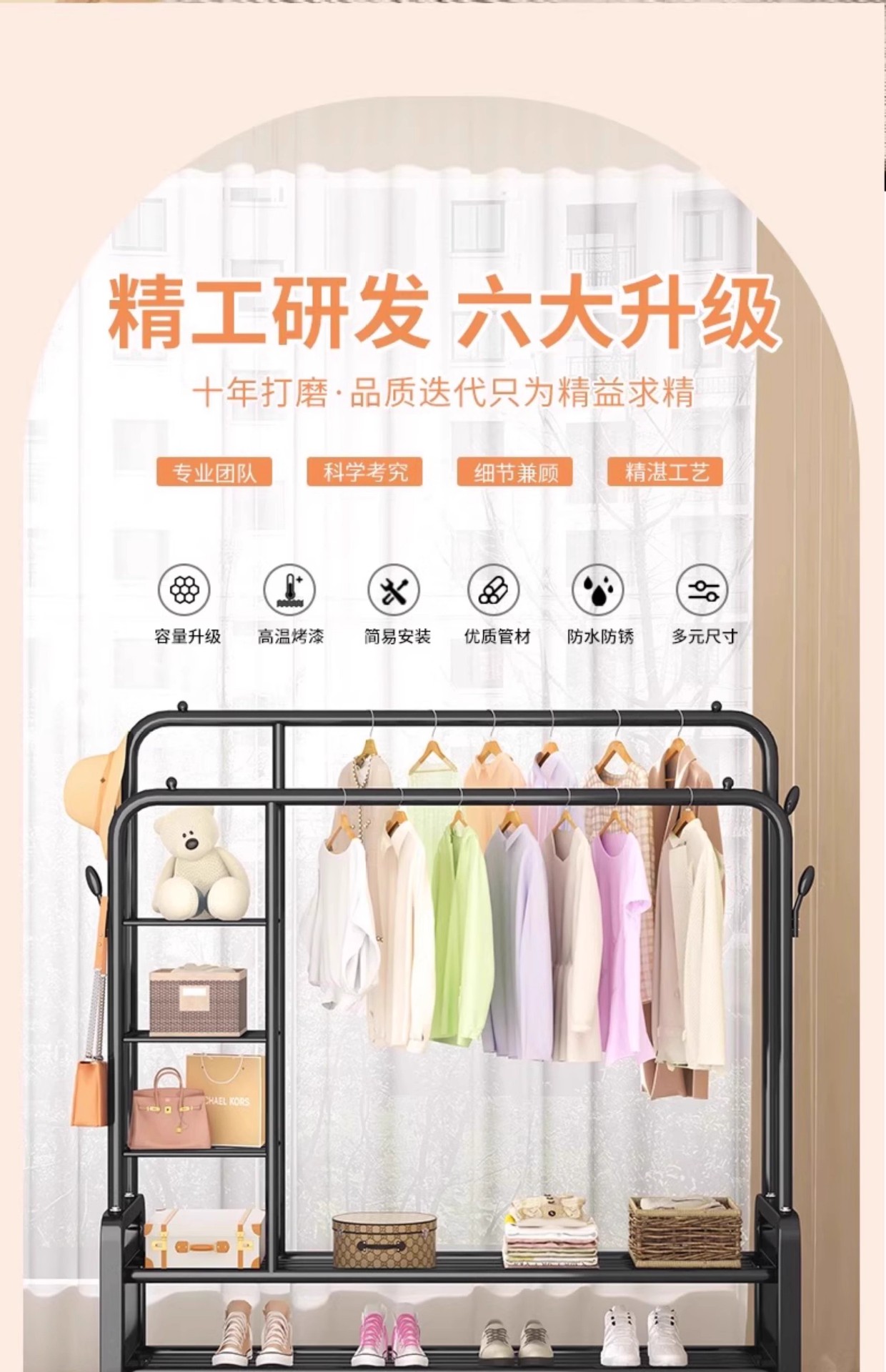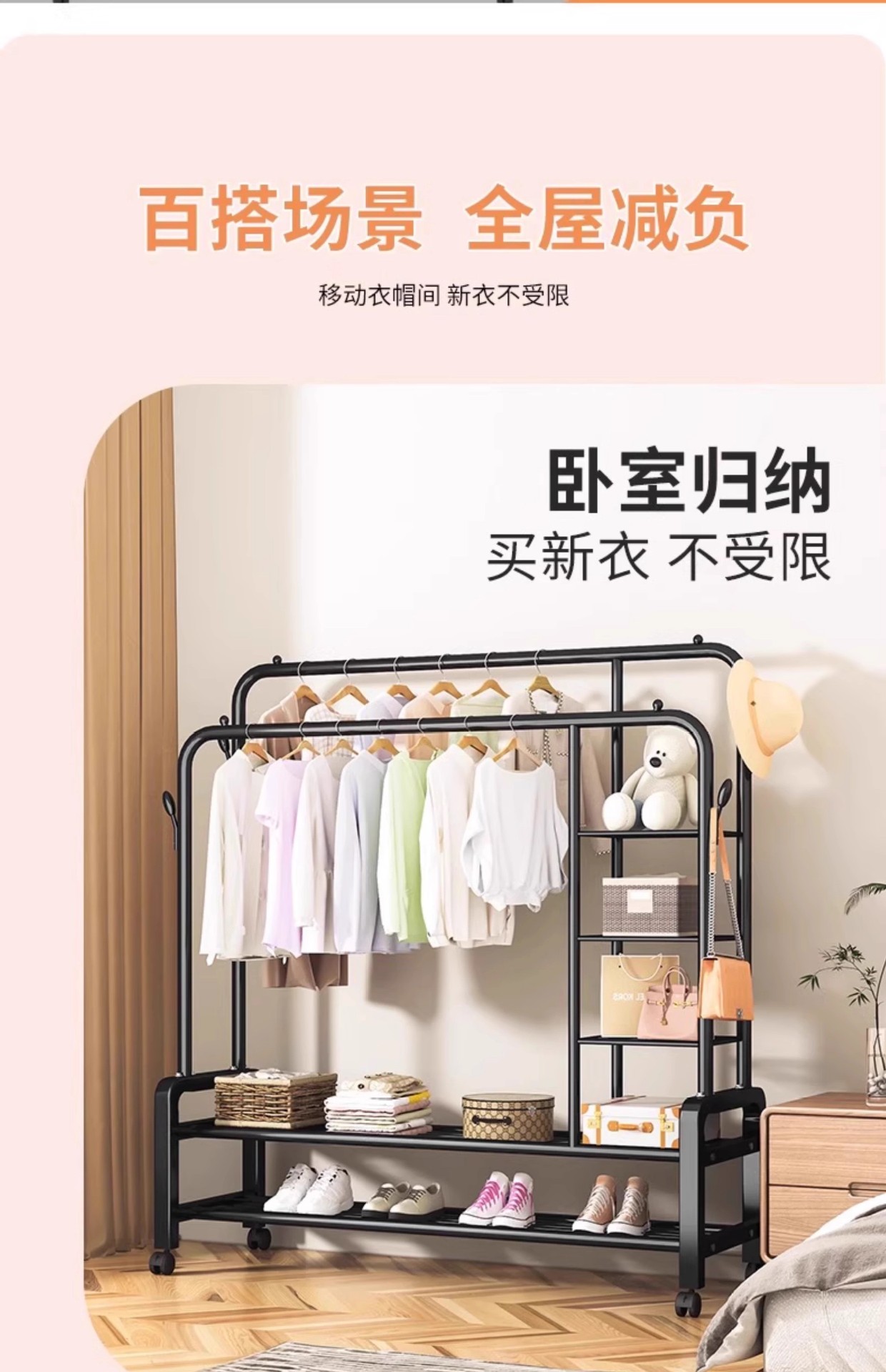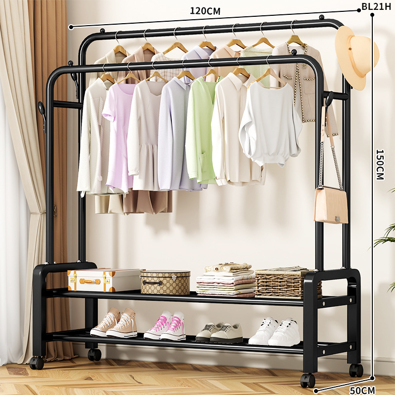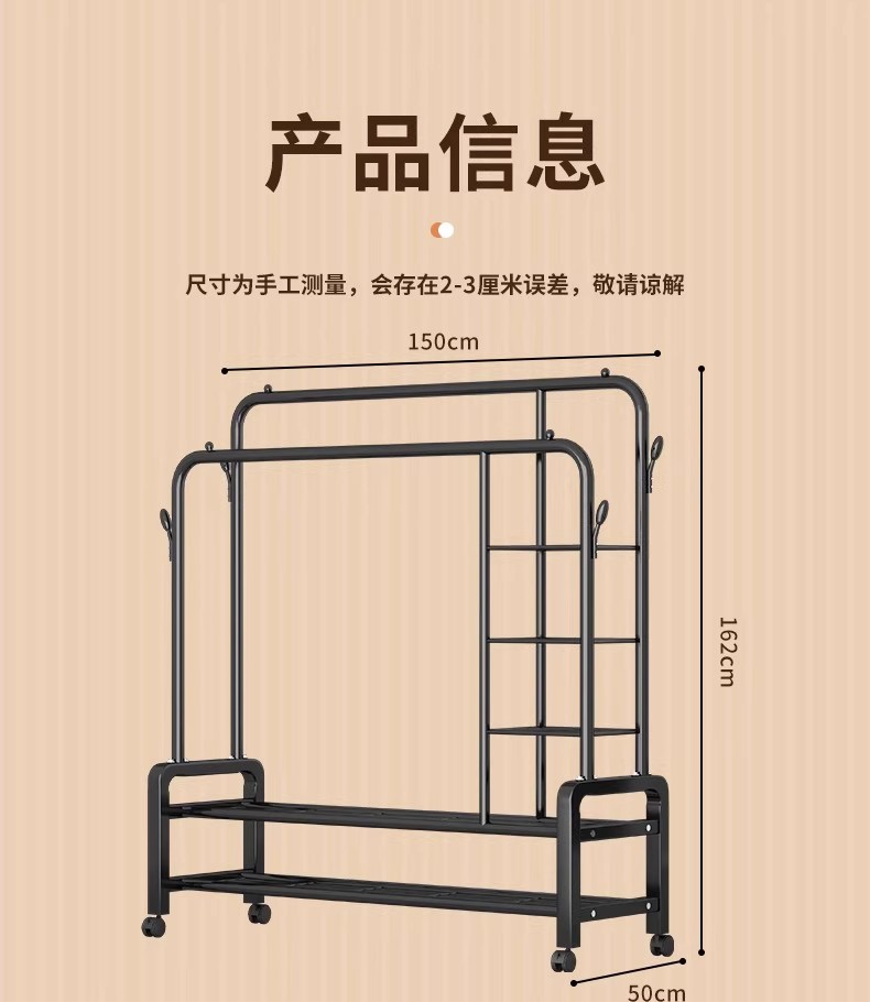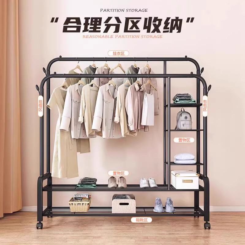 加粗晾衣架落地立式家用卧室内简易衣帽架子挂衣服宿舍阳台晾衣杆